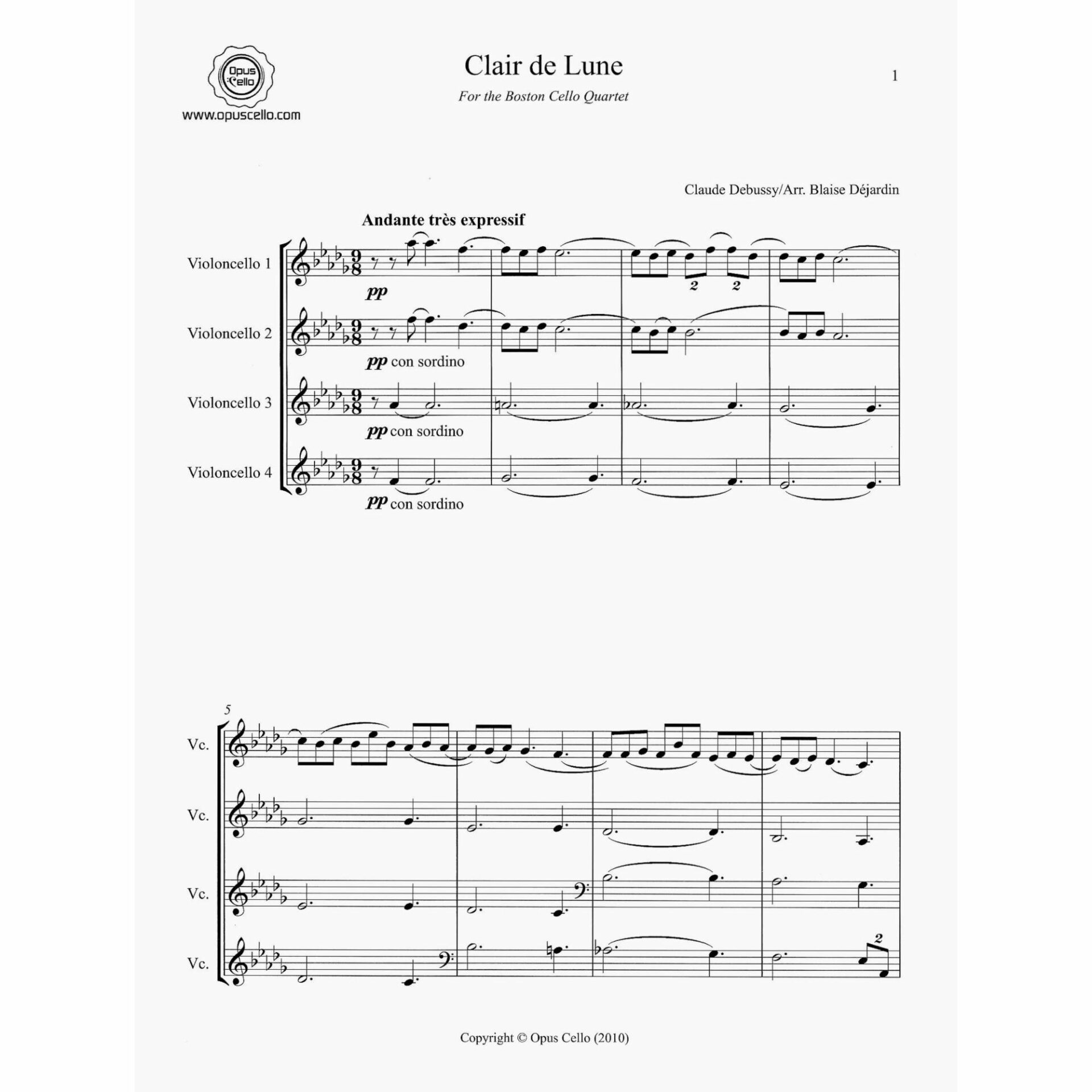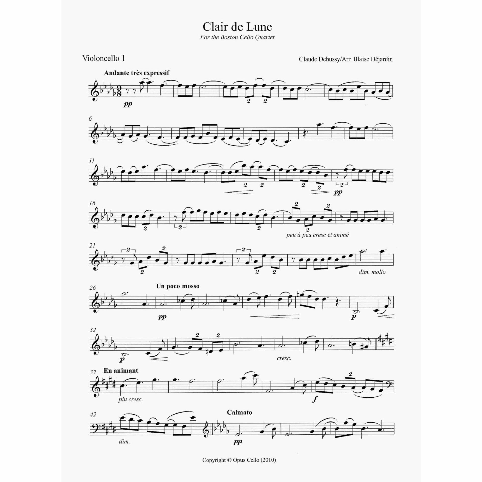 Debussy — Claire de Lune for Four Cellos