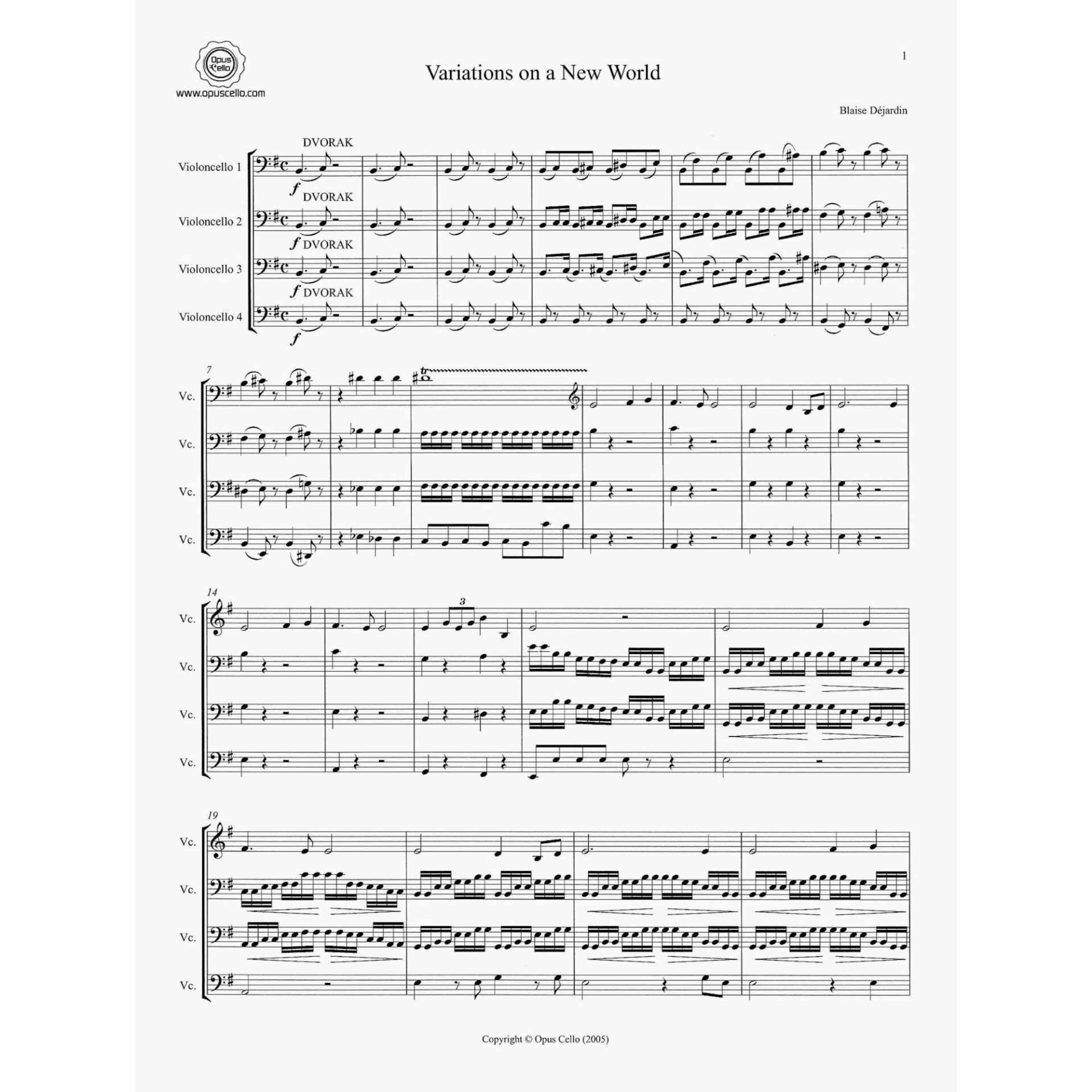 Dejardin — Variations on a New World for Four Cellos