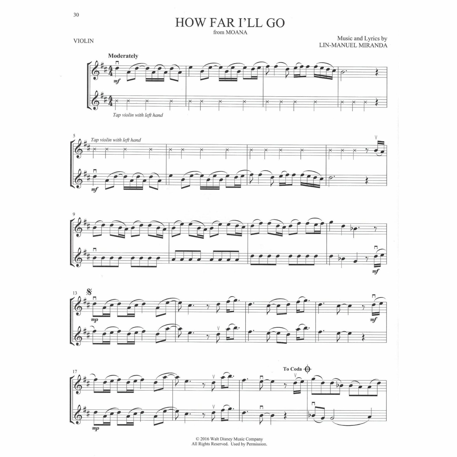 - How Far I’ll Go (from Moana) by Lin-Manuel Miranda