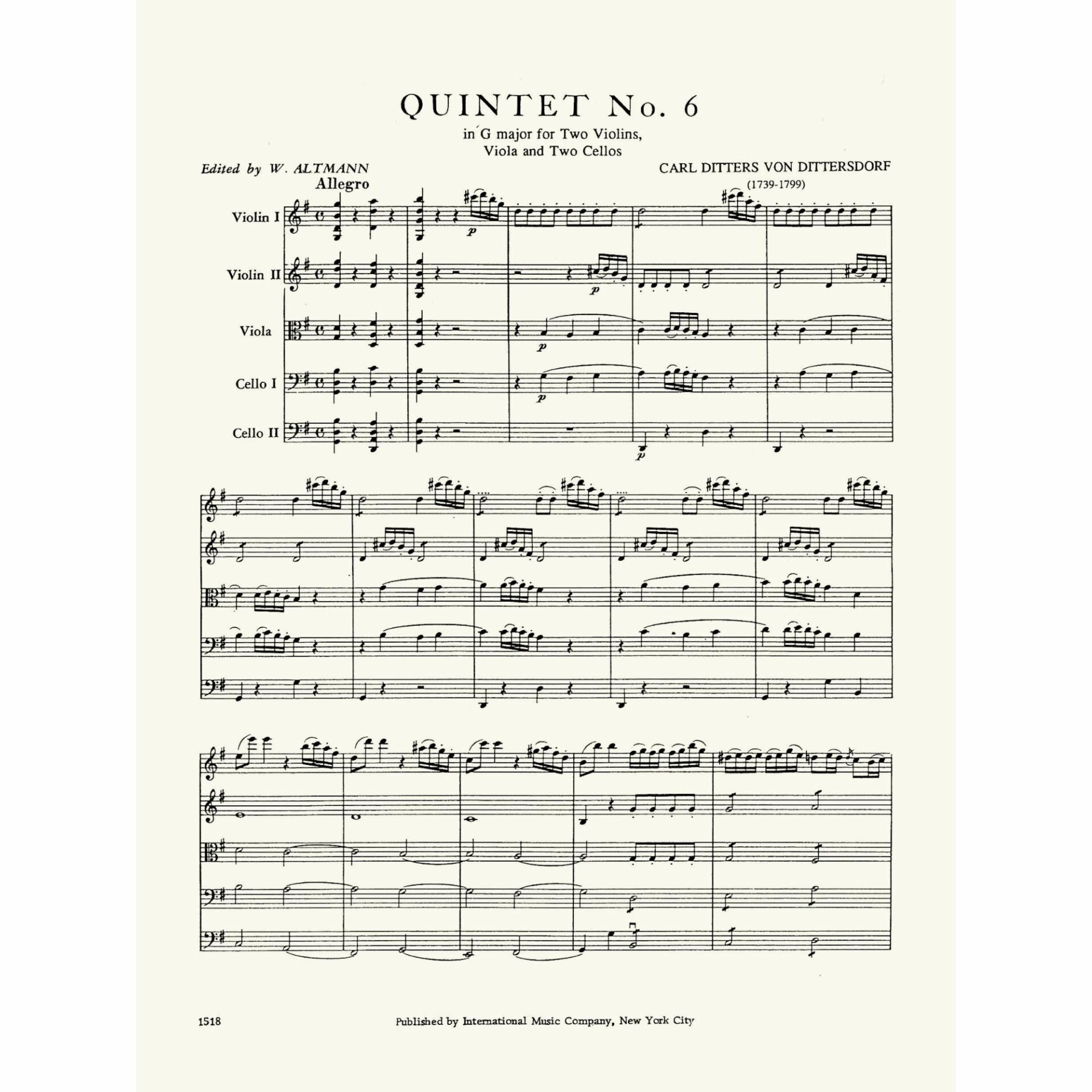 Title: Quintet No. 6 in G Major