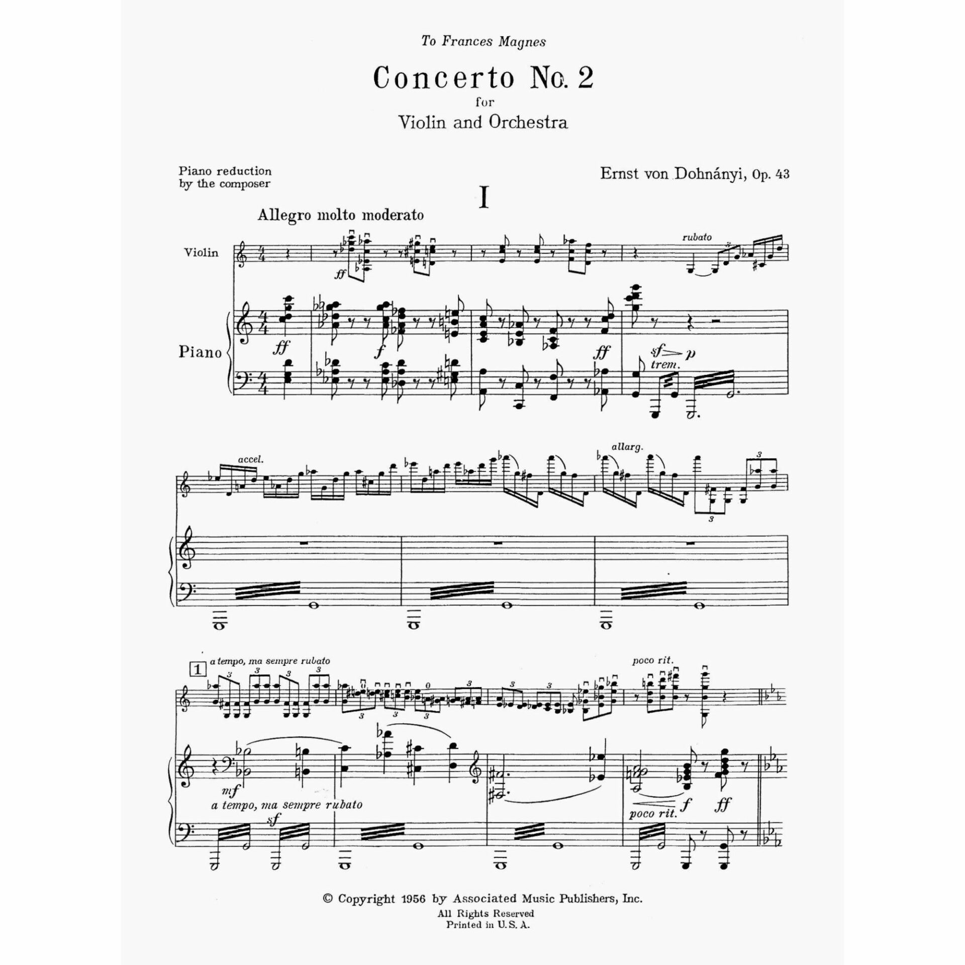 Dohnanyi — Concerto No. 2, Op. 43 for Violin and Piano