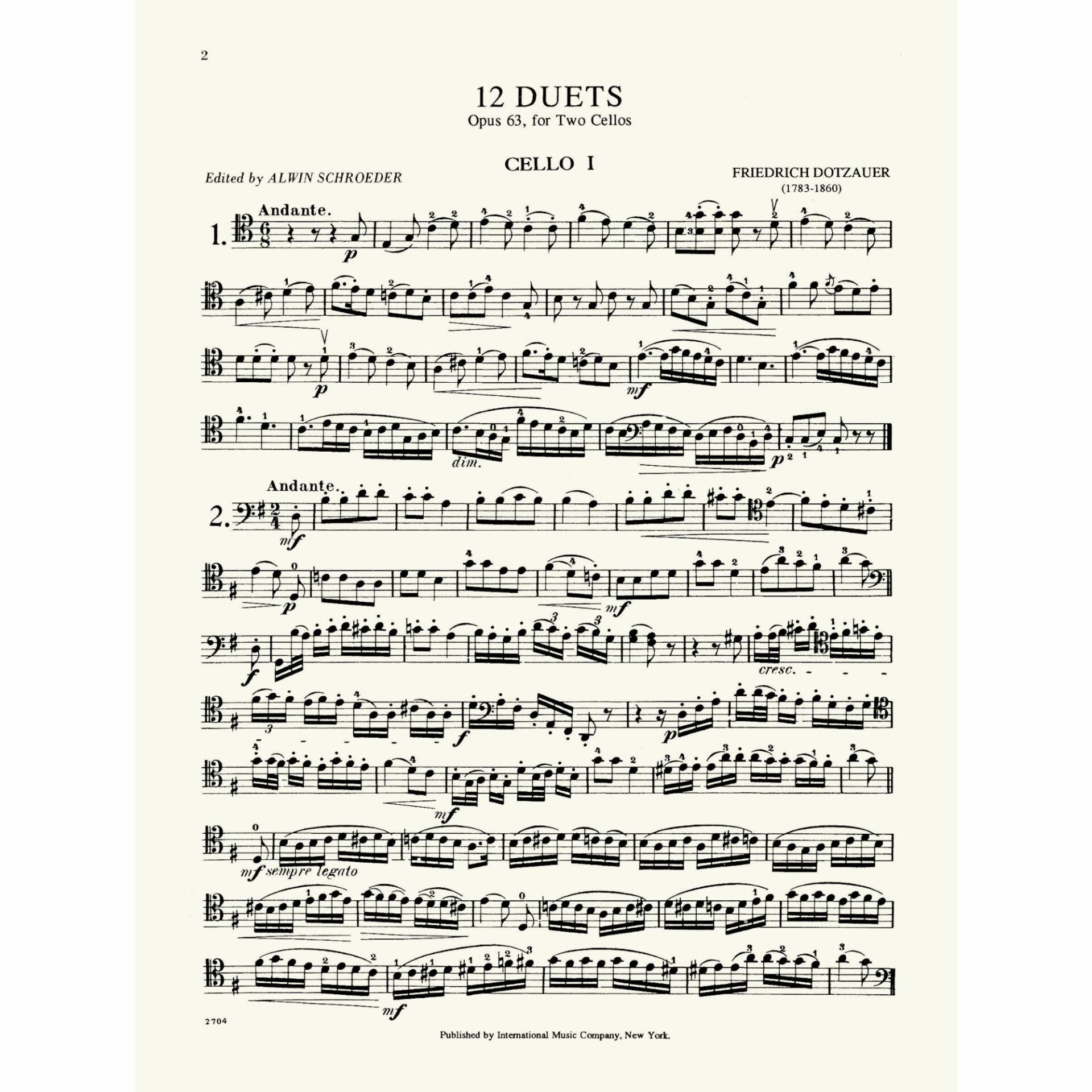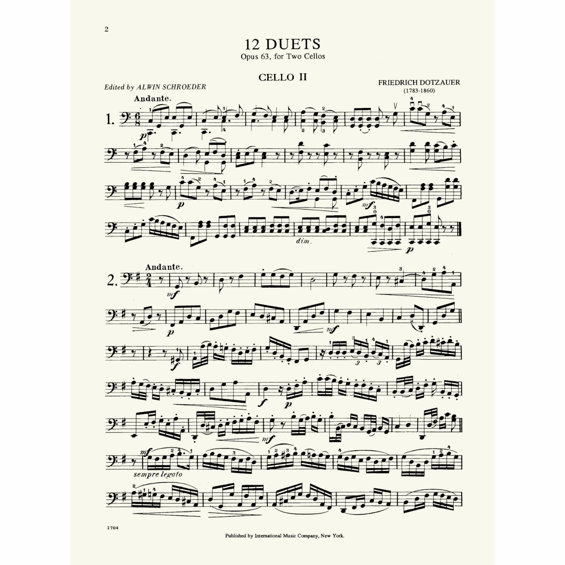 Dotzauer — 12 Duets, Op. 63 for Two Cellos