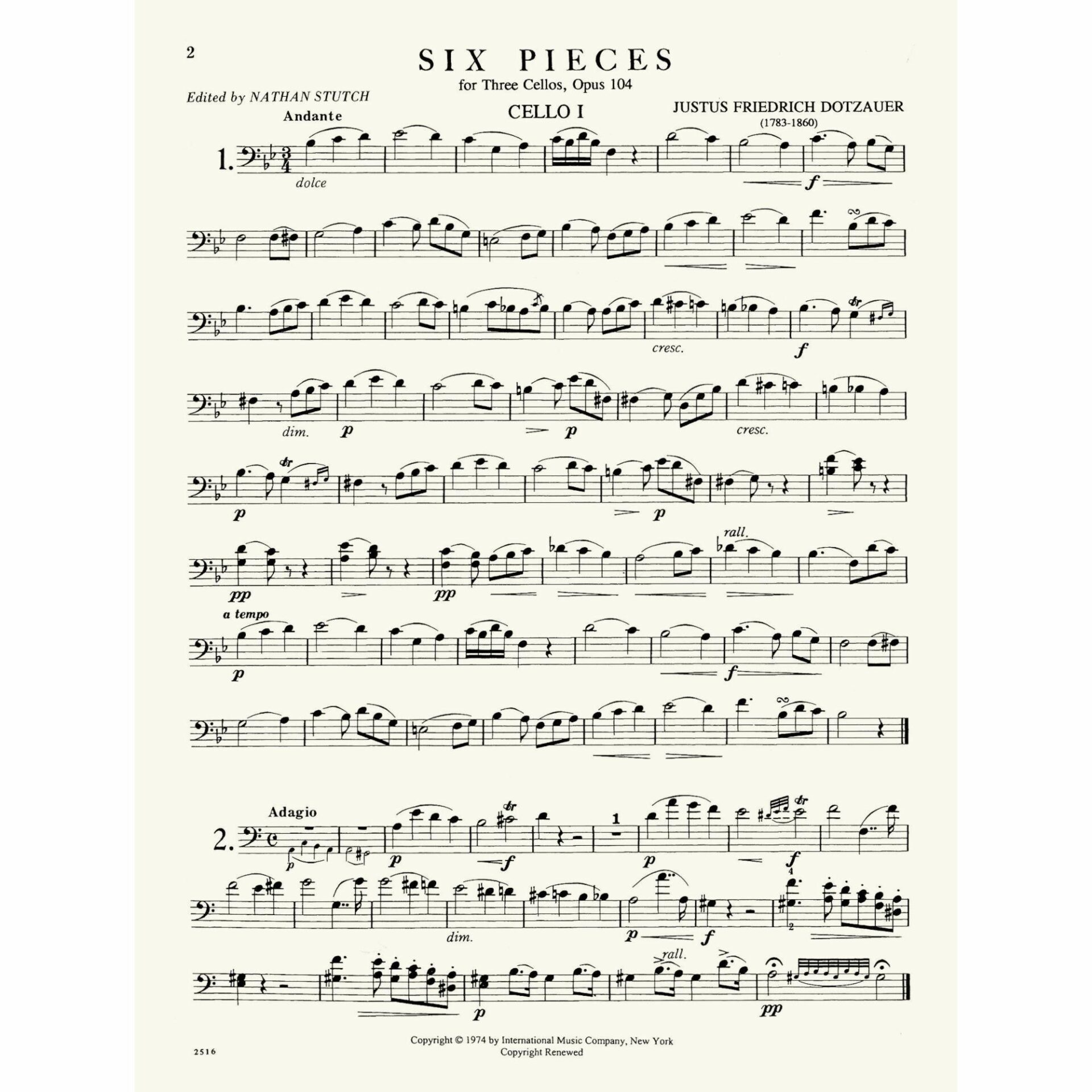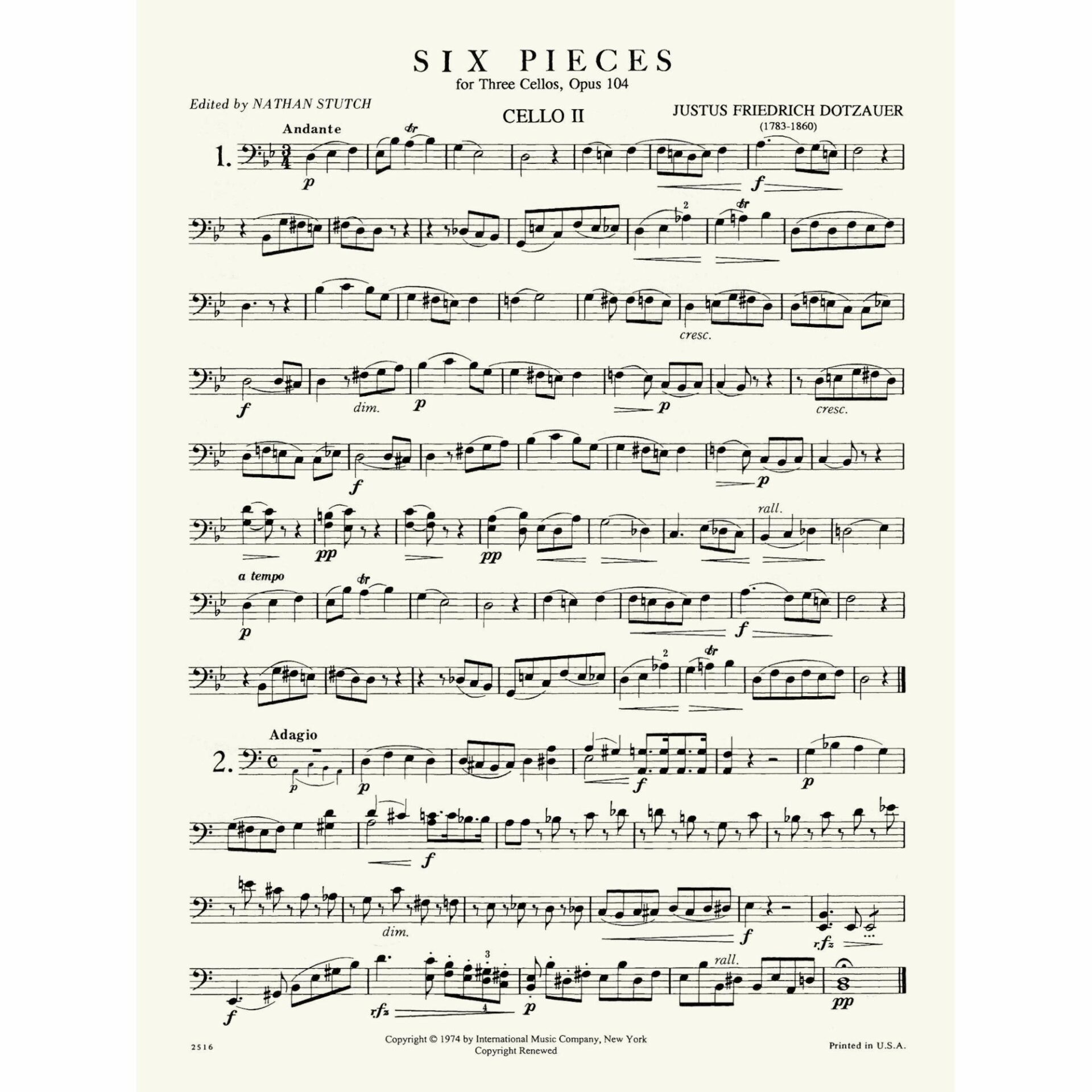 Dotzauer — Six Pieces, Op. 104 for Three Cellos