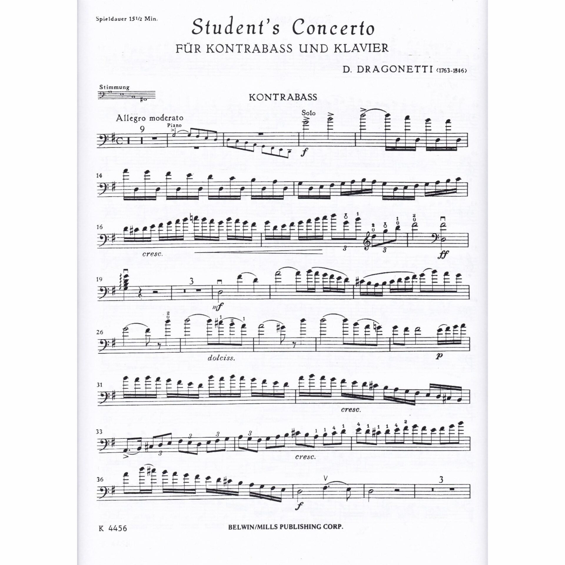 Dragonetti — Student’s Concerto in A Major for Bass and Piano