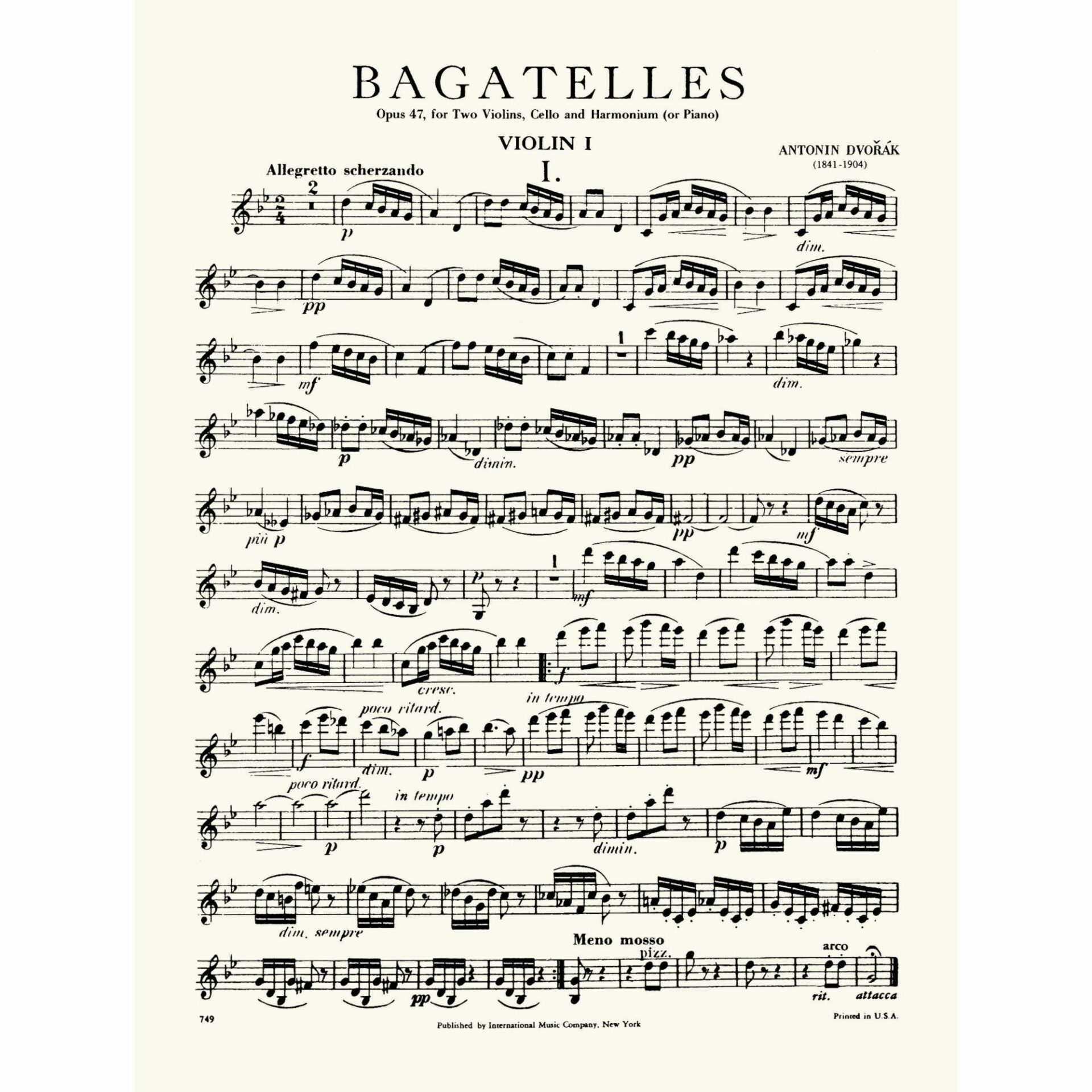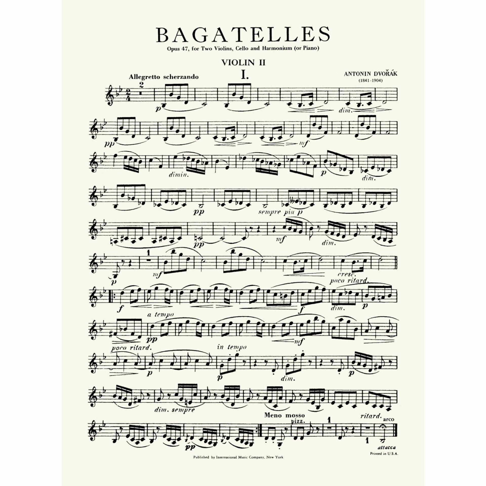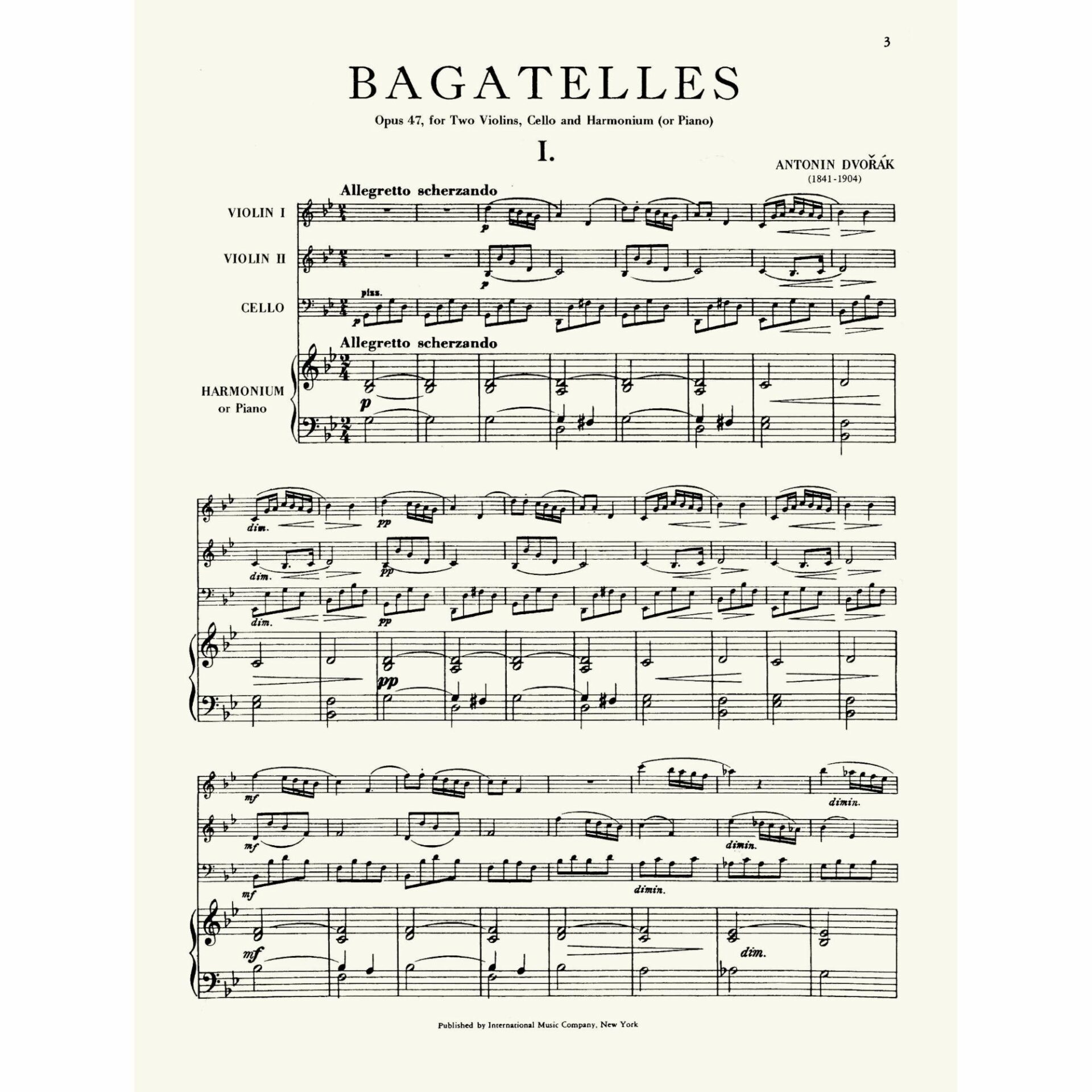 Dvorak — Bagatelles, Op. 47 for Two Violins, Cello, and Piano