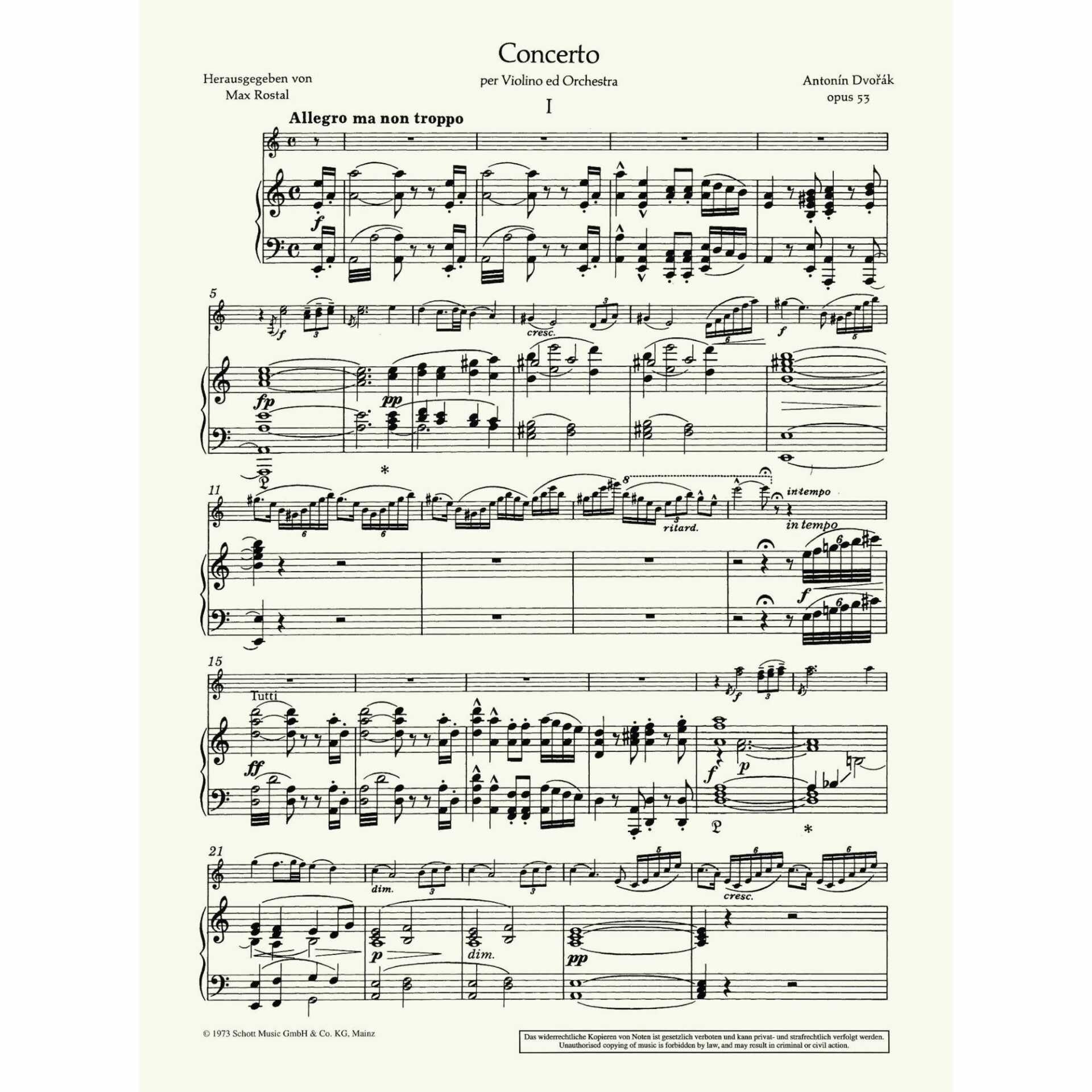 Dvorak — Concerto in A Minor, Op. 53 for Violin and Piano