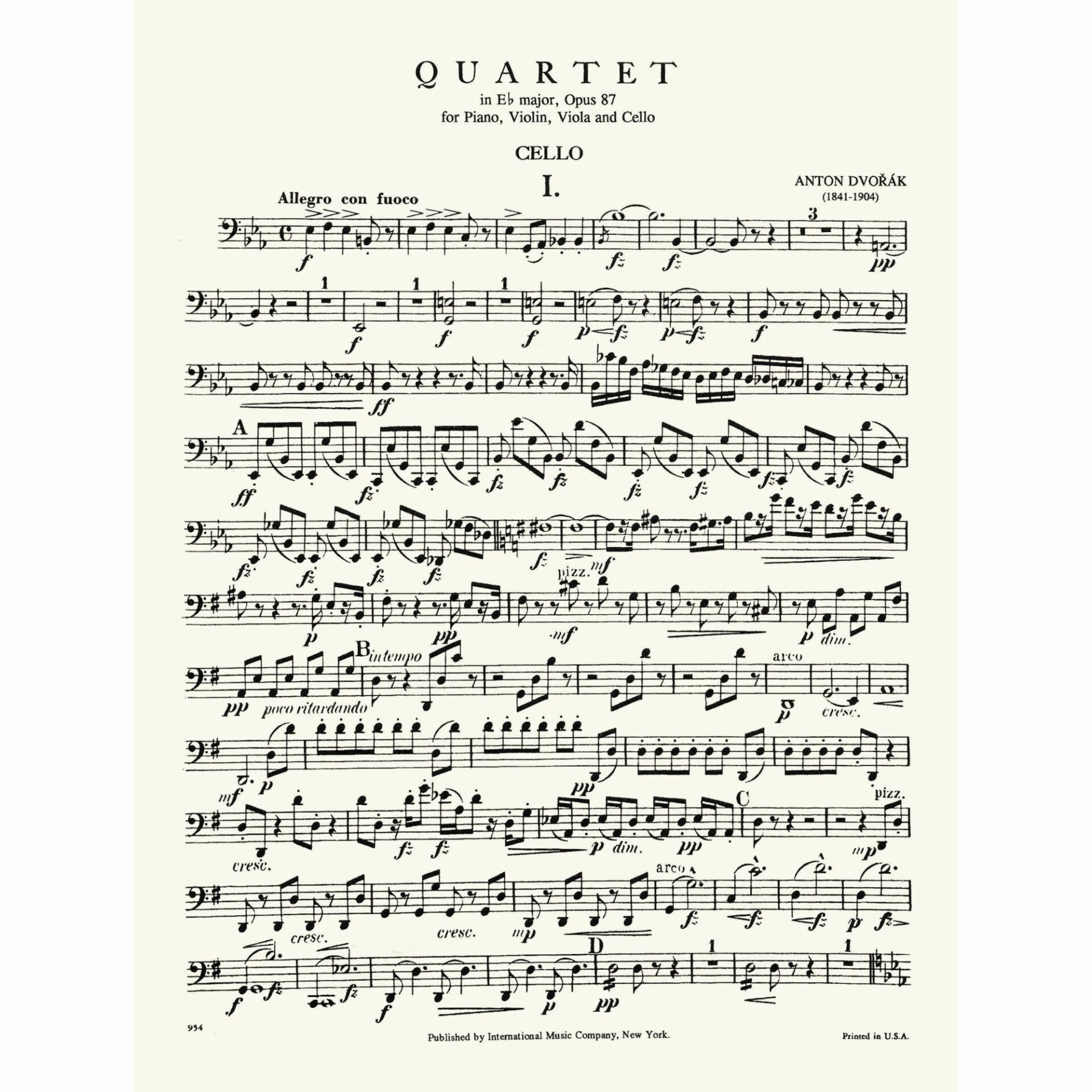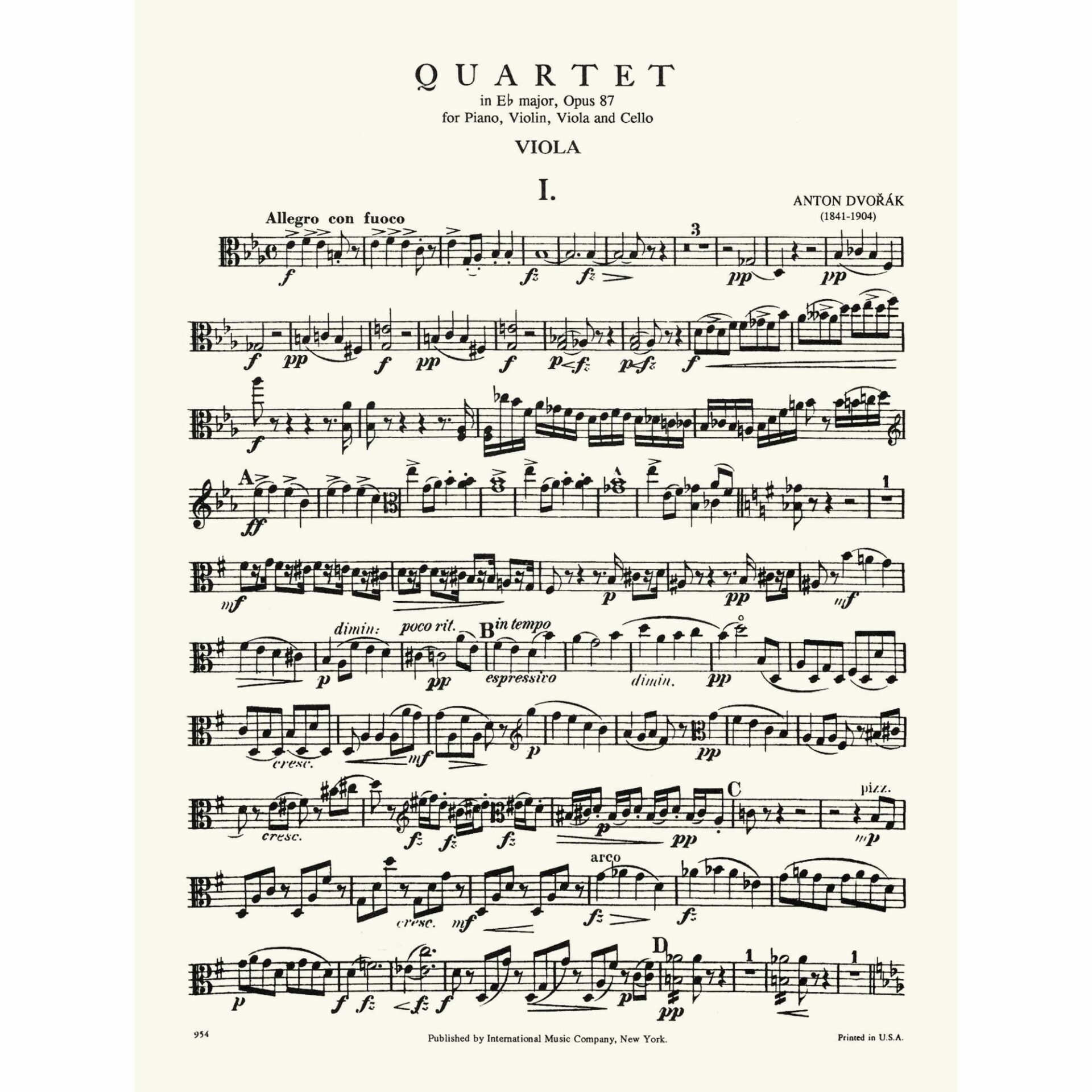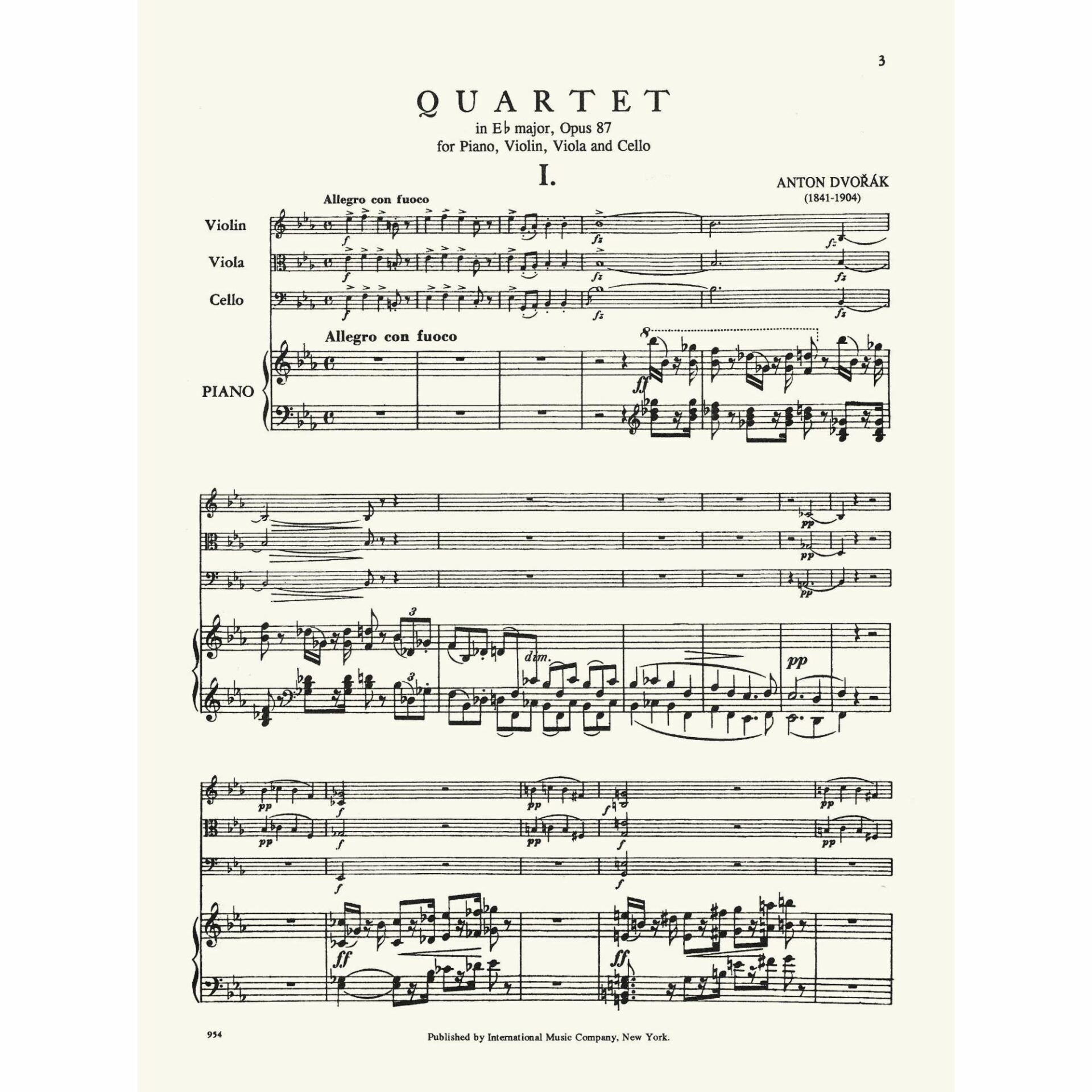 Dvorak — Piano Quartet in E-flat Major, Op. 87