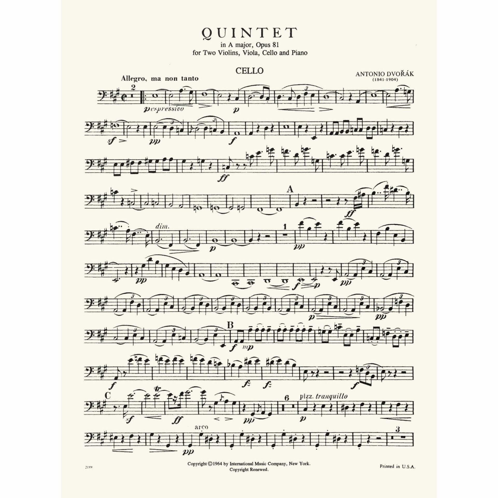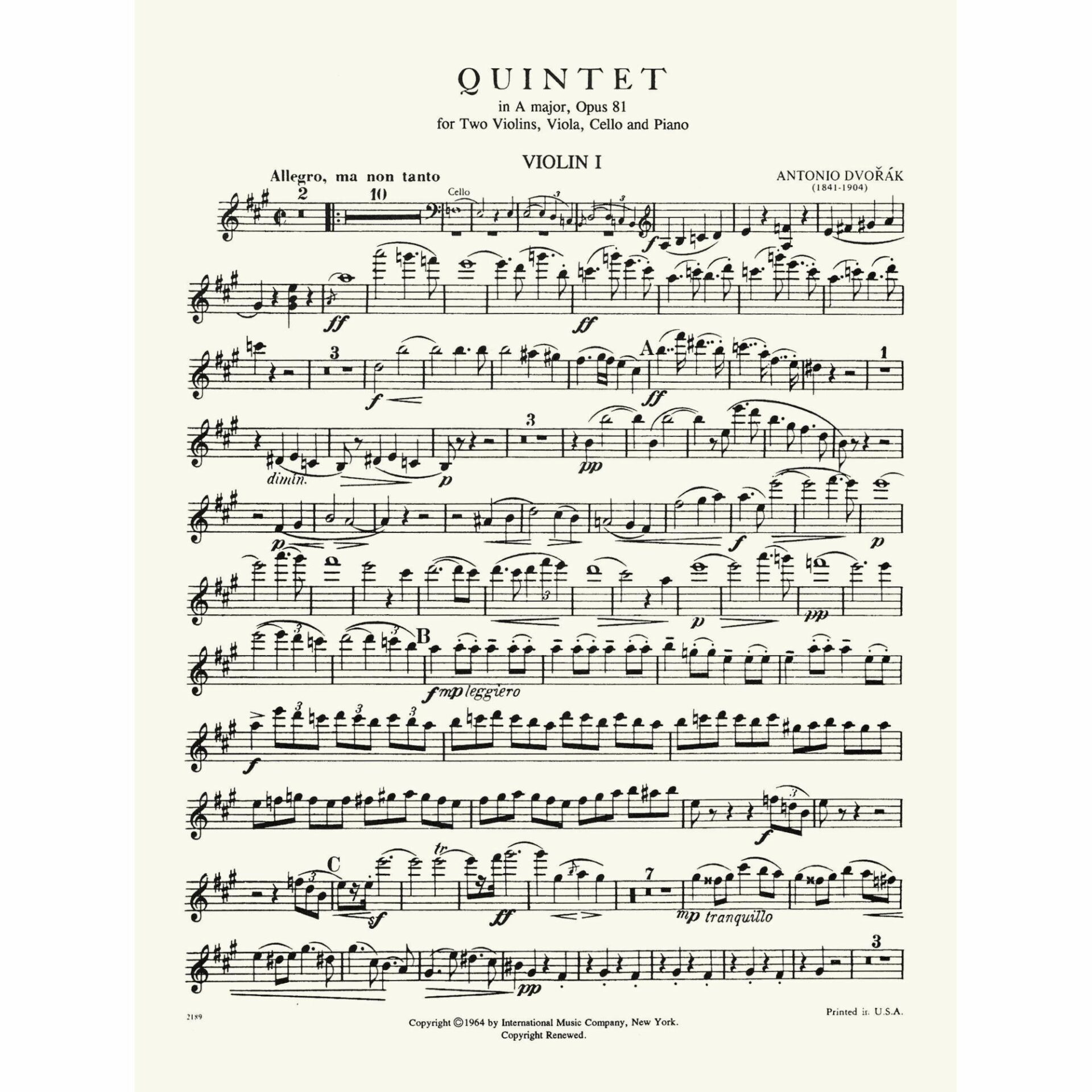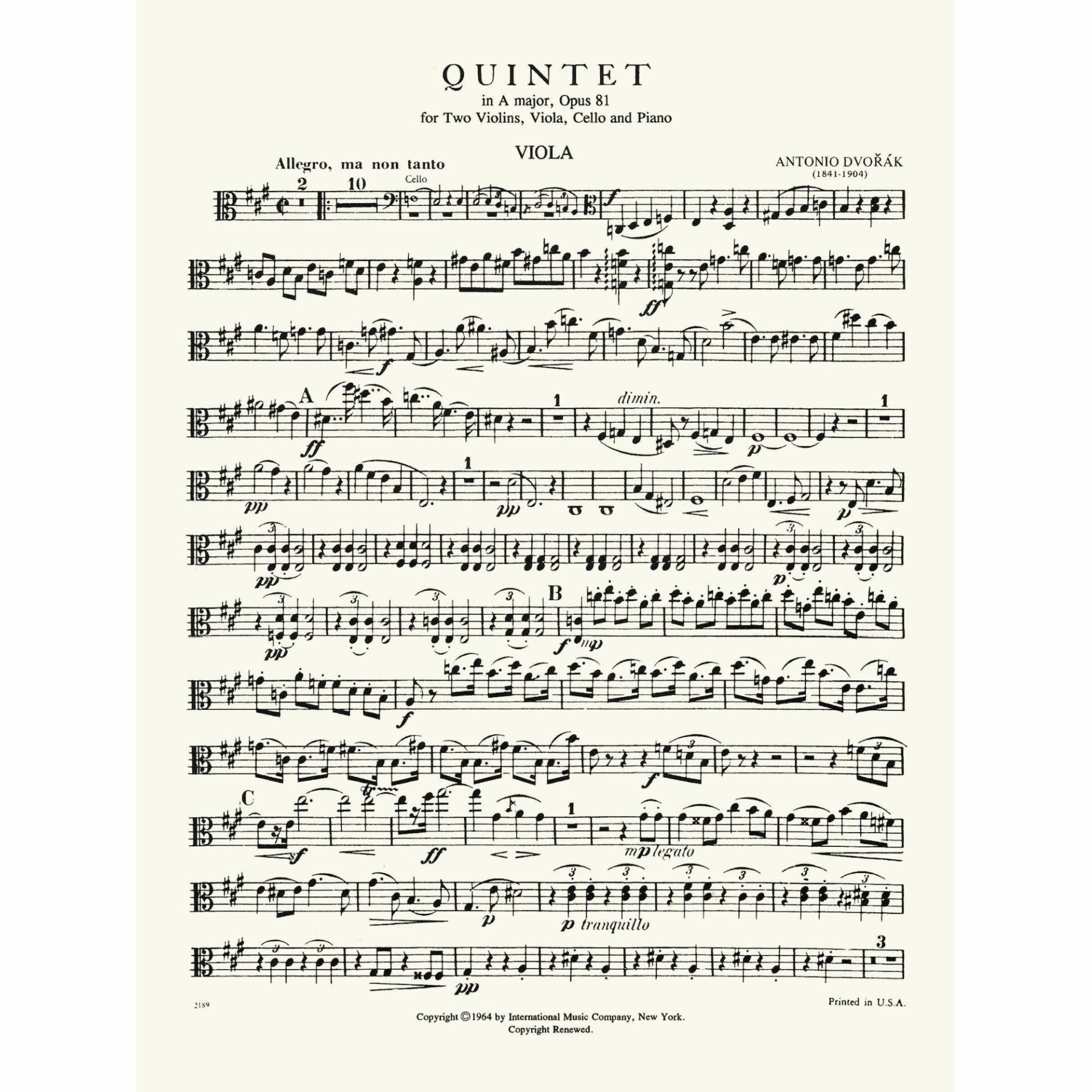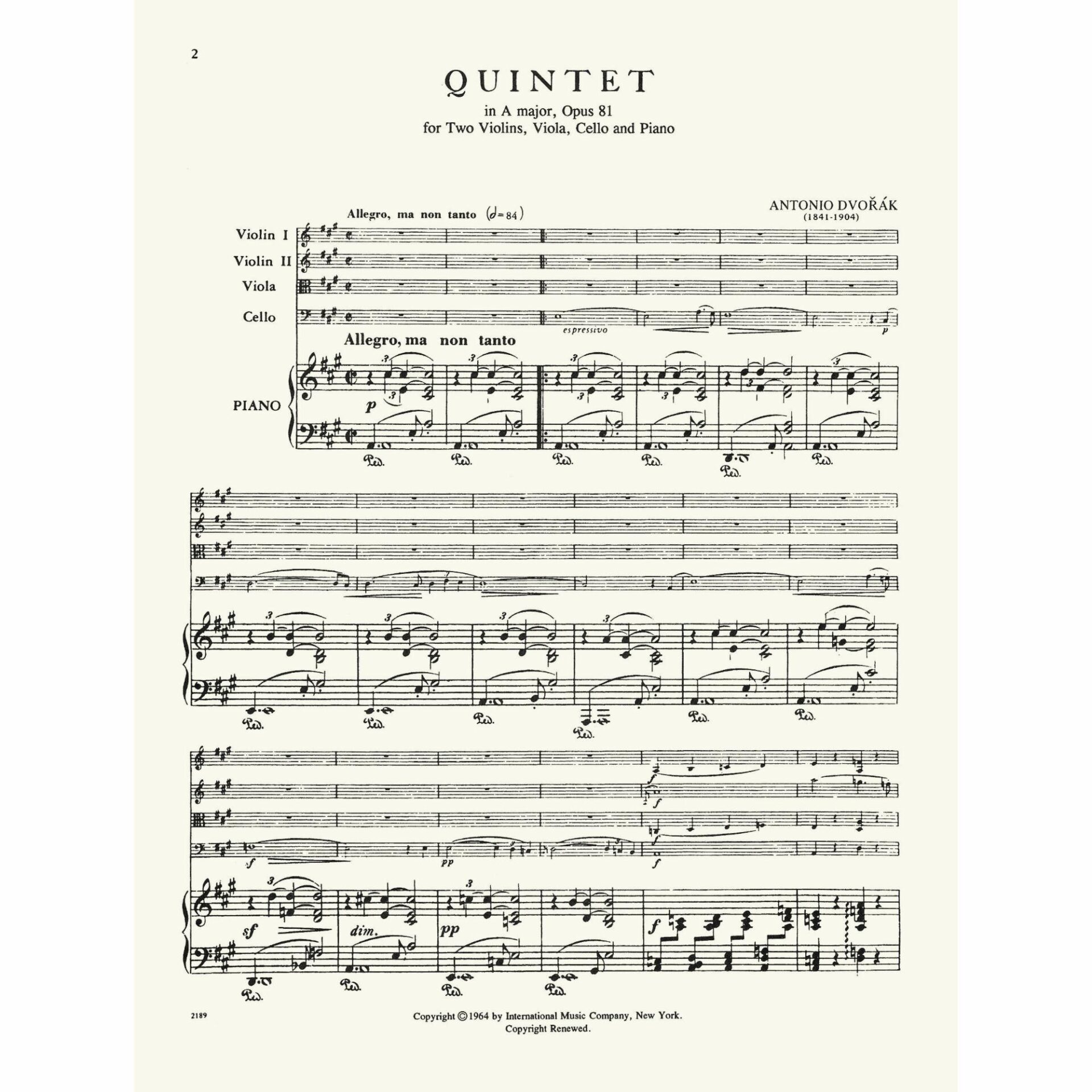 Title: Quintet in A Major, Op. 81