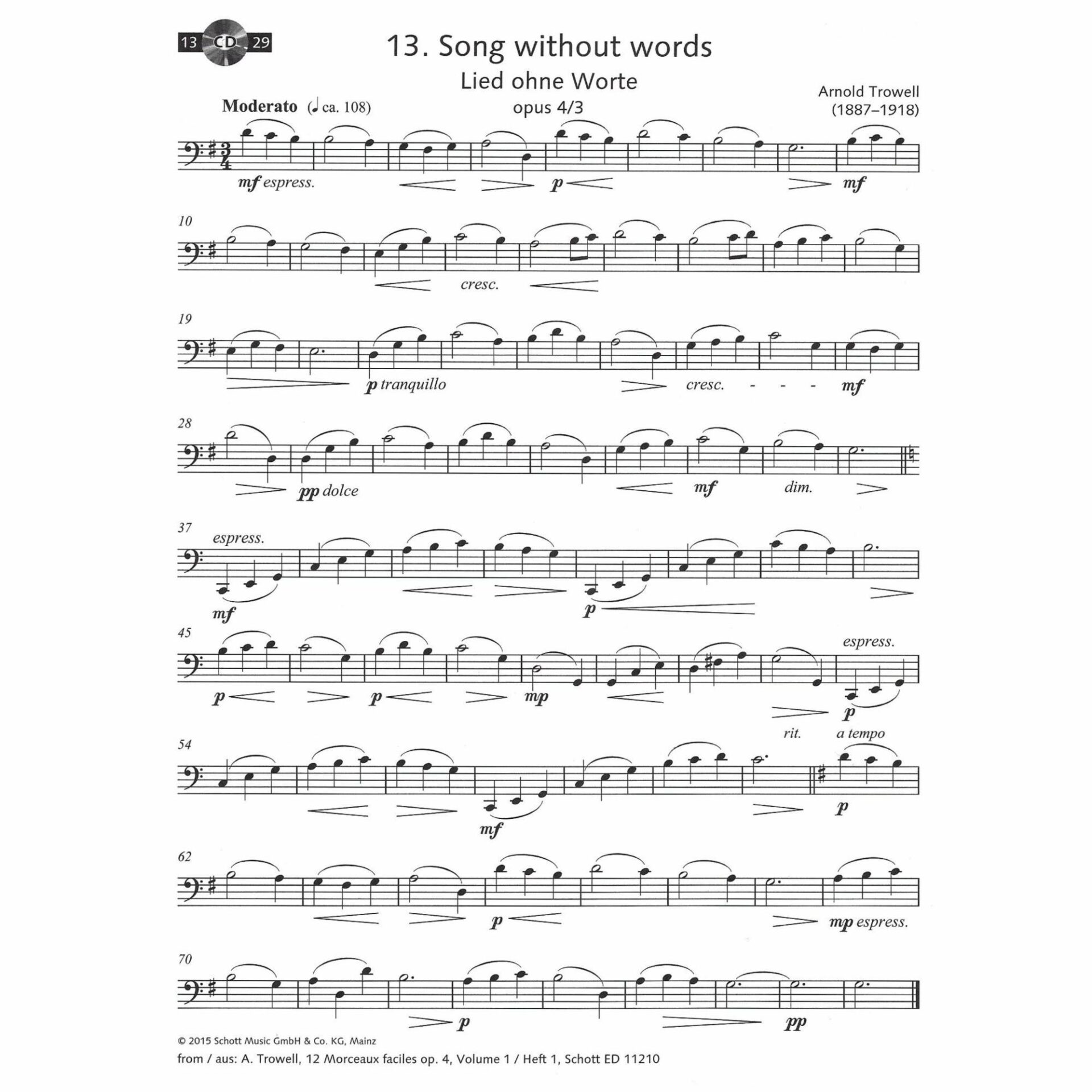 - Song Without Words, Op. 4/3 – Arnold Trowell