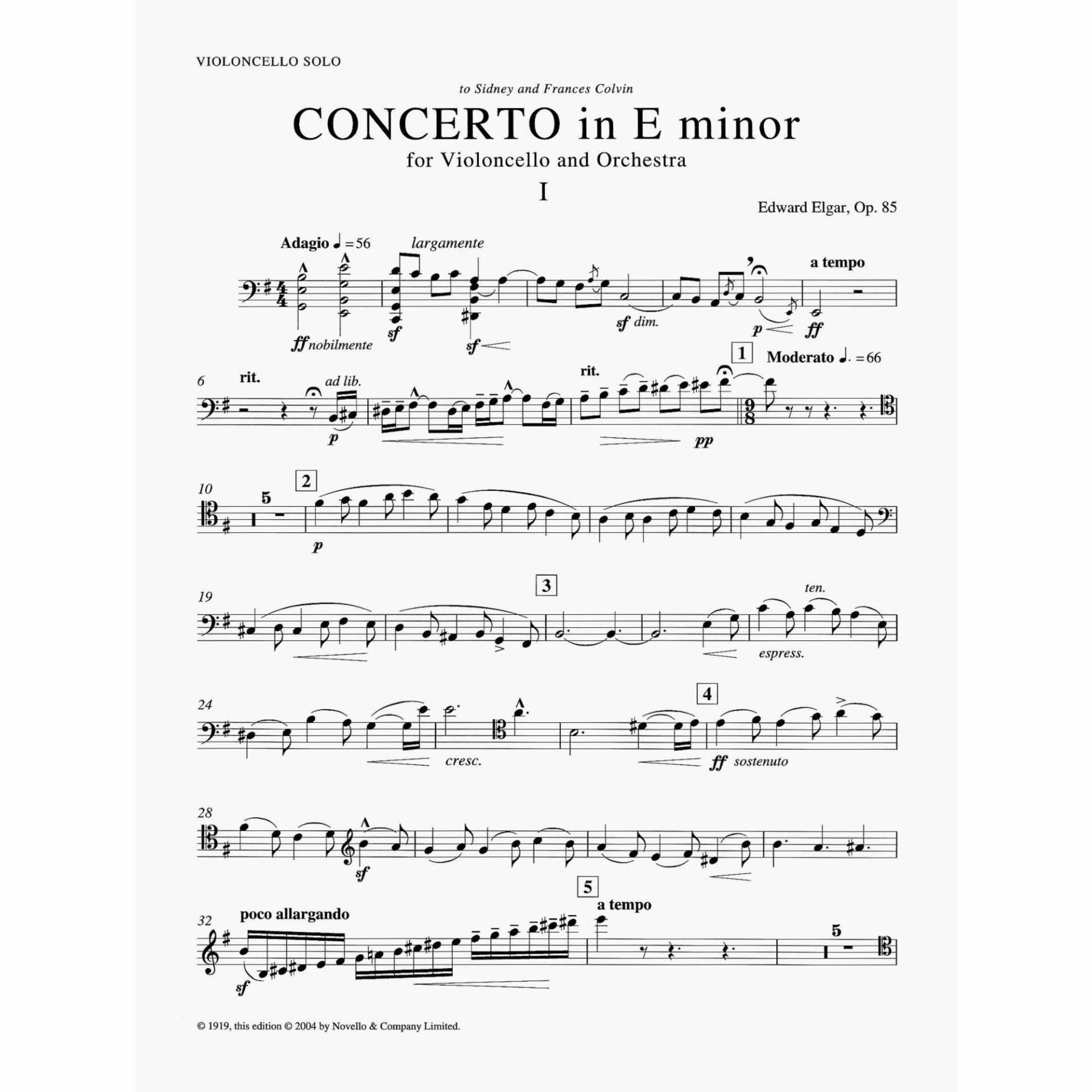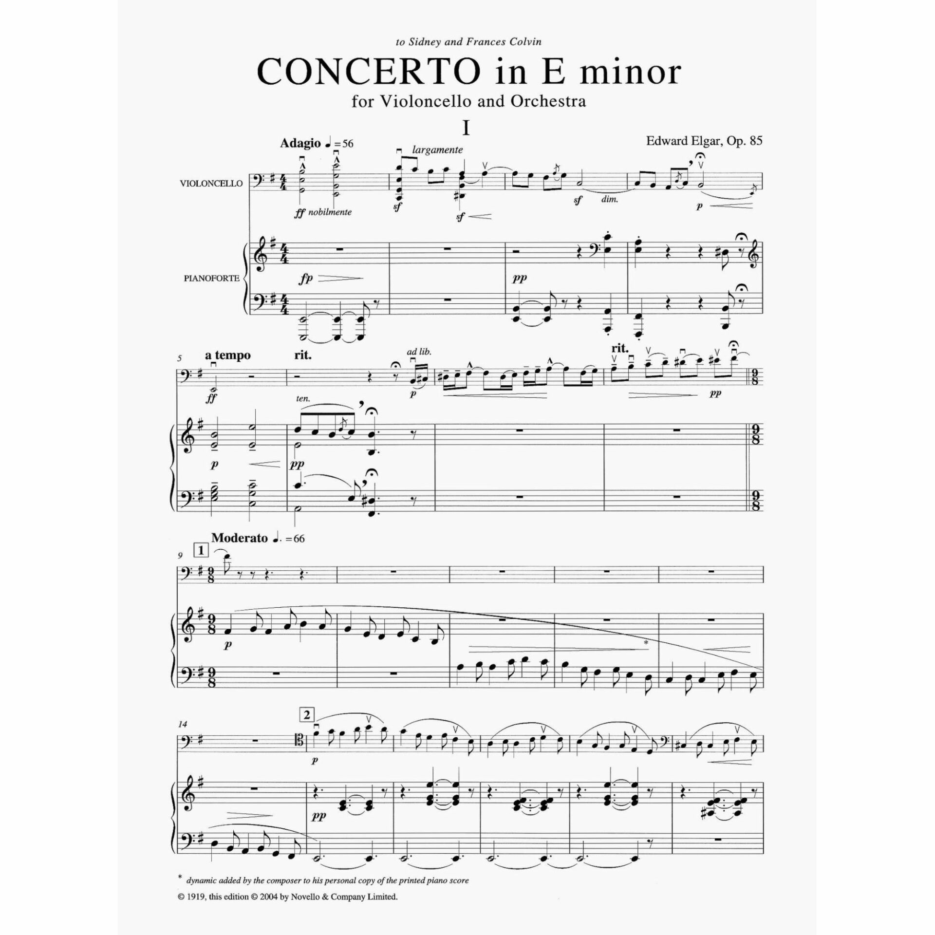 Elgar — Concerto in E Minor, Op. 85 for Cello and Piano