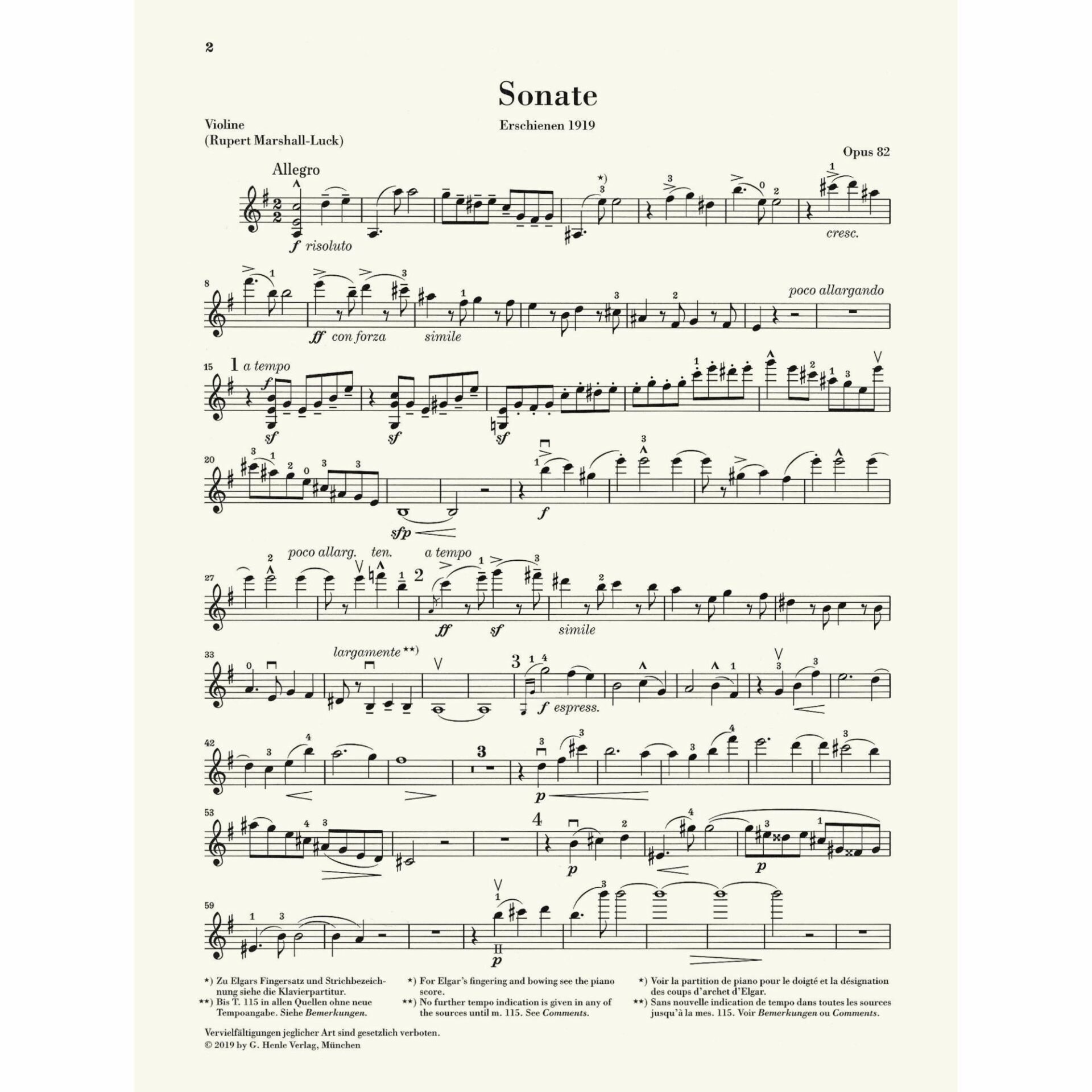 Elgar — Sonata, Op. 82 for Violin and Piano