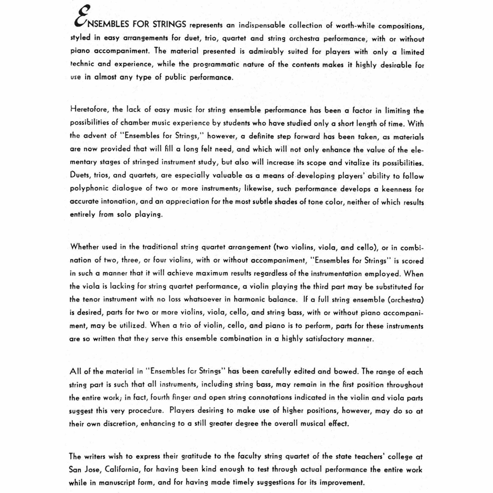 An indispensable ensemble collection for string instrument groups, suitable for duet, trio, and quartet playing, as well as string orchestra performance
