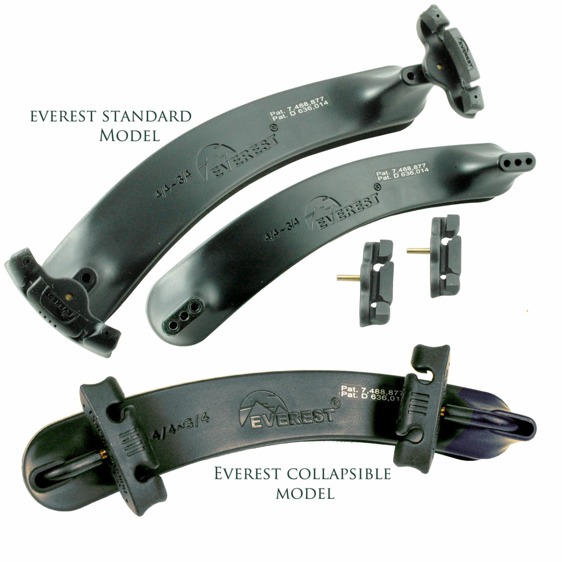The Everest Collapsible shoulder rest is designed with folding feet for easier storage in most violin cases. Two newly designed rubber feet provide greater stability and minimize slipping.
