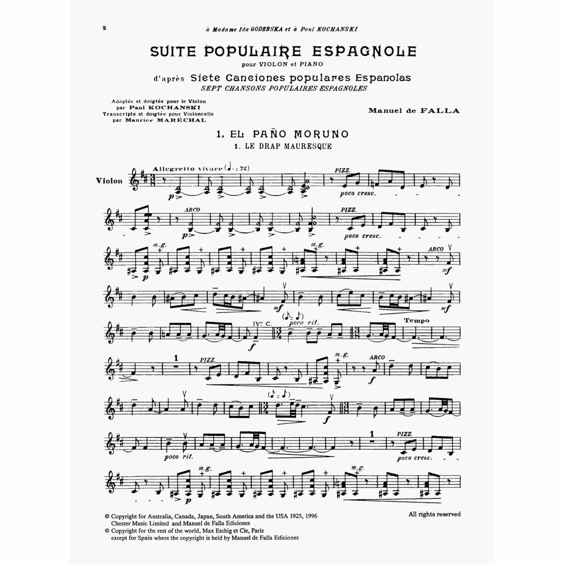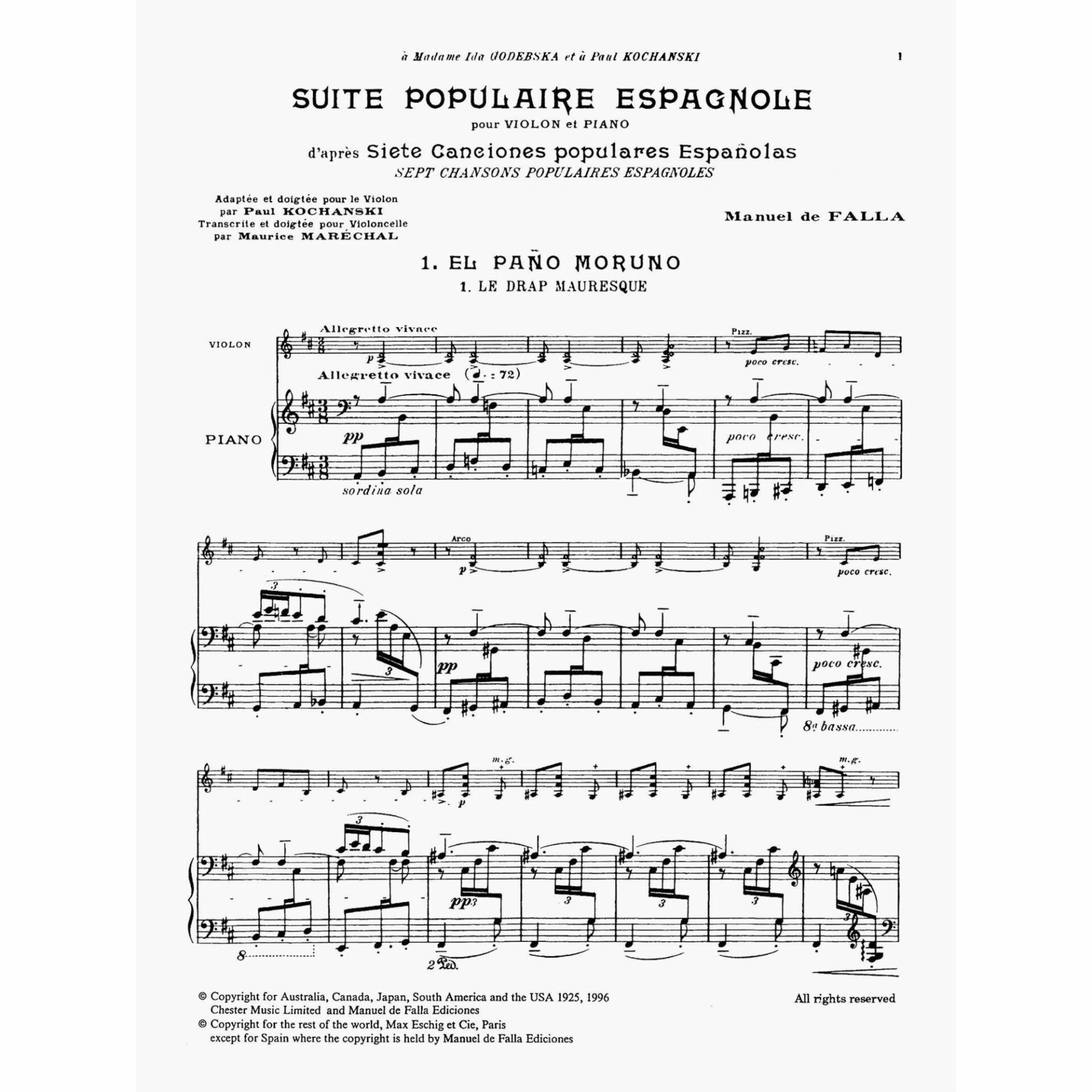 Falla — Suite of Spanish Folksongs for Violin and Piano