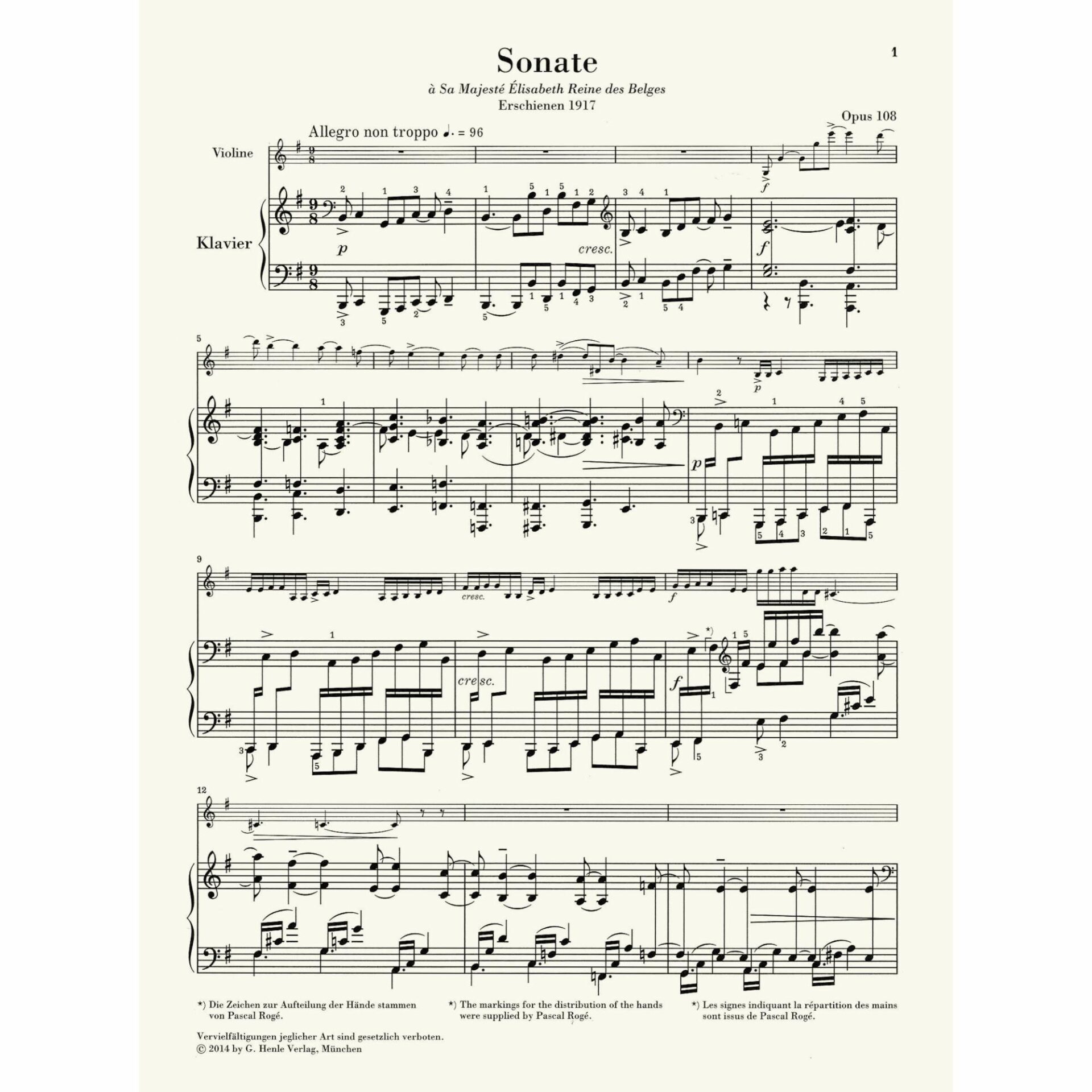 This edition includes two violin parts – one with modern technical markings (fingerings, practical bowings, etc) and another, the “urtext”, with the composer’s markings alone.