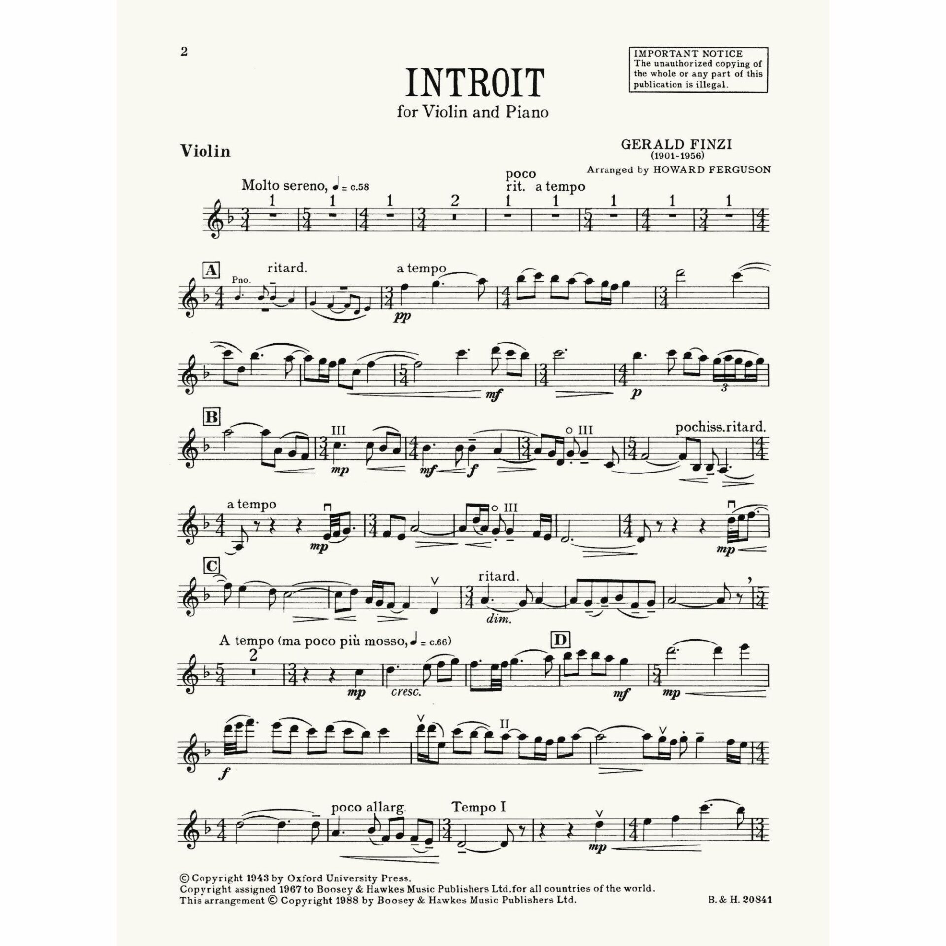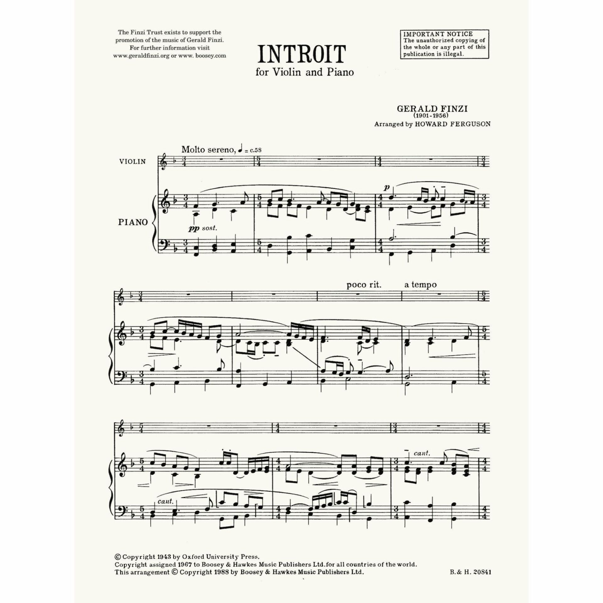 Finzi — Introit for Violin and Piano