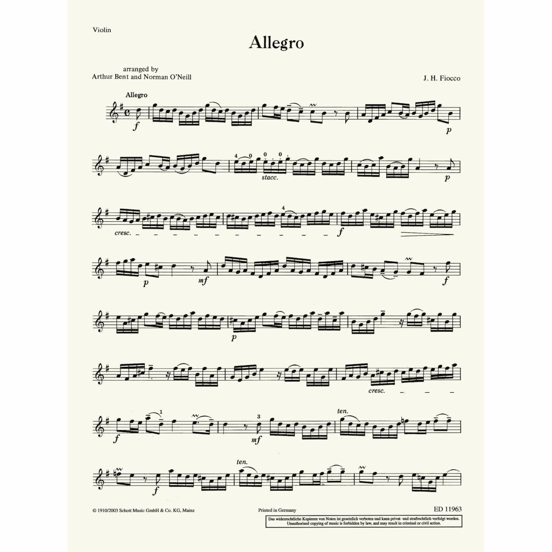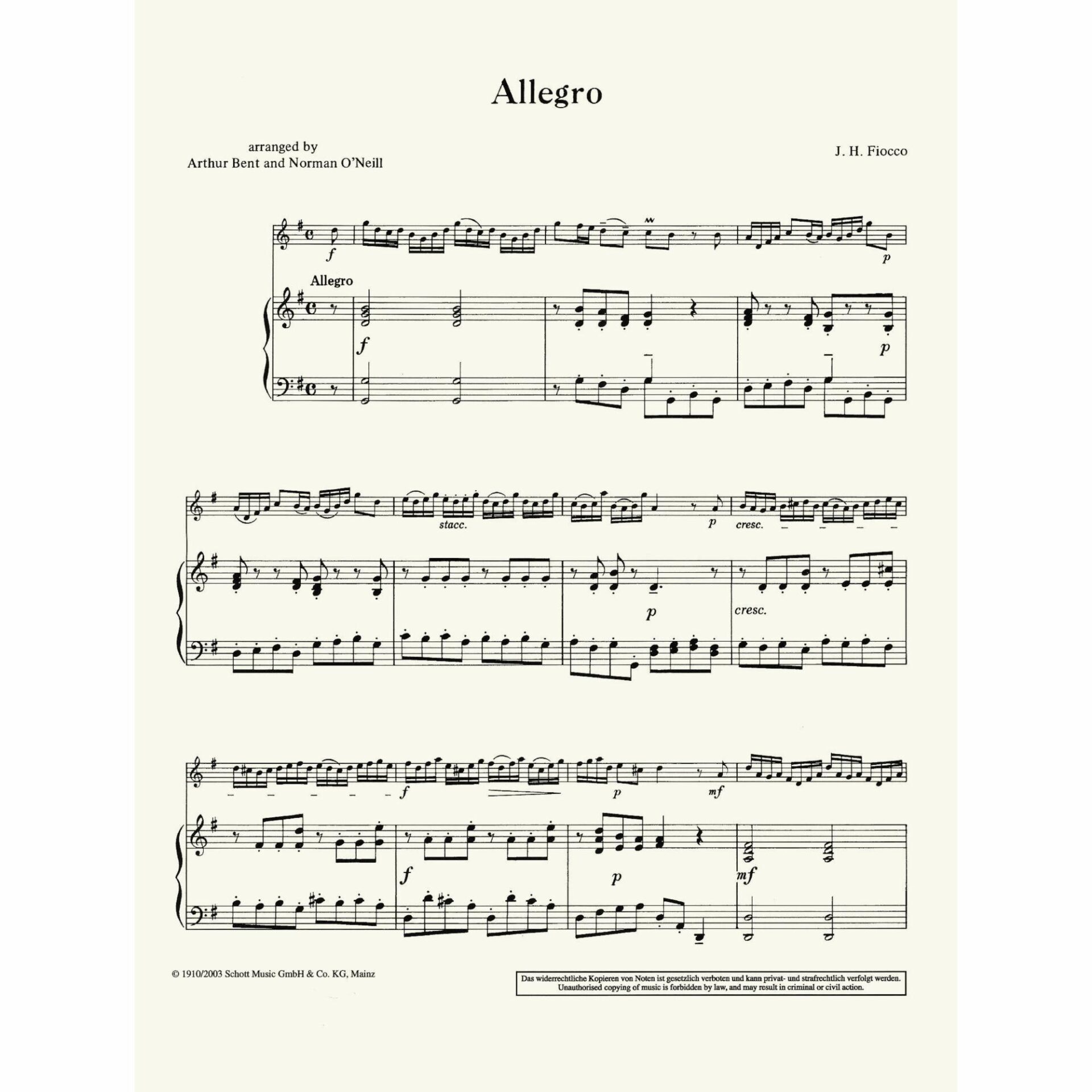 Fiocco — Allegro in G Major for Violin and Piano