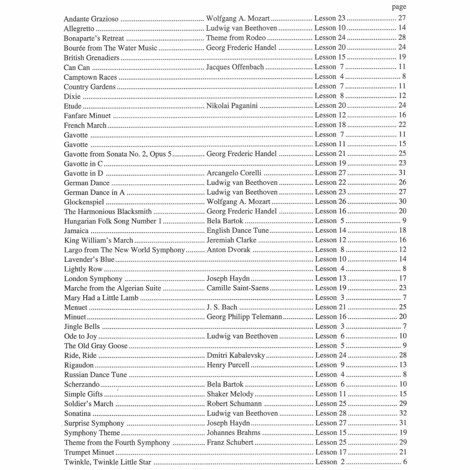47 melodies, including works by Bach, Beethoven,Brahms, Mozart, and more.