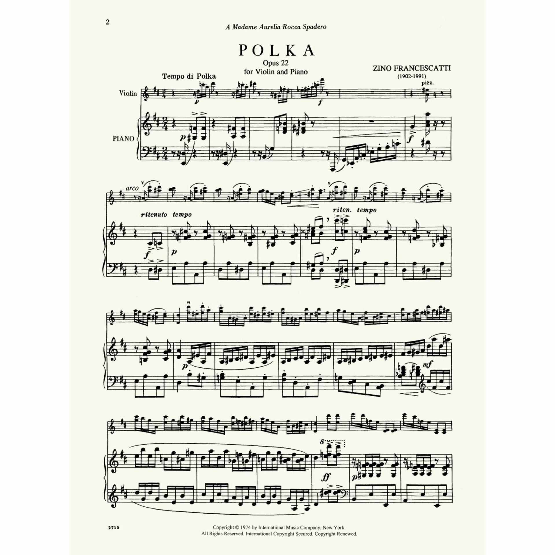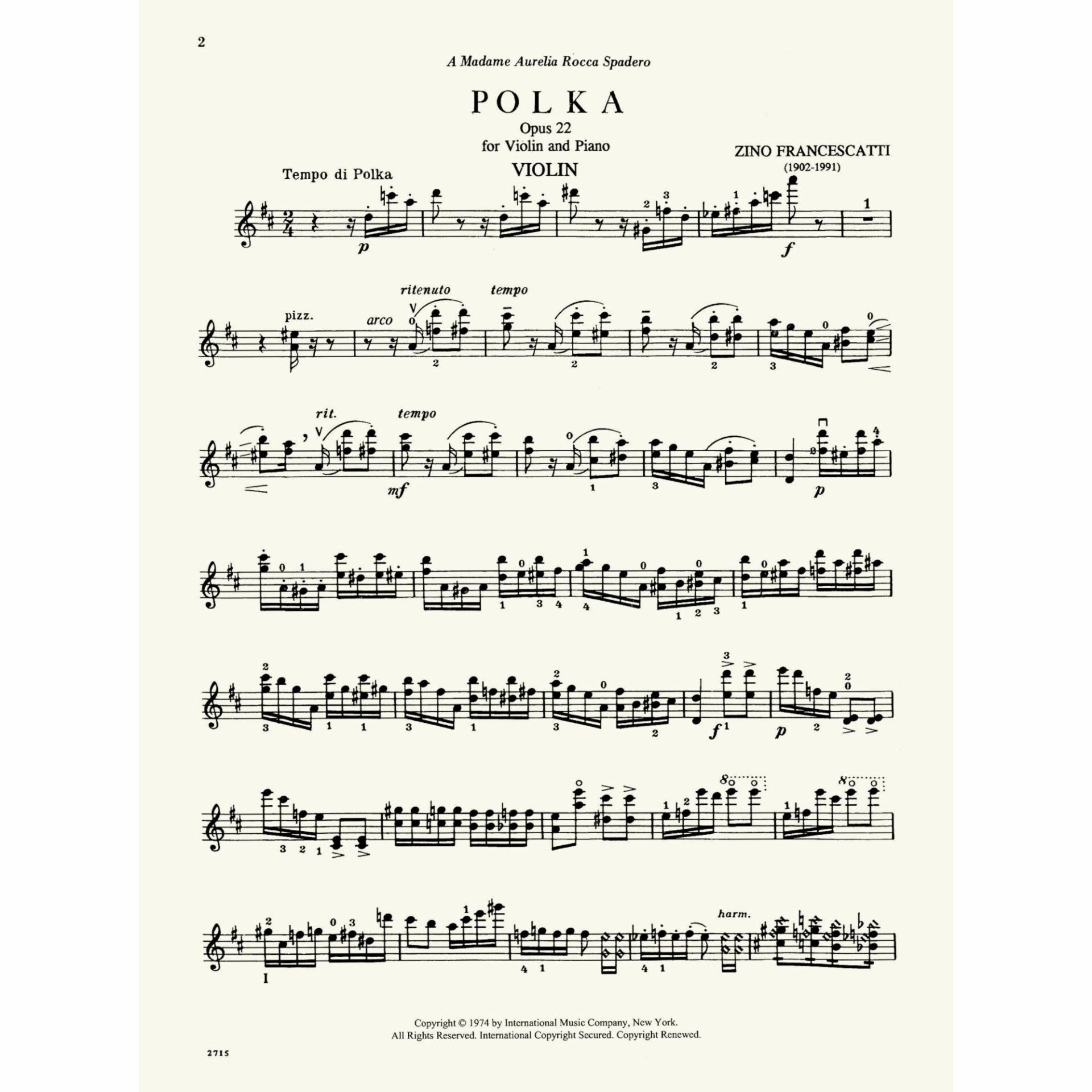 Francescatti — Polka, Op. 22 for Violin and Piano