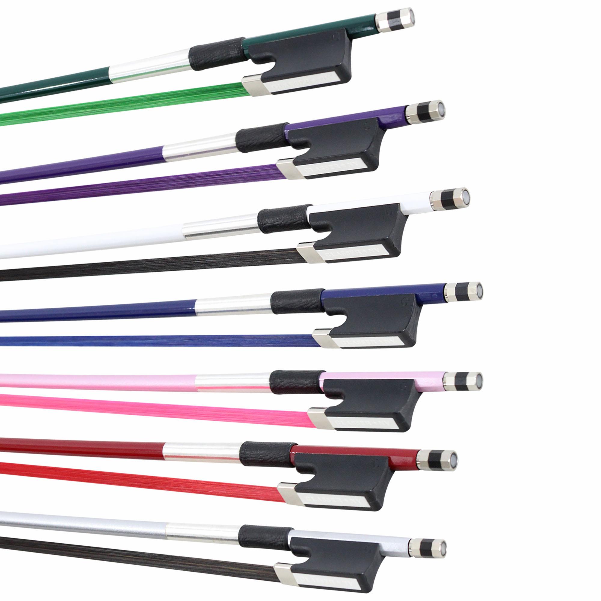 The well known Glasser cello bow is engineered for durability and longevity. Glasser is a popular introductory bow and a good choice for beginning to intermediate players. These bows are available in blue, green, pink, red, purple, silver, and white.