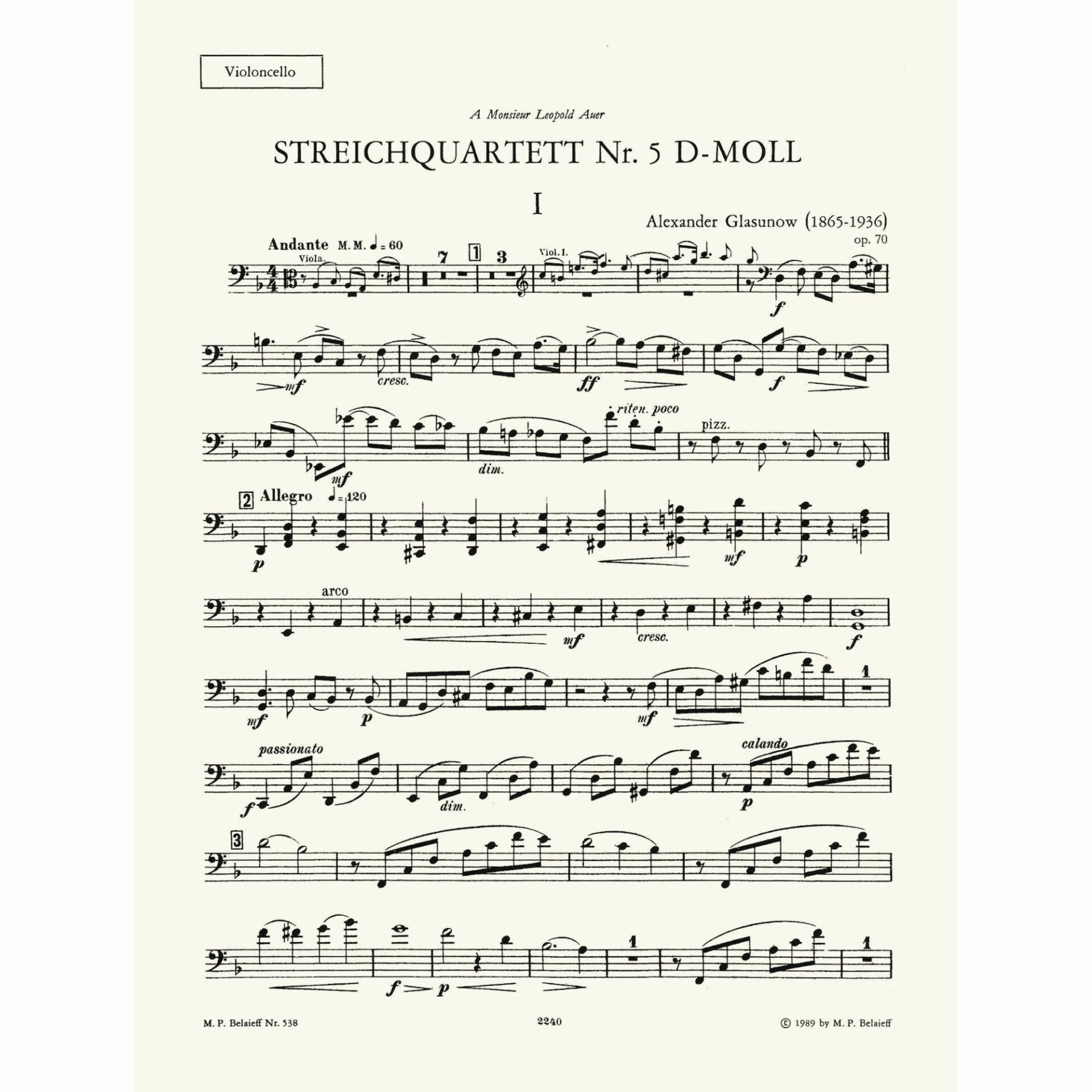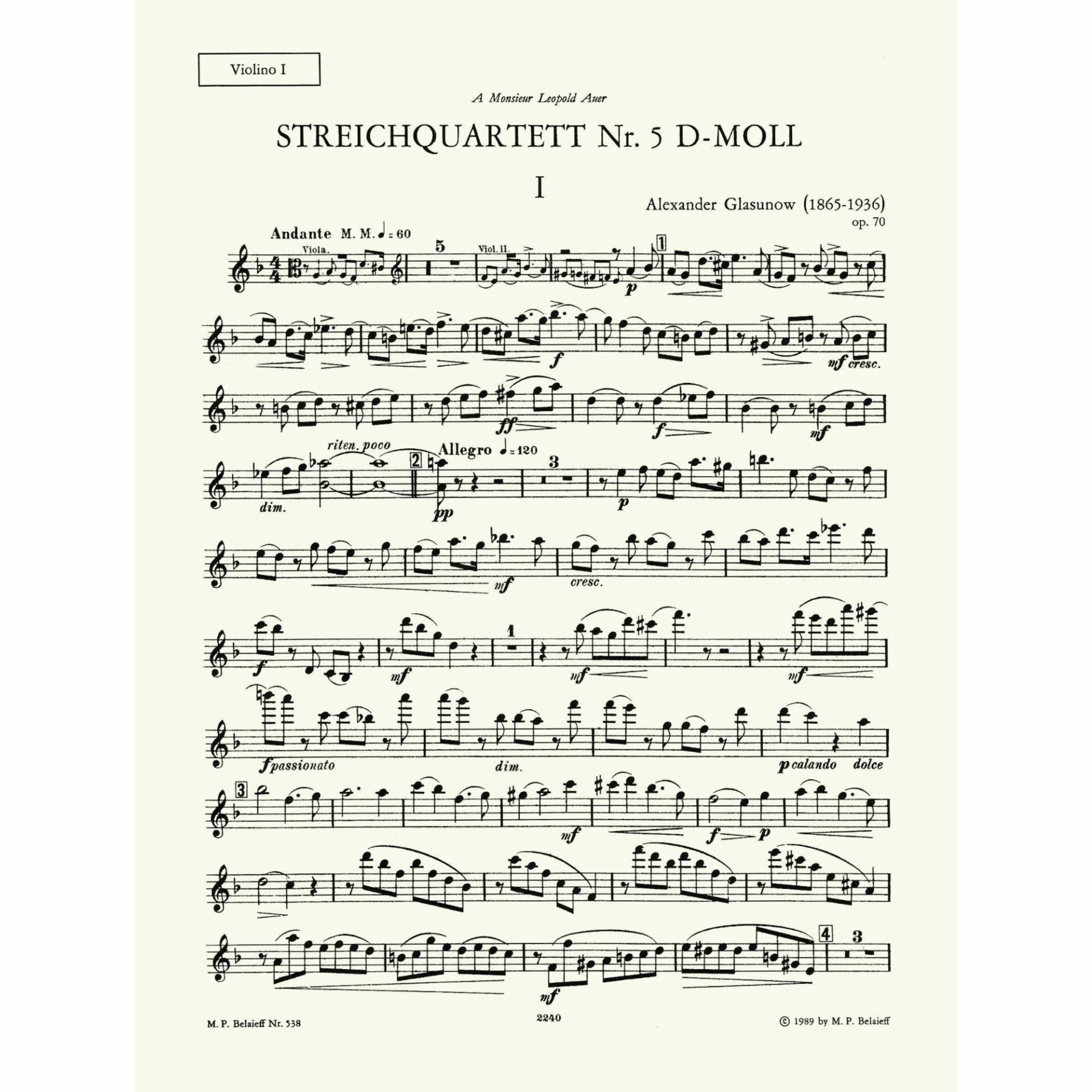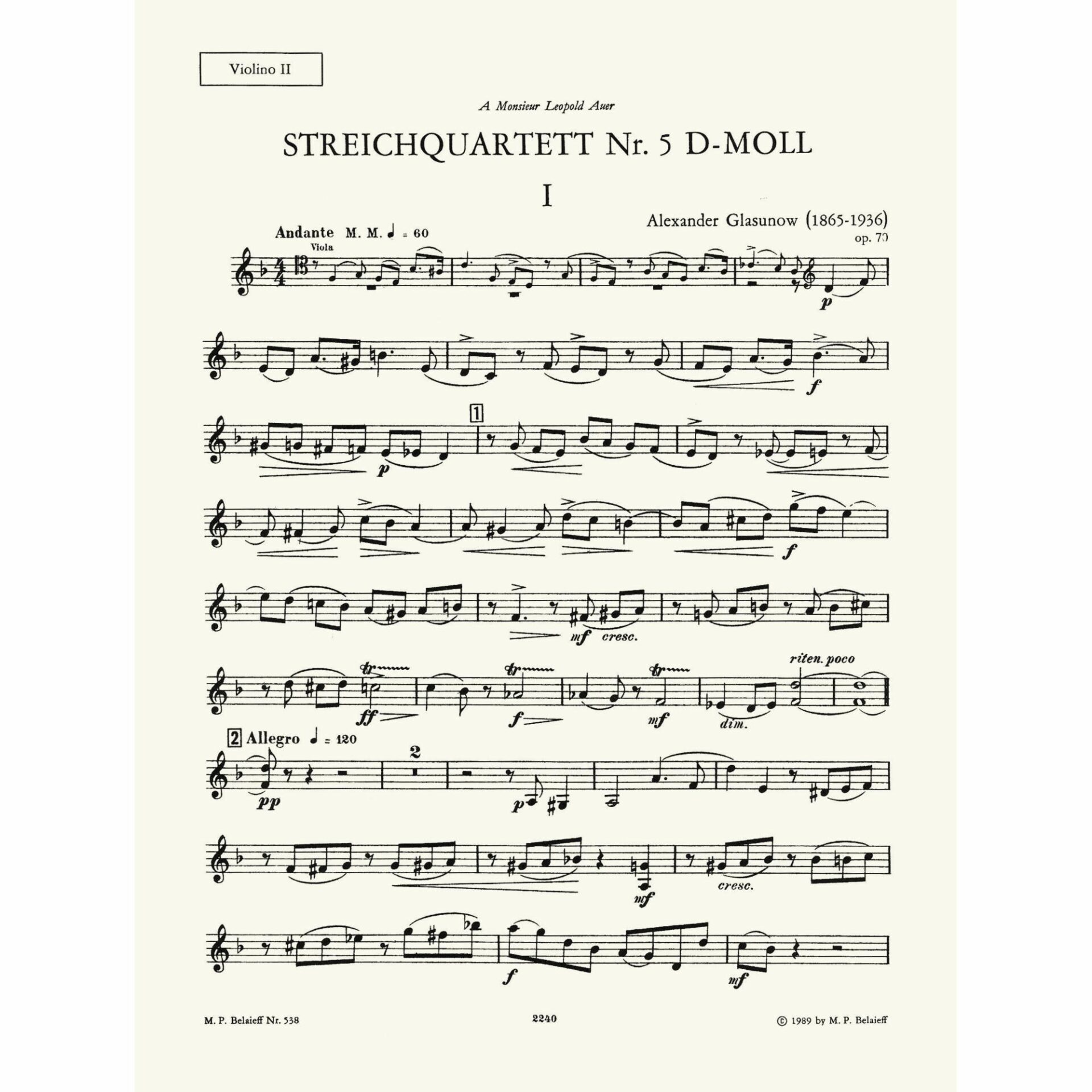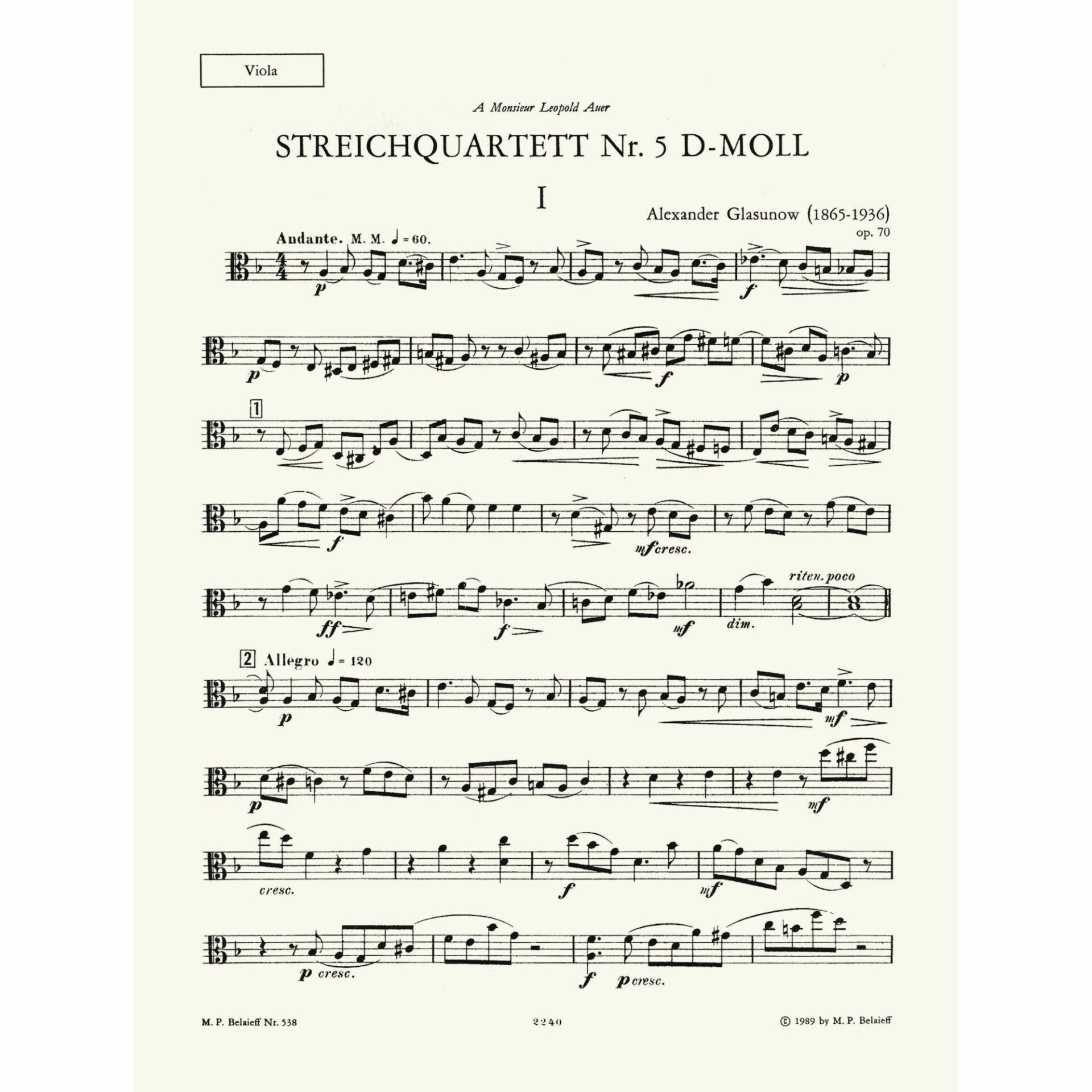 Title: String Quartet No. 5 in D Minor, Op. 70