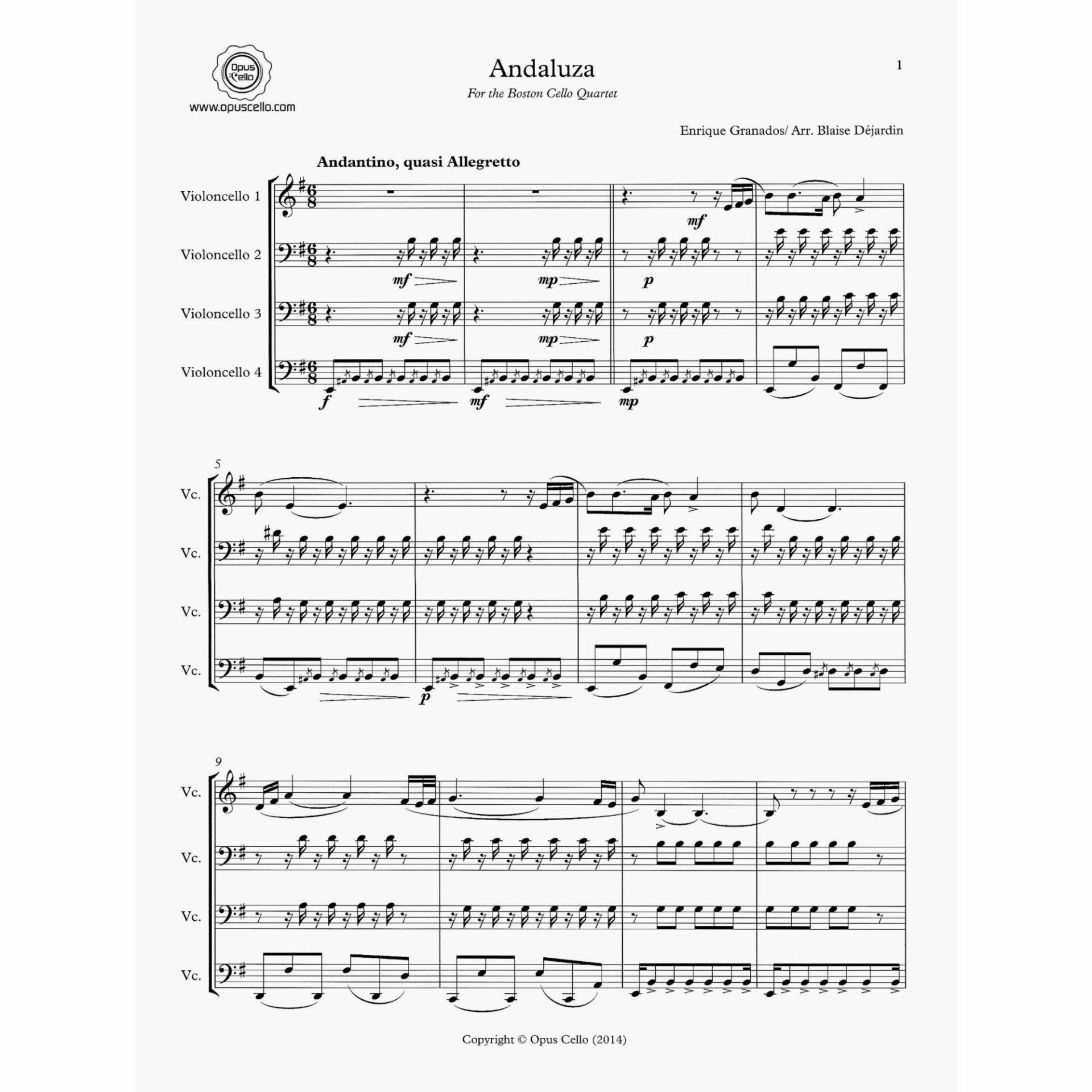 Granados — Andaluza for Four Cellos