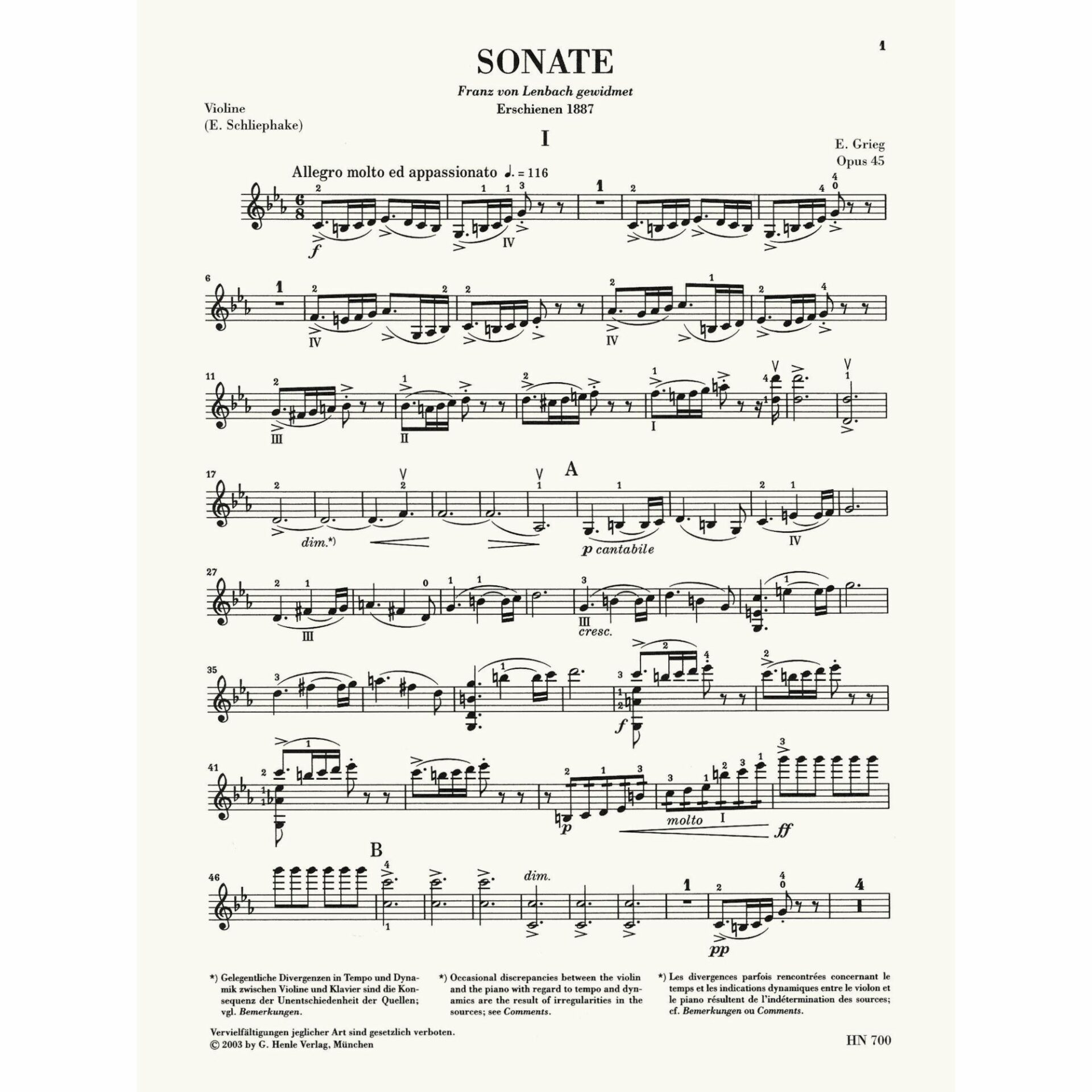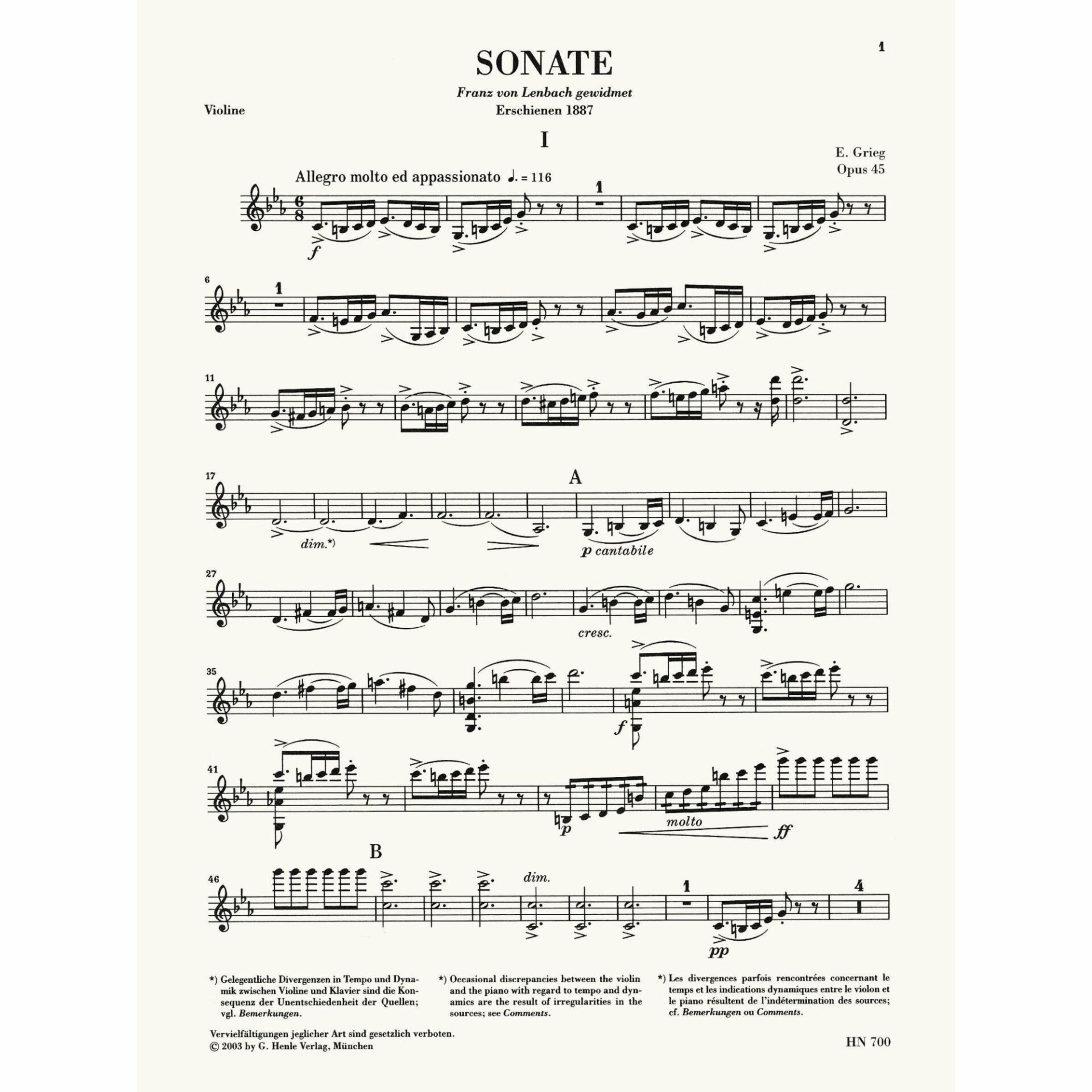 Grieg — Sonata in C Minor, Op. 45 for Violin and Piano