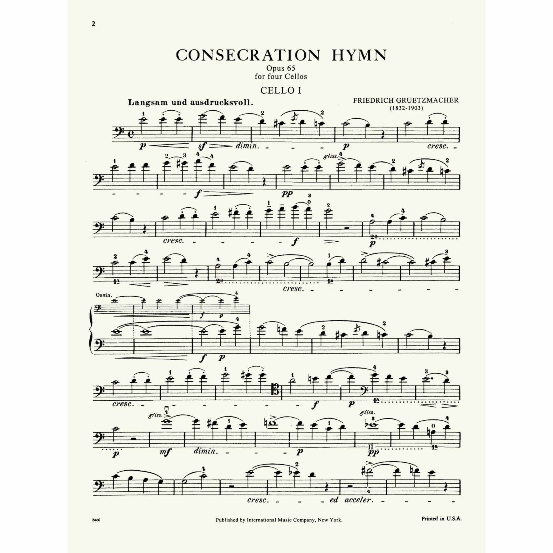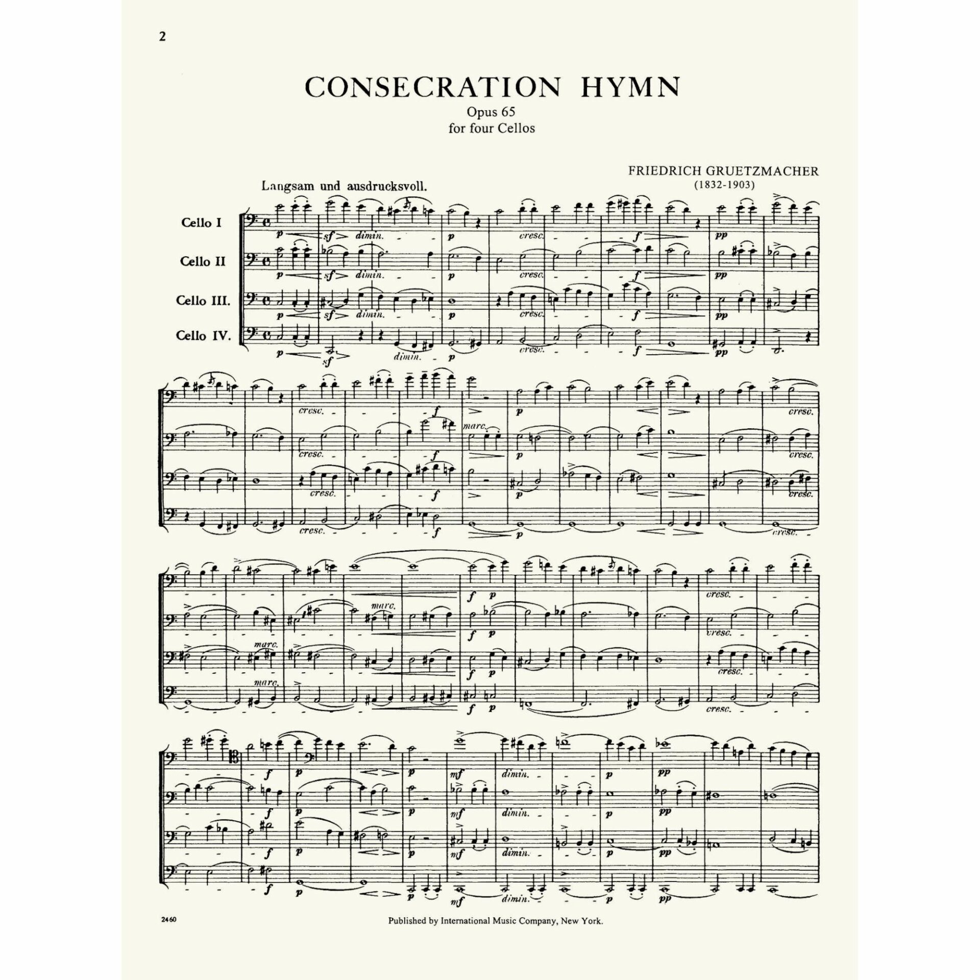 Gruetzmacher — Consecration Hymn, Op. 65 for Four Cellos