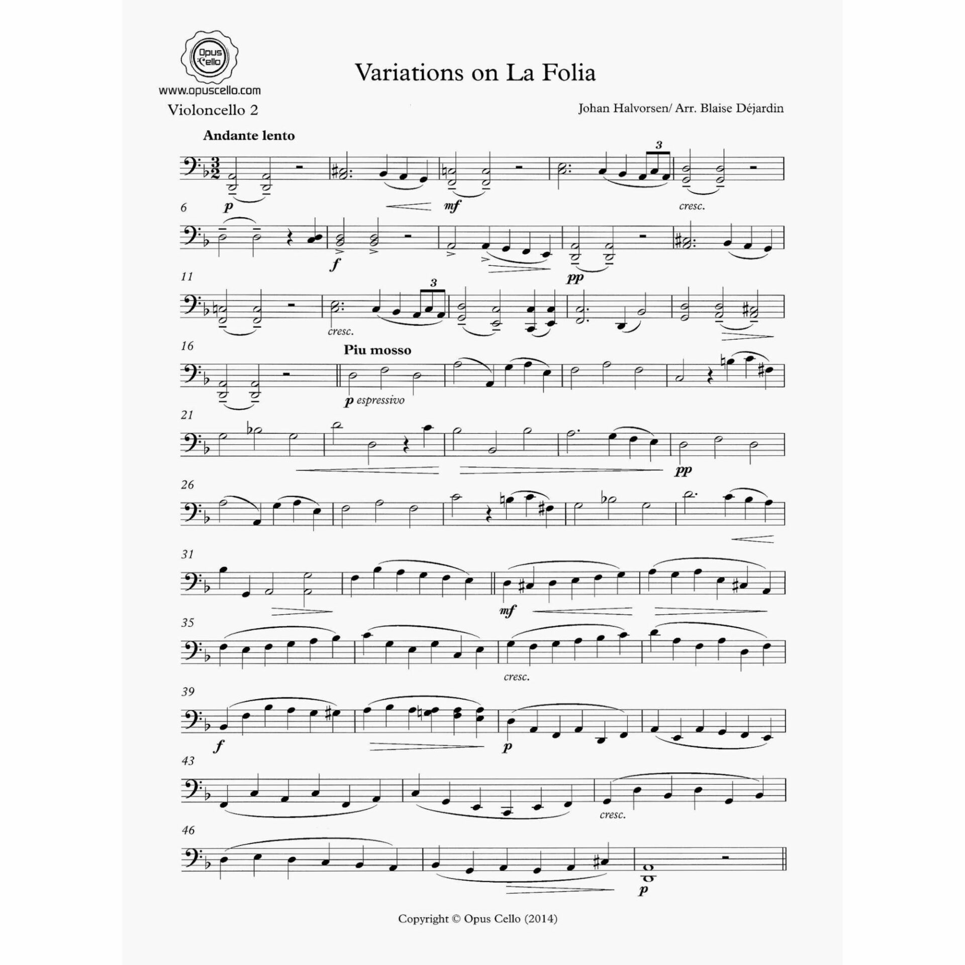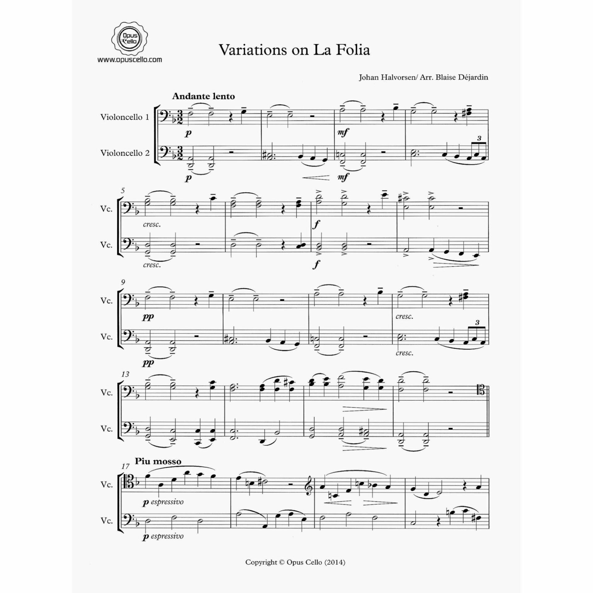 Halvorsen — Variations on La Folia for Two Cellos