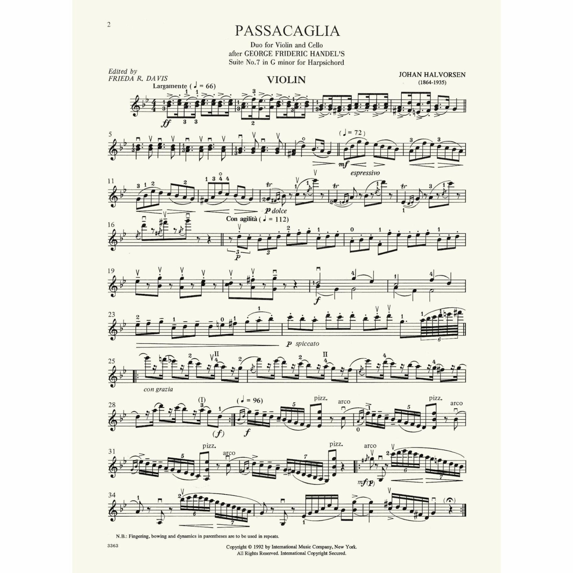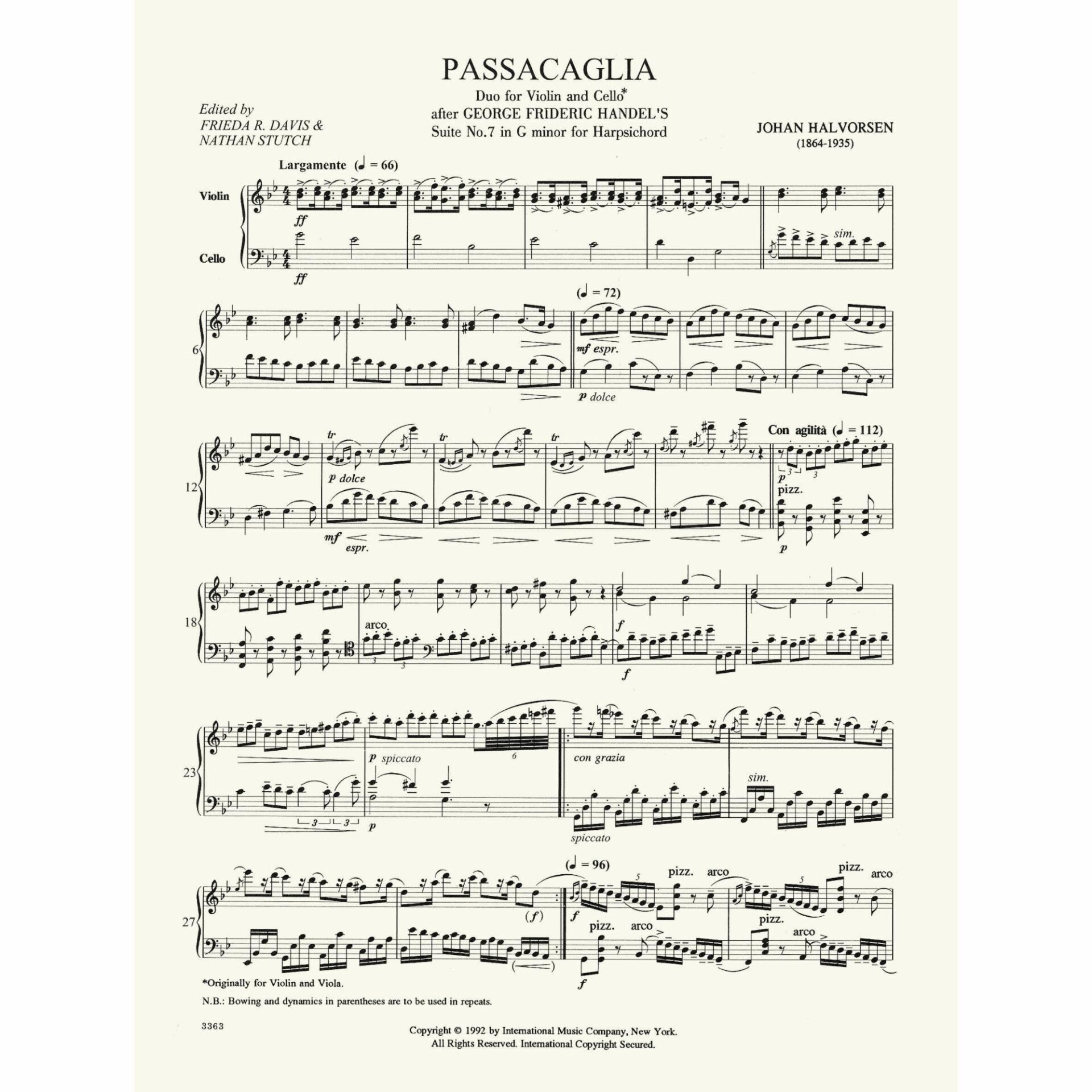 Handel — Passacaglia for Violin and Cello