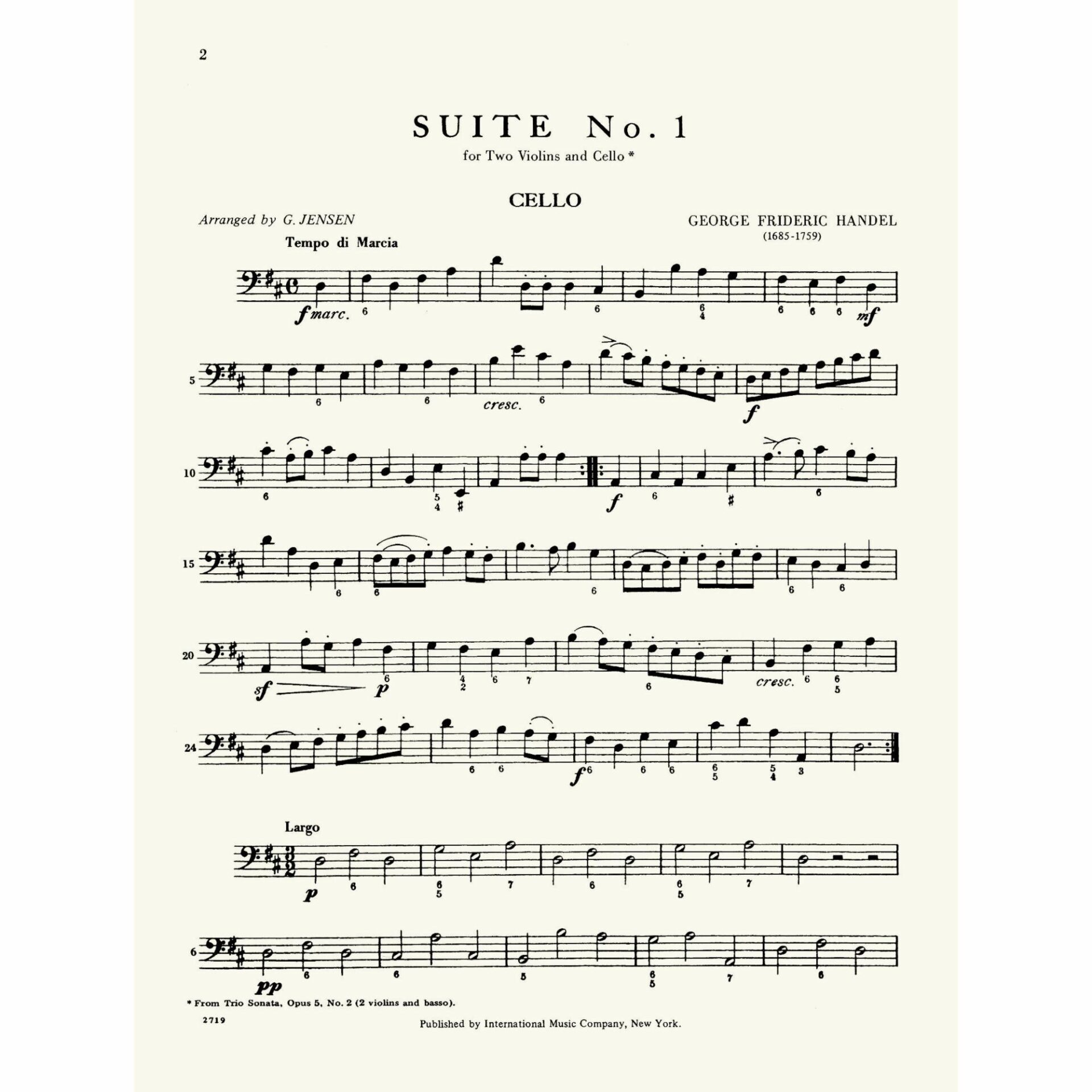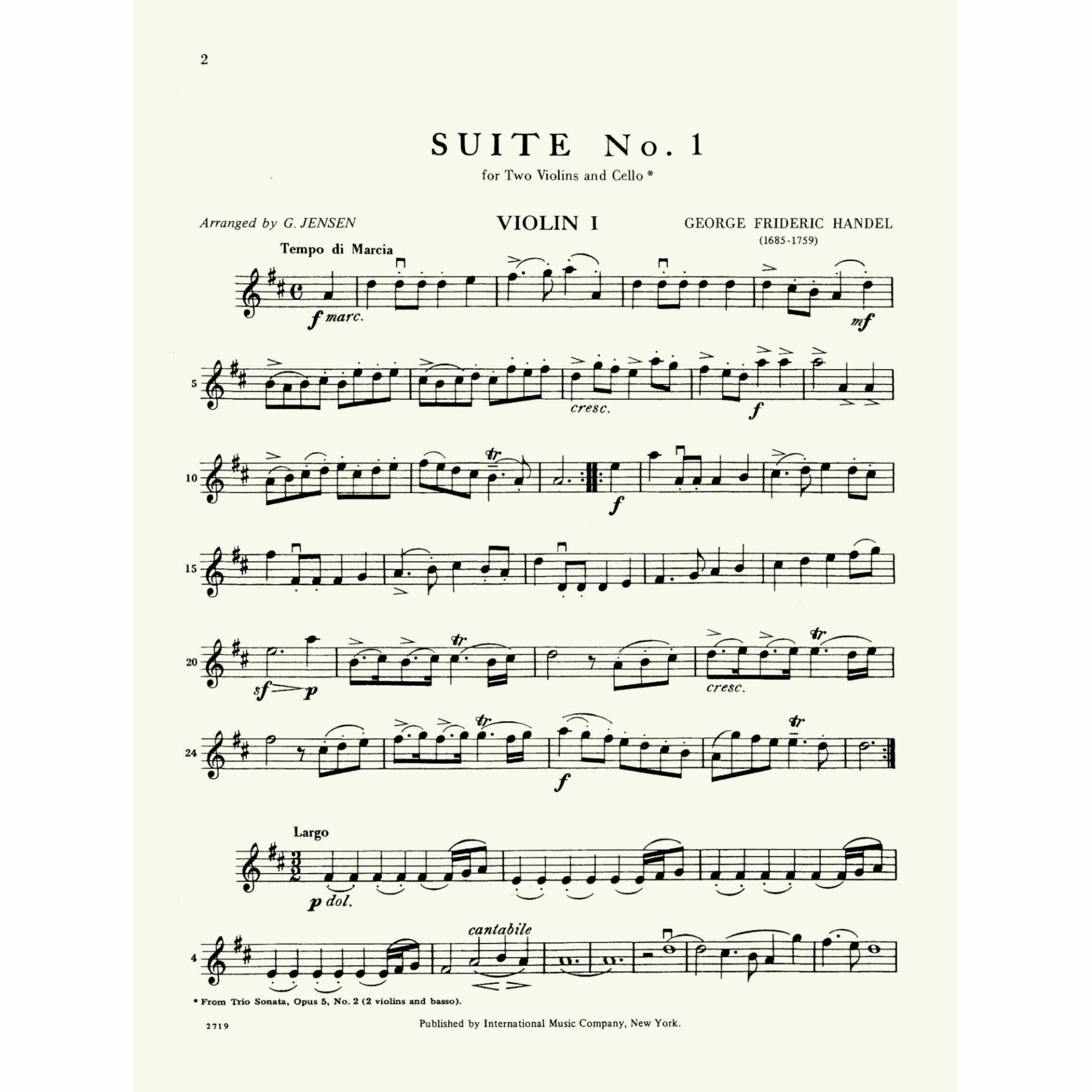 Handel — Two Suites, Op. 5, No. 2 for Two Violins and Cello