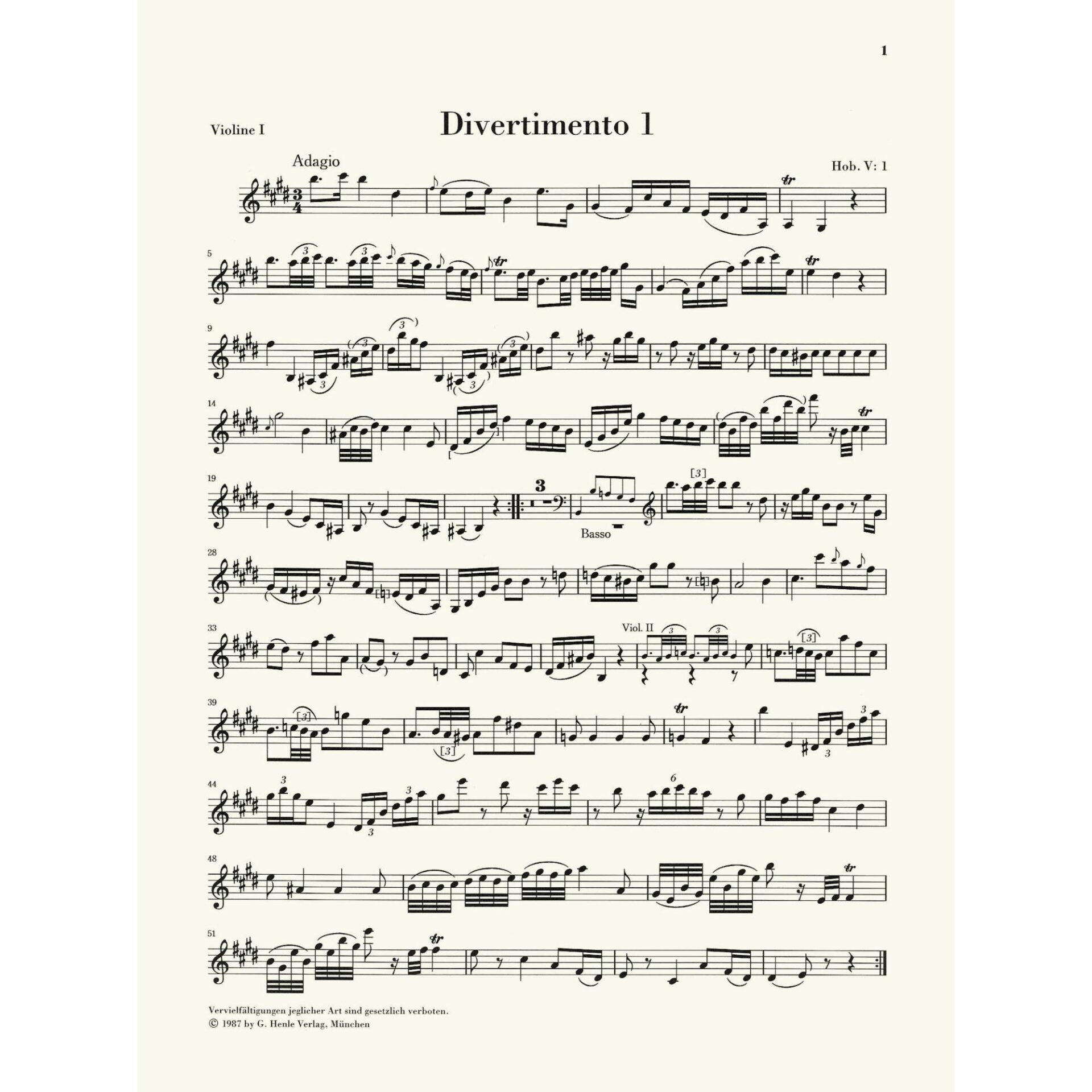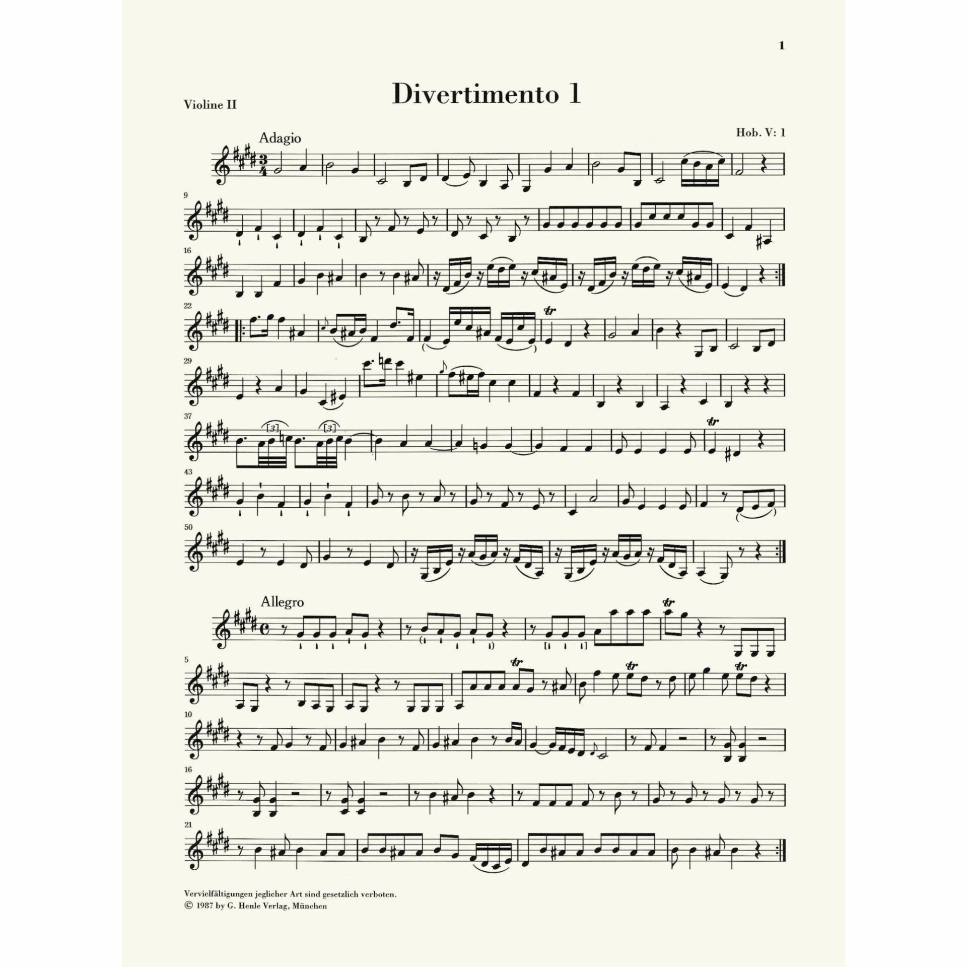 - Divertimento in E Major, Hob. V:1