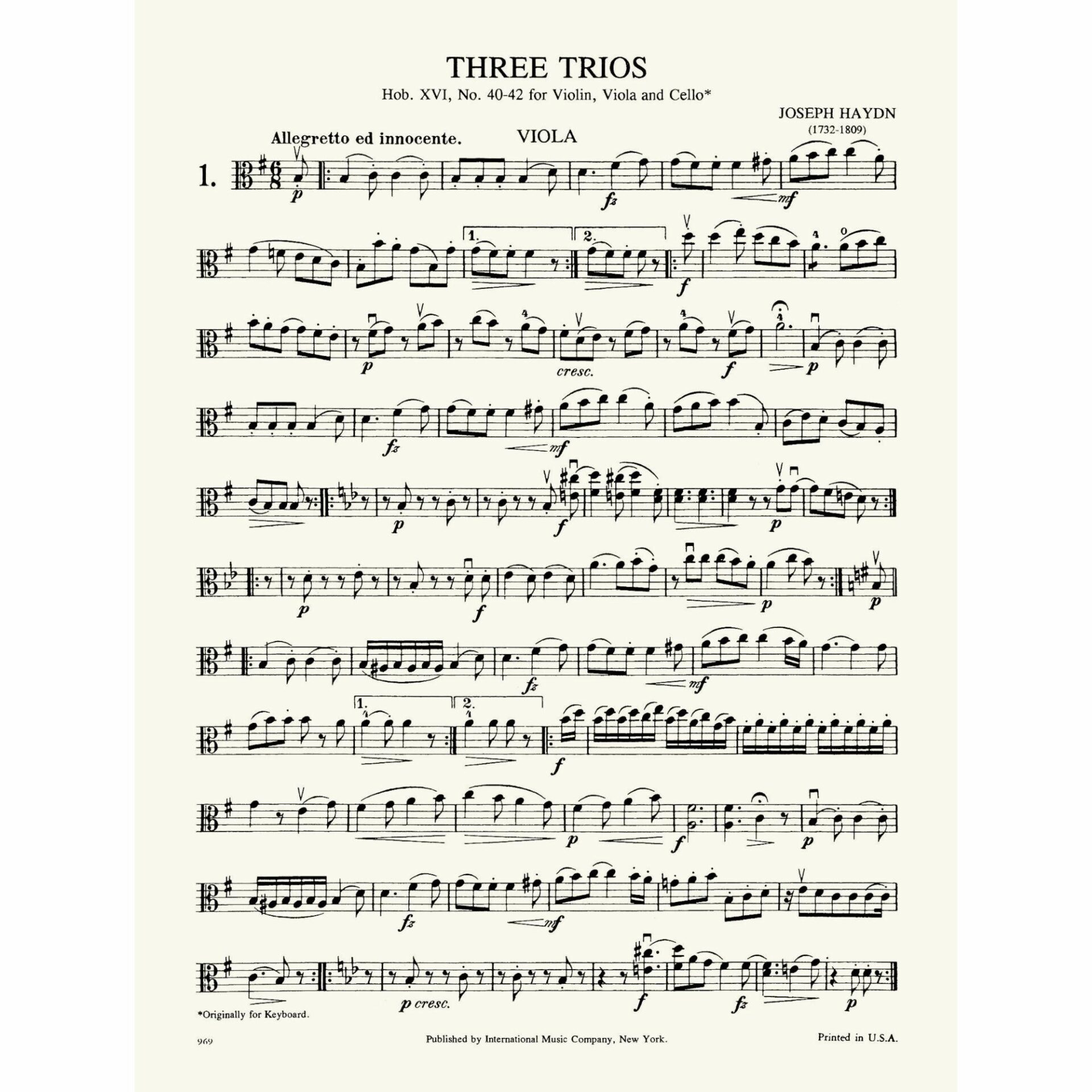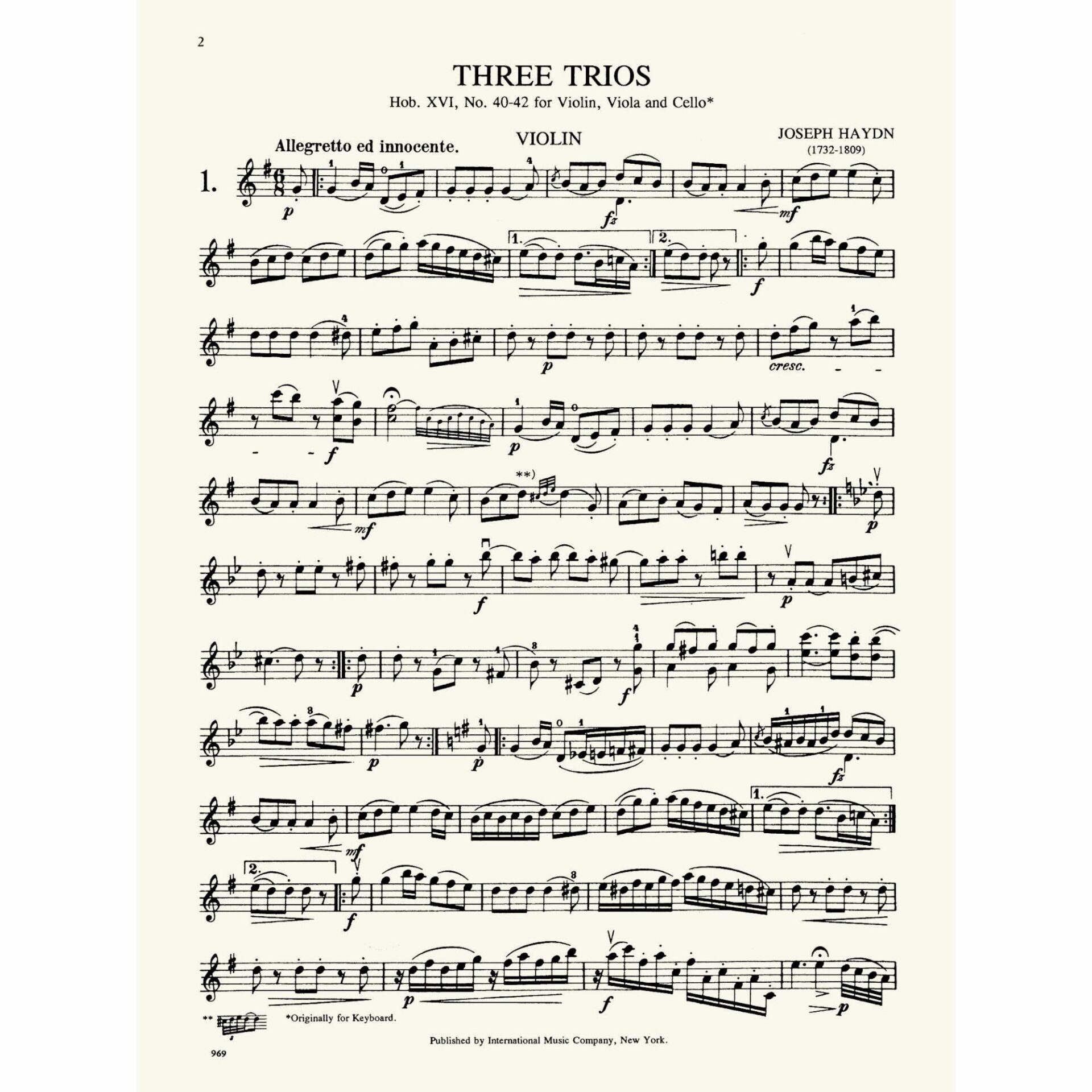 Title: Three Trios, Hob. XVI, No. 40-42