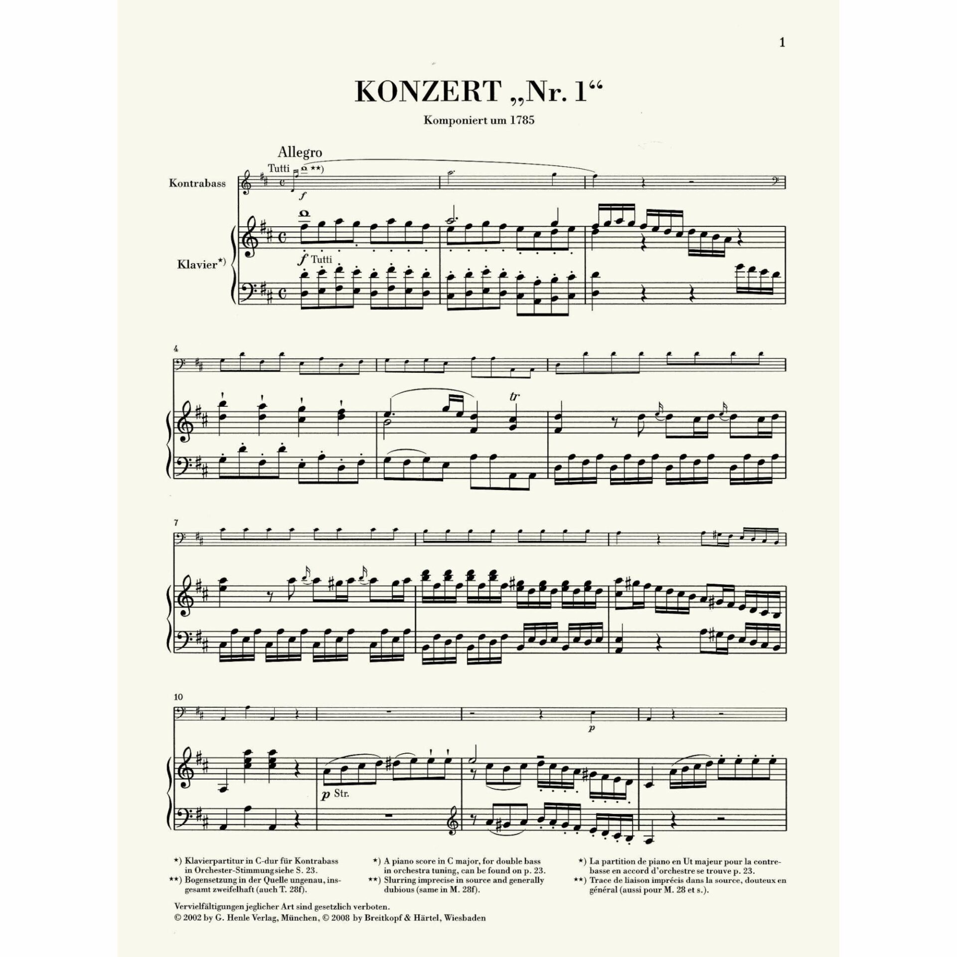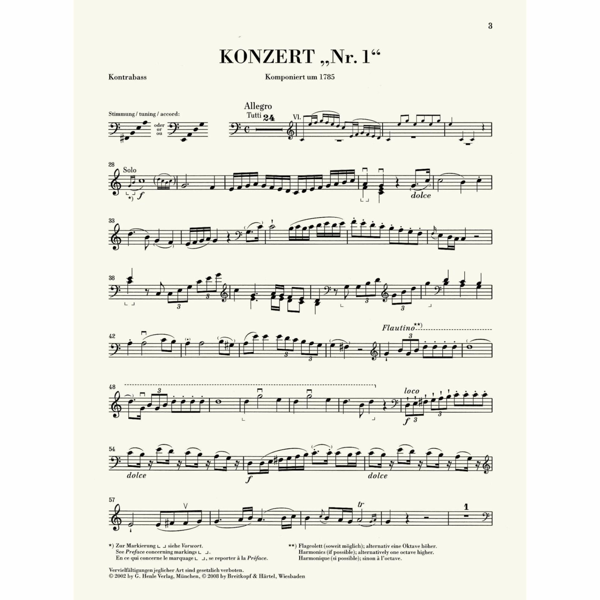*Second movement includes a part for solo violin obbligato in both G major and F Major