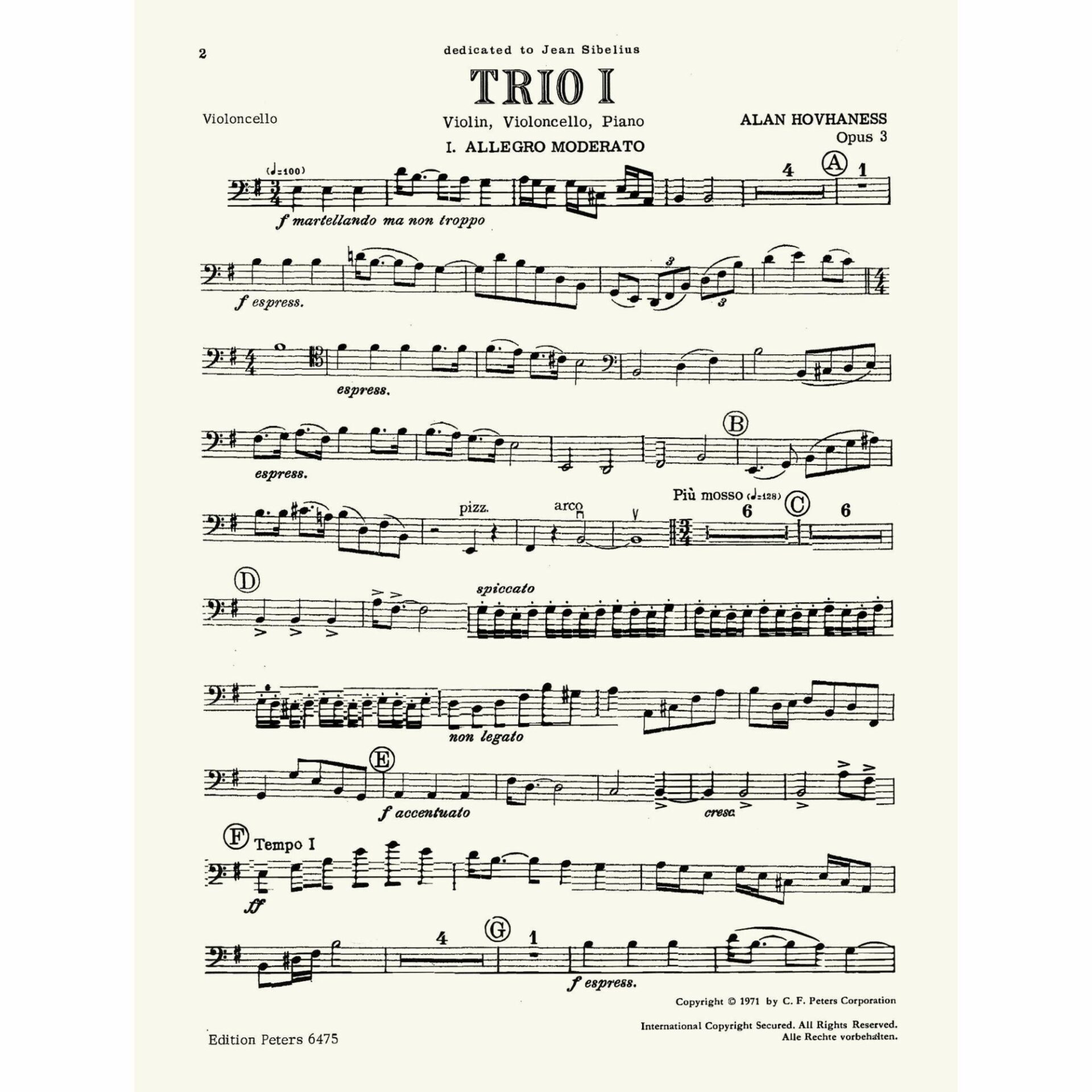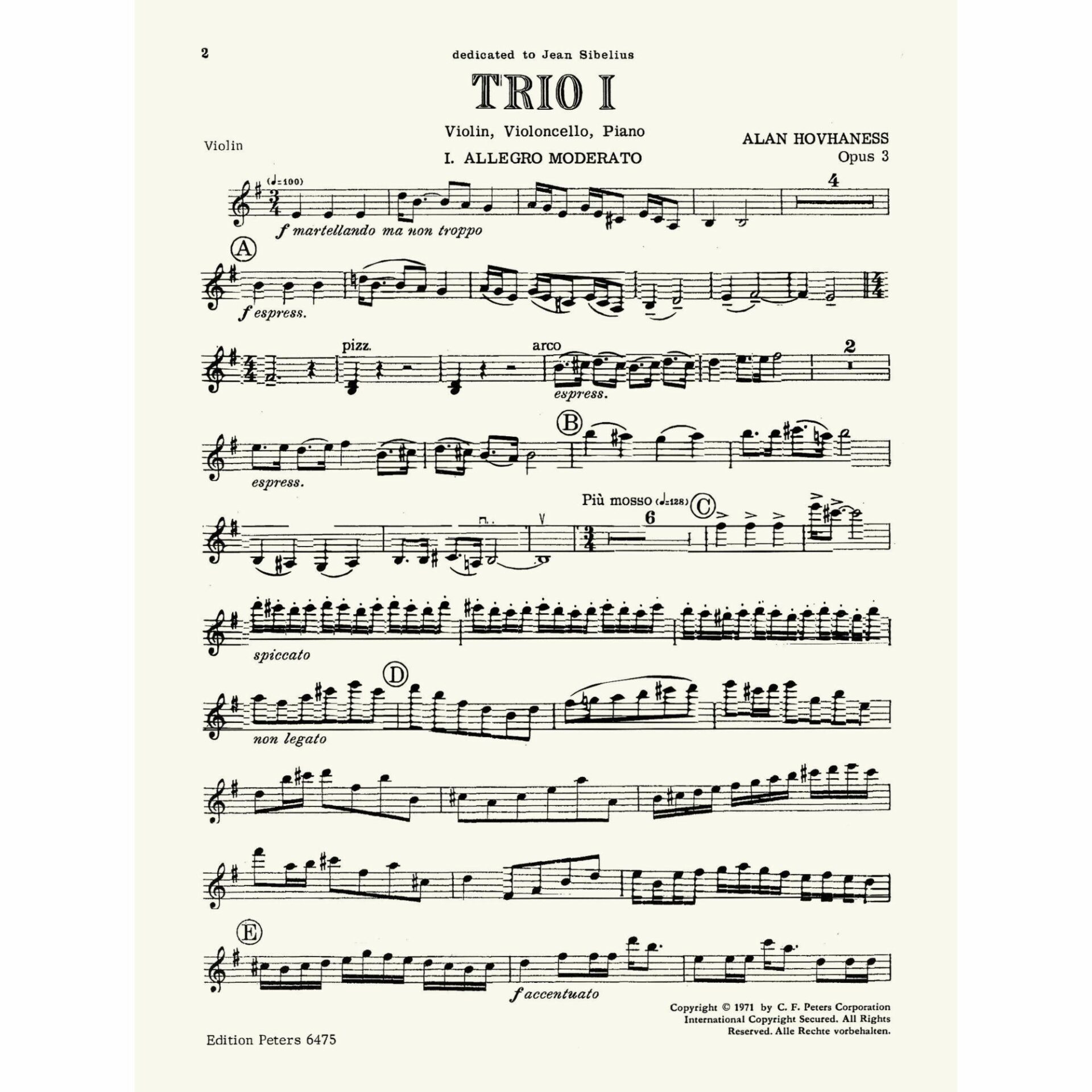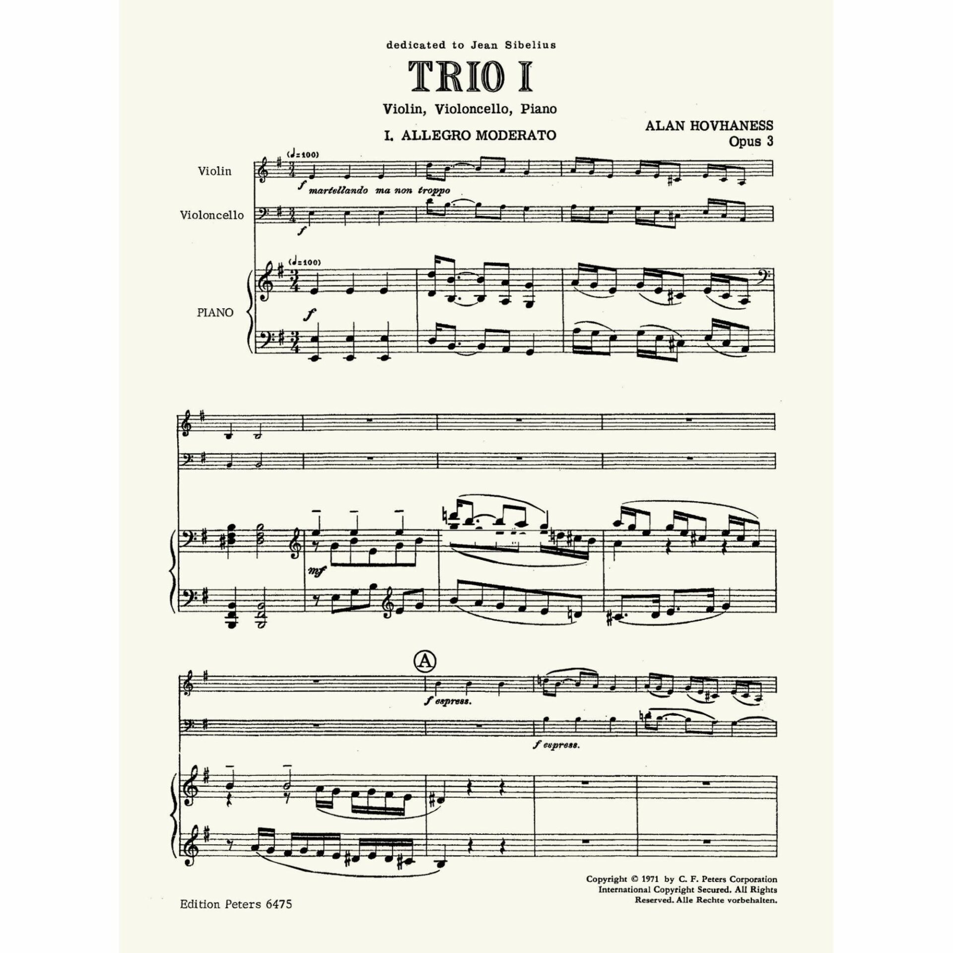 Hovhaness — Trio I, Op. 3 for Violin, Cello, and Piano