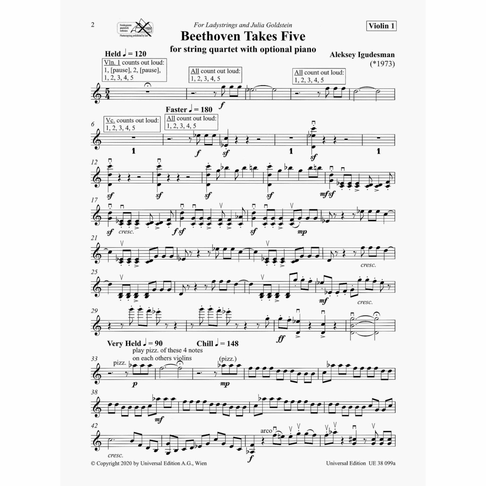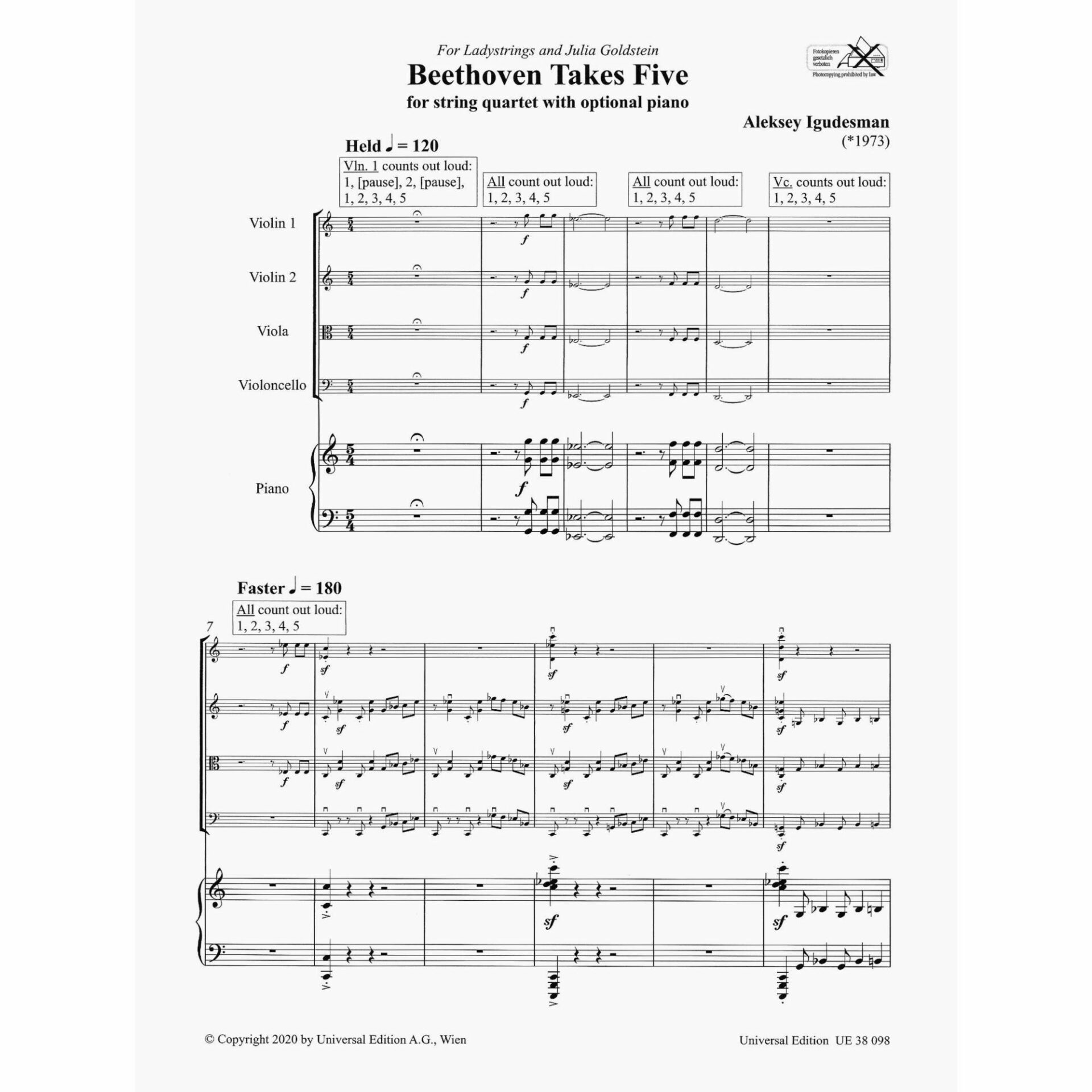 Igudesman — Beethoven Takes Five for String Quartet with Optional Piano
