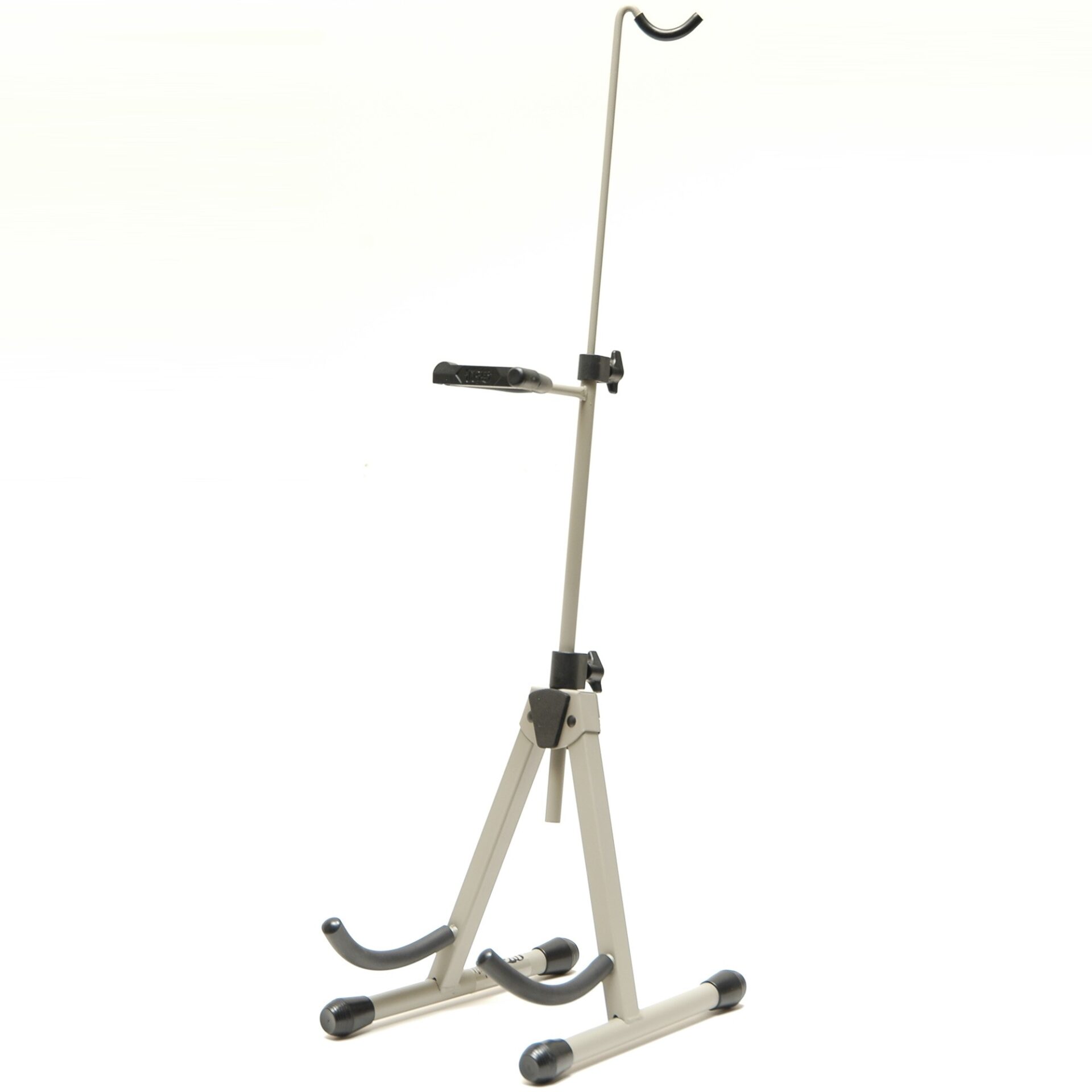 Well-stabilized stand with height adjustable cushioned arms to support instrument body and neck. Includes hook for hanging bow and folds down to a compact size for easy storage.