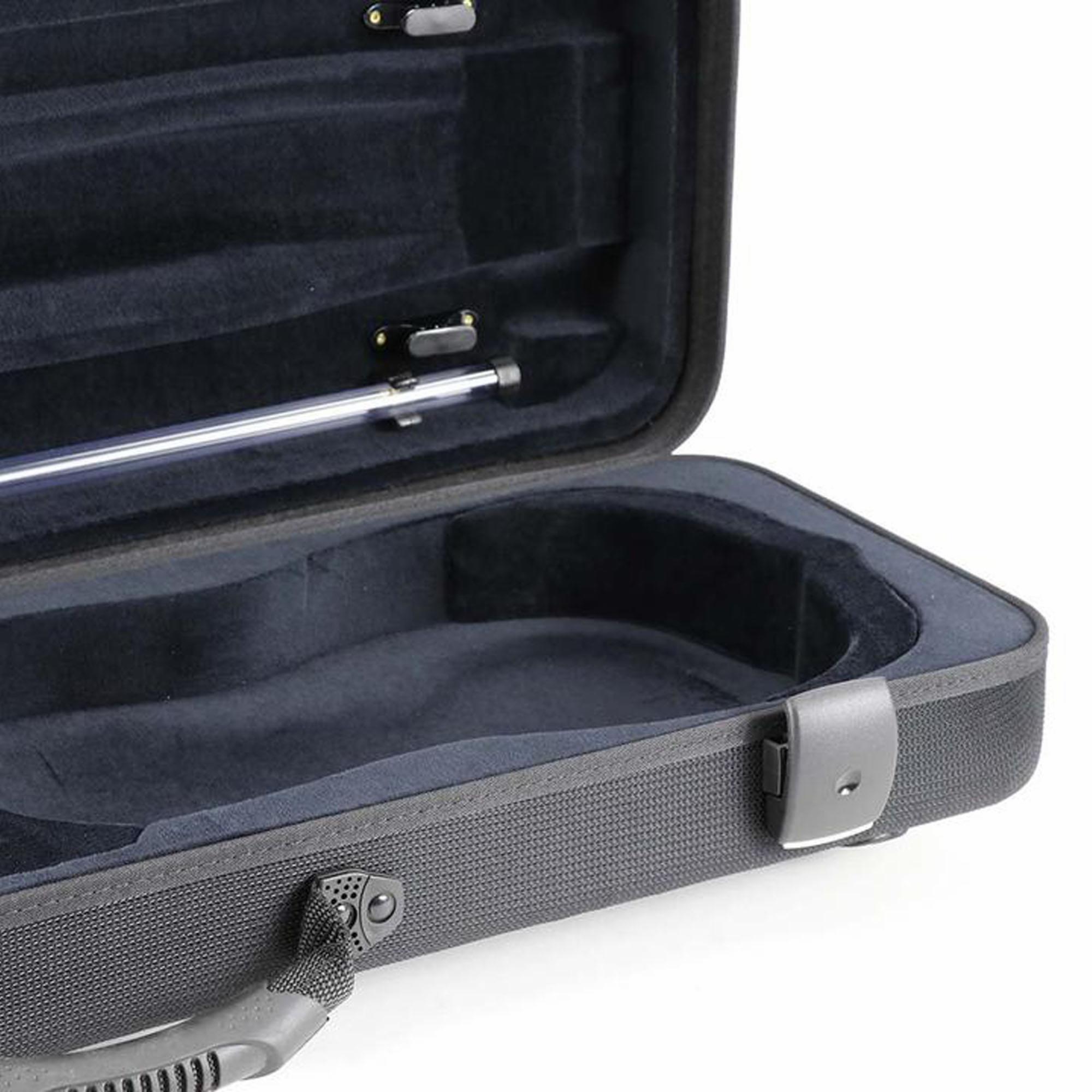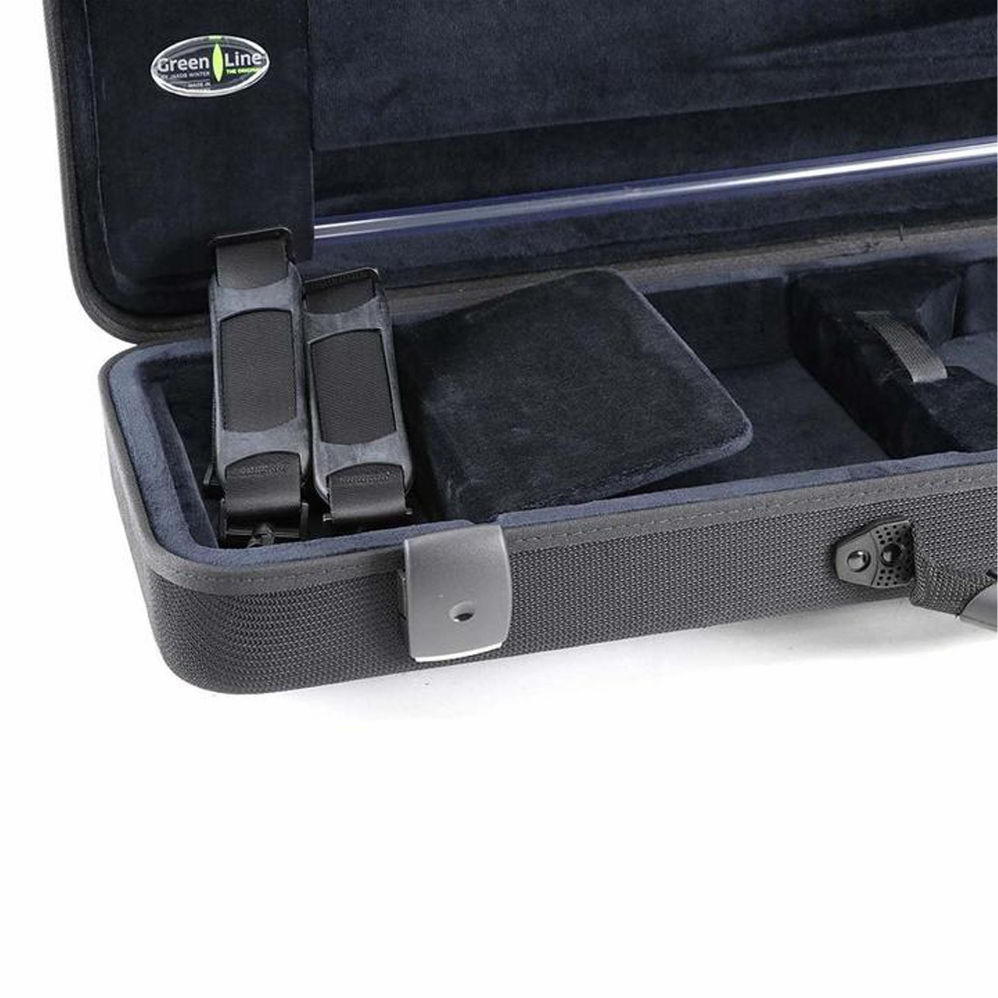 The Jakob Winter Greenline Oblong Violin Case is an eco-friendly, lightweight case made from all natural renewable fibers. Using a revolutionary manufacturing process, the lining, case, and coating materials are compressed in one-step, so no toxic glues or adhesives are used. Hemp, flax, and kenaf are compression molded with bio-plastics and additives to create an extremely sturdy shell. Even the interior lining is made from 100% cotton velvet. Available with a black or gray exterior. Fits a size range of 4/4-3/4.