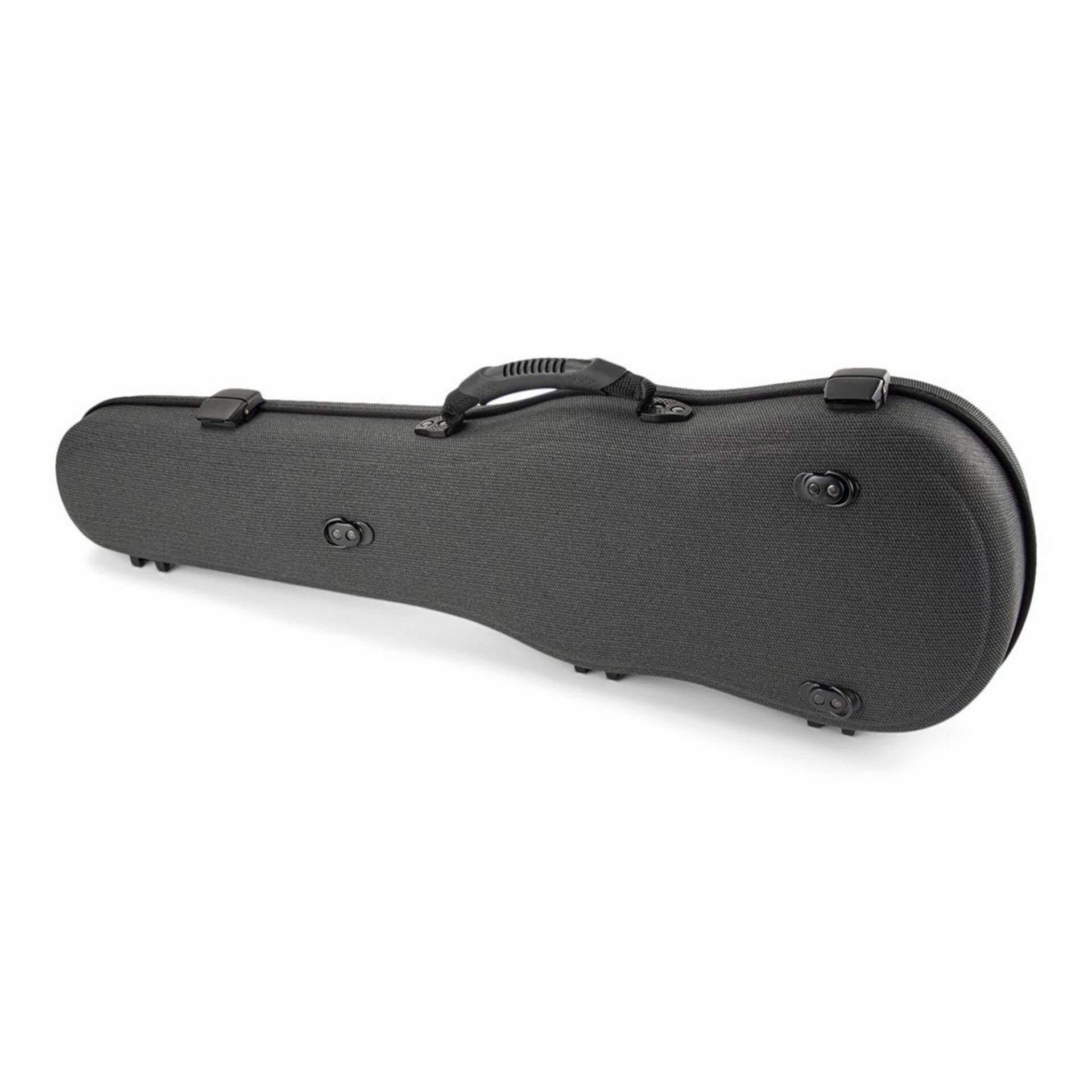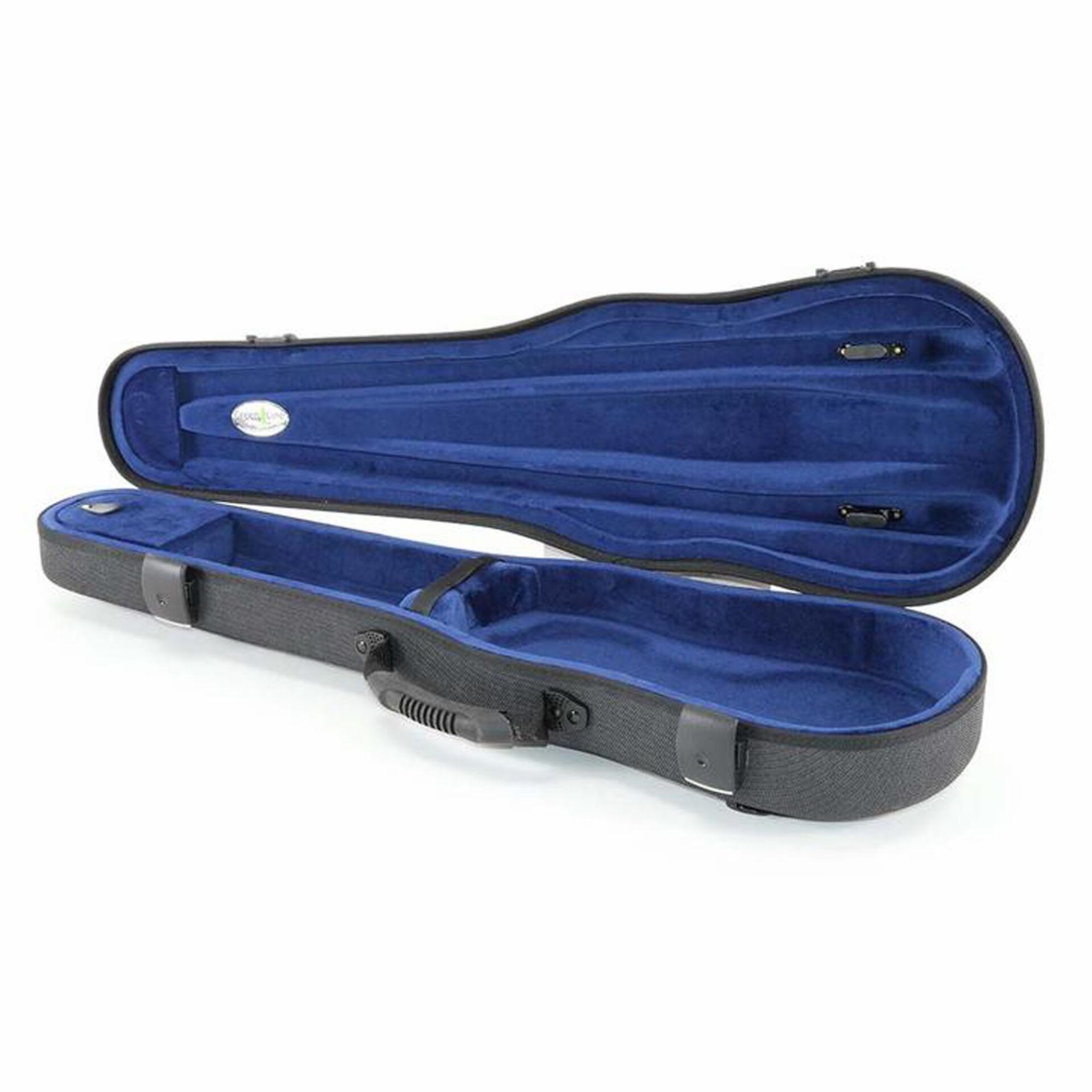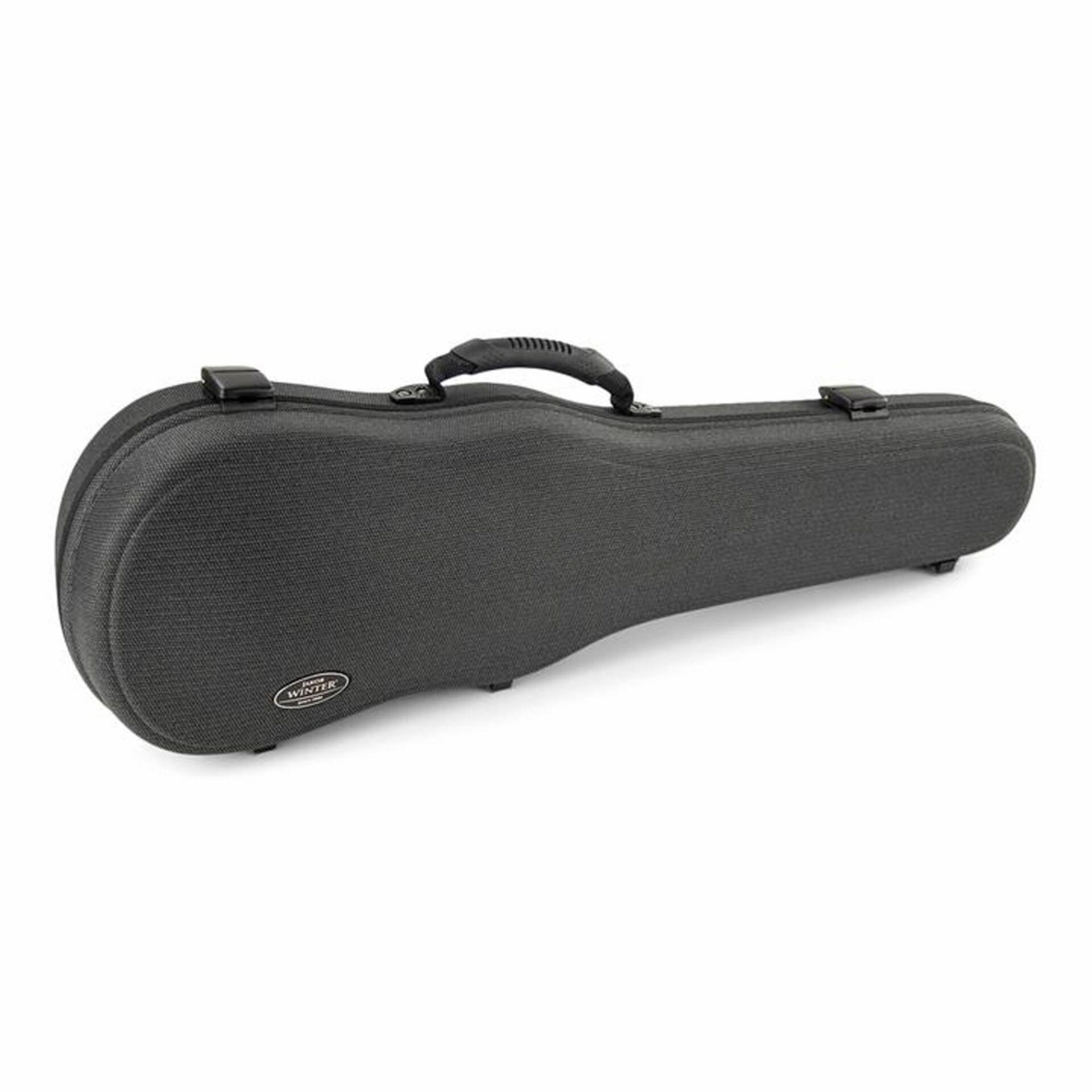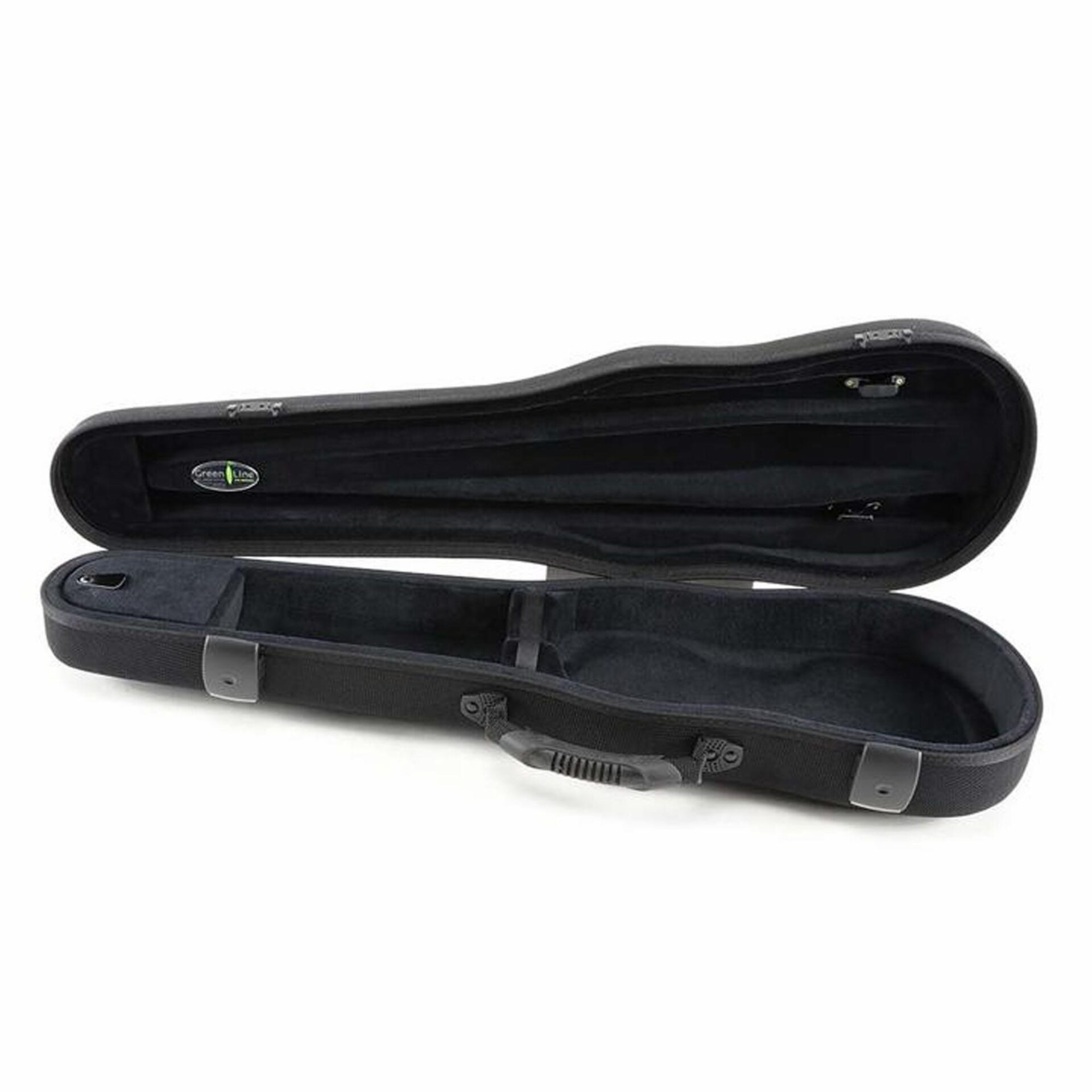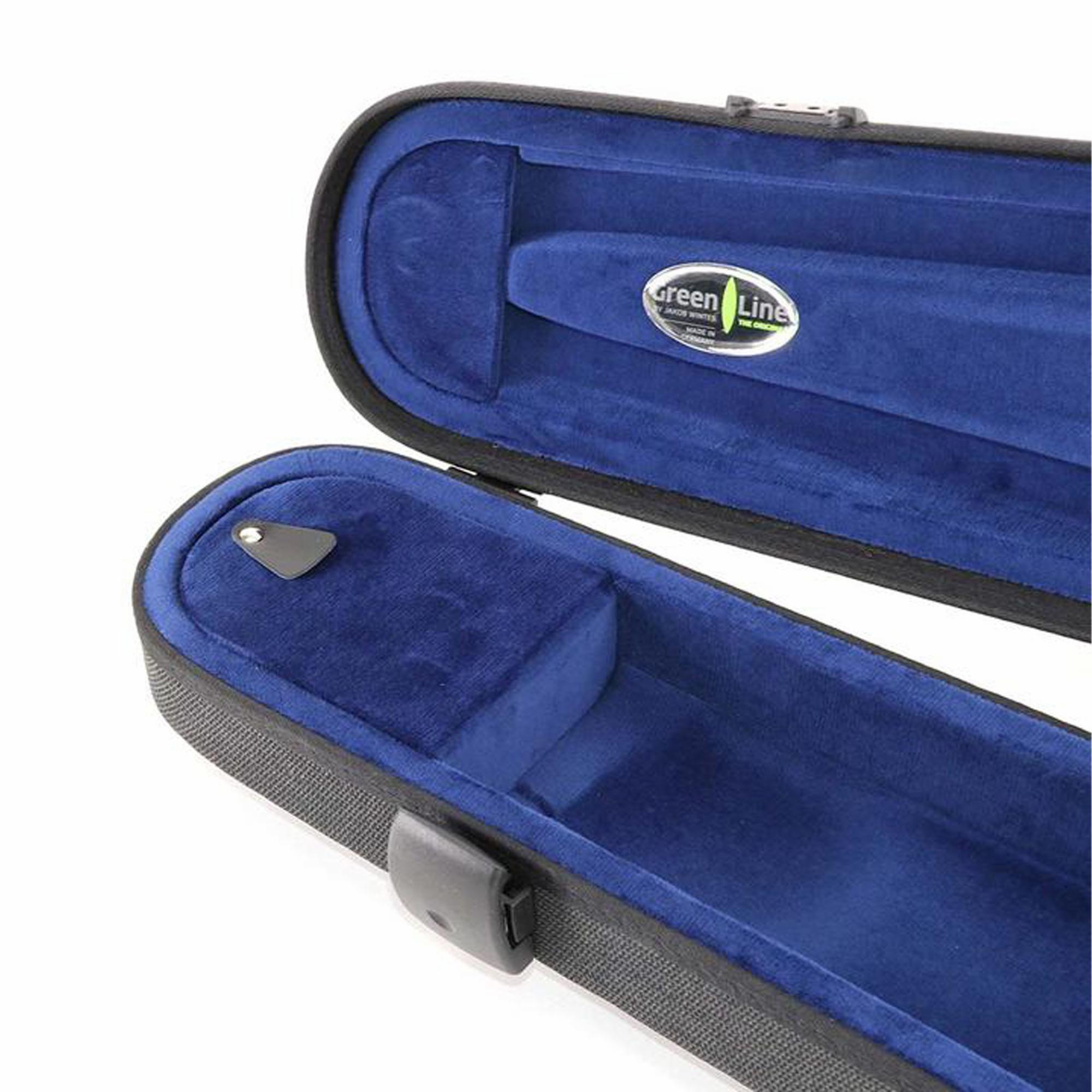 The Jakob Winter Greenline Shaped Violin Case is an eco-friendly, lightweight case made from all natural renewable fibers. Using a revolutionary manufacturing process, the lining, case, and coating materials are compressed in one-step, so no toxic glues or adhesives are used. Hemp, flax, and kenaf are compression molded with bio-plastics and additives to create an extremely sturdy shell. The interior lining is made from 100% cotton velvet. Available with black exterior/black interior, or gray exterior/blue interior.