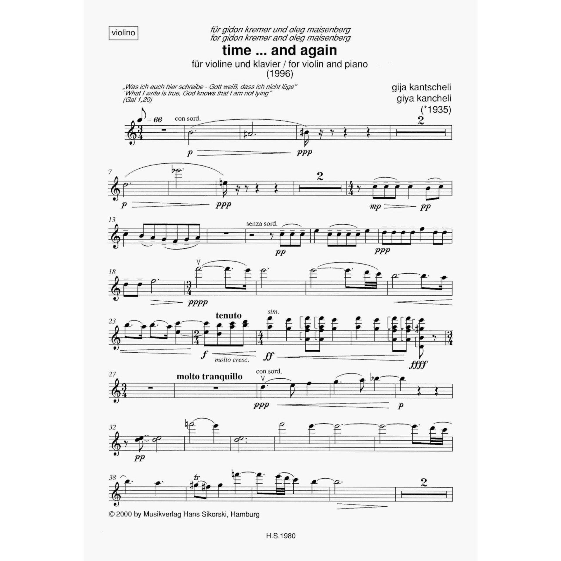 Kancheli — Time…and Again for Violin and Piano