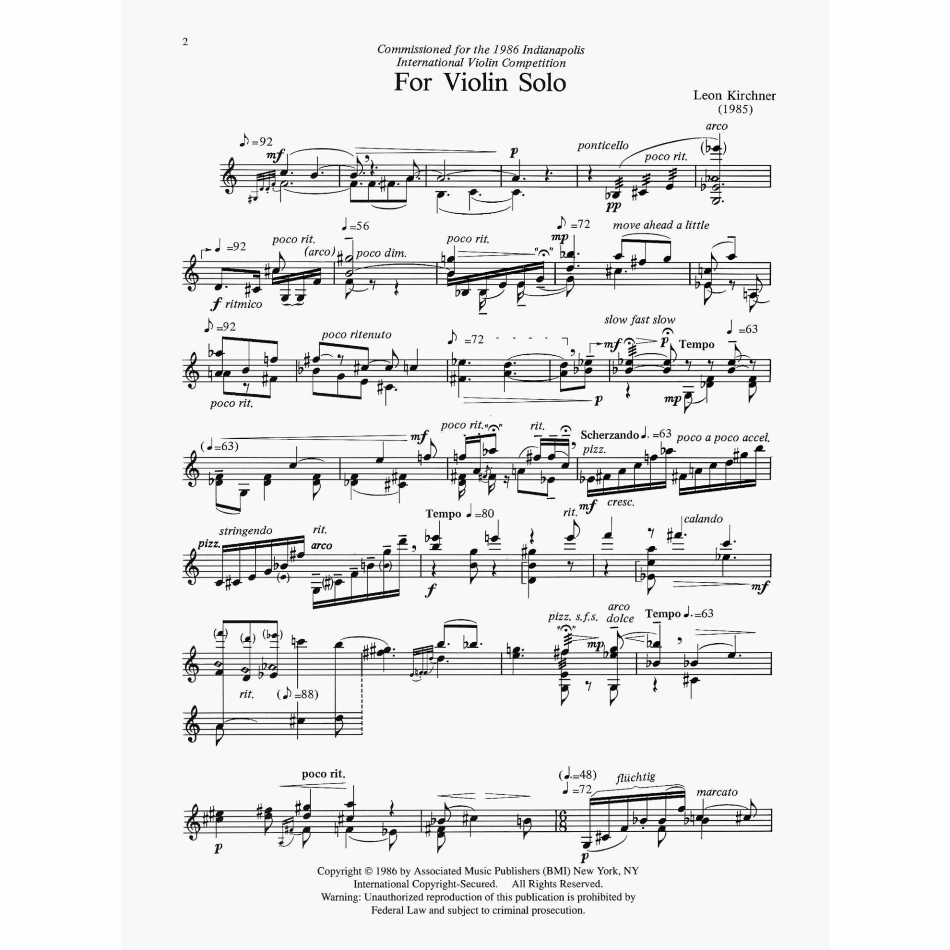 Kirchner — For Violin Solo