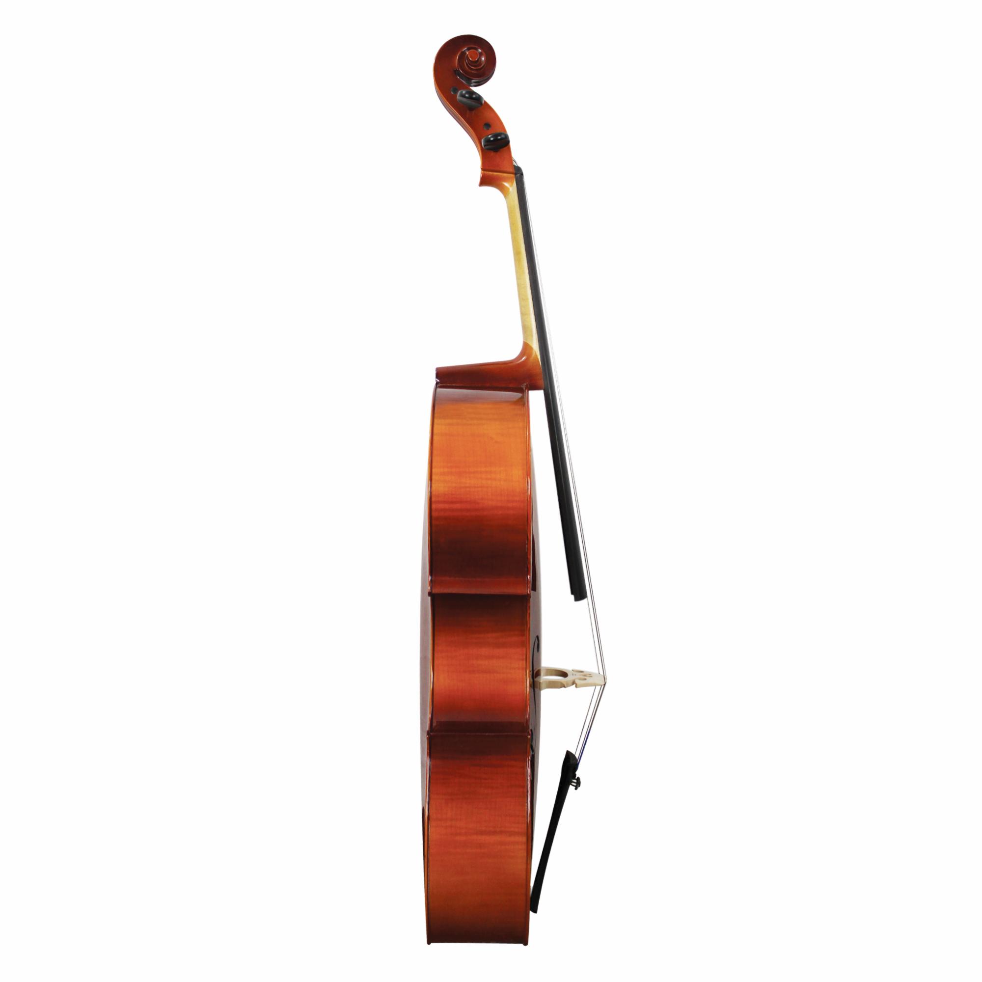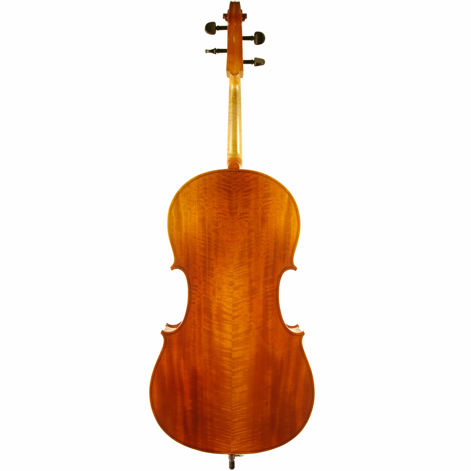 Klaus Mueller Maestro cellos are constructed from solid spruce tops and laminated maple back and ribs. Two piece back. Scroll of solid maple. Finished in a golden brown (color may vary). Each cello is shop adjusted by our professional in-house (Tucson, AZ) luthiers, to assure excellent playability. Outfit includes rosin, and your choice of case and bow. Standard outfit arrives in an Oxford nylon soft case. If you have ordered a Thermoplastic case, it will arrive in a separate package. Made in Europe.