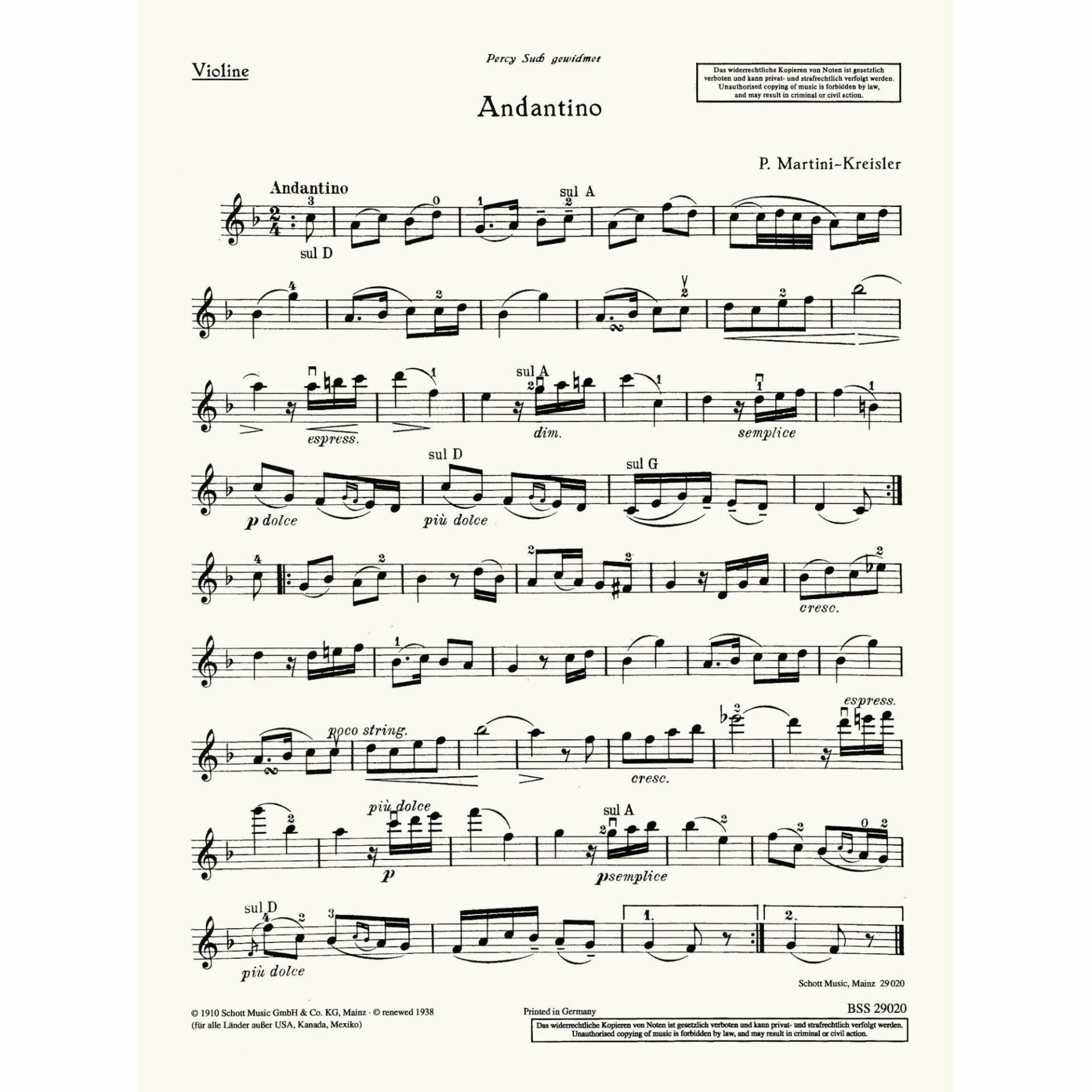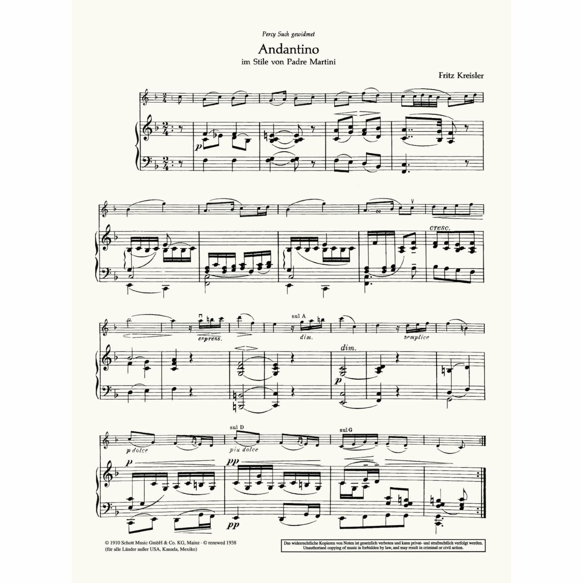 Kreisler — Andantino for Violin and Piano