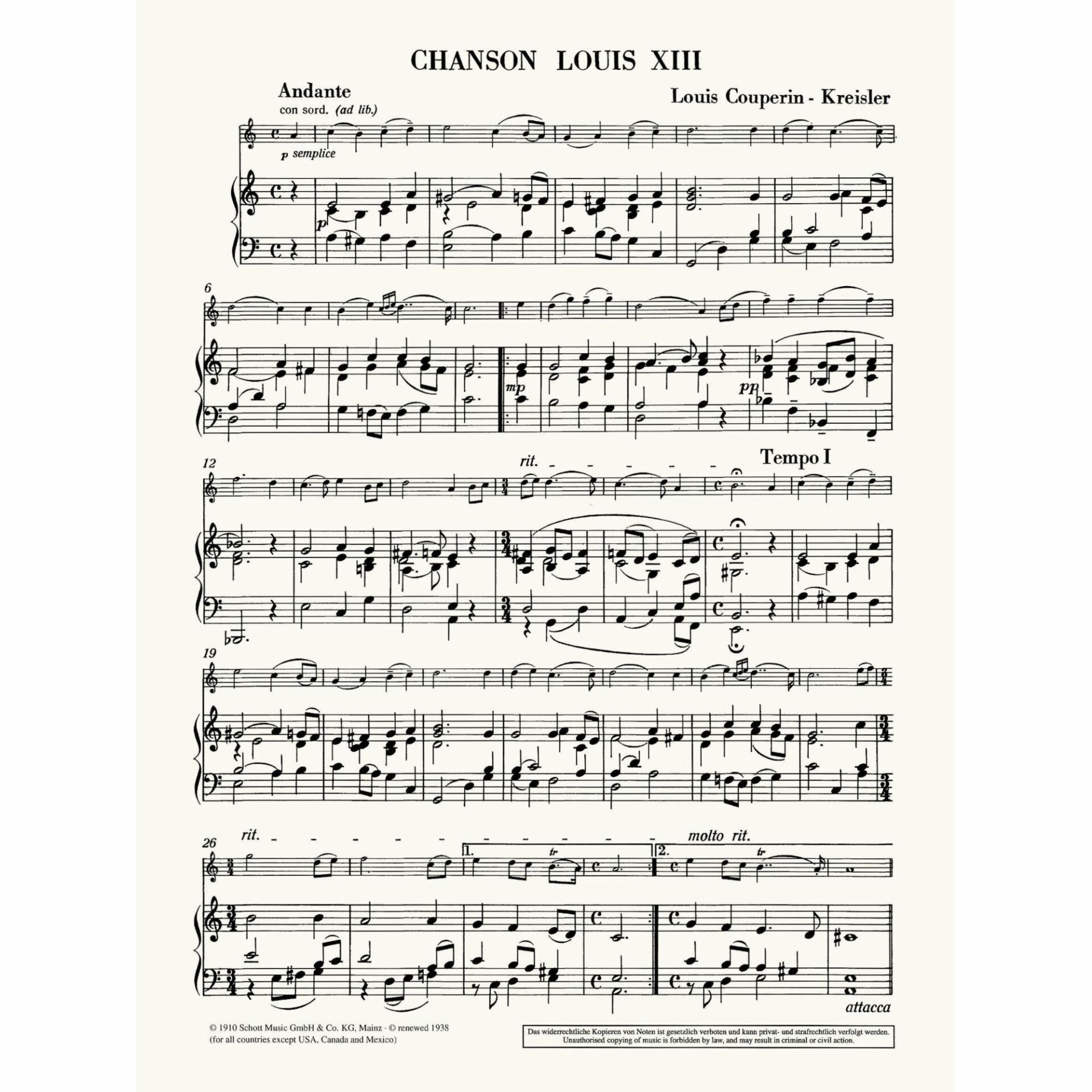 Instrumentation: Violin and piano