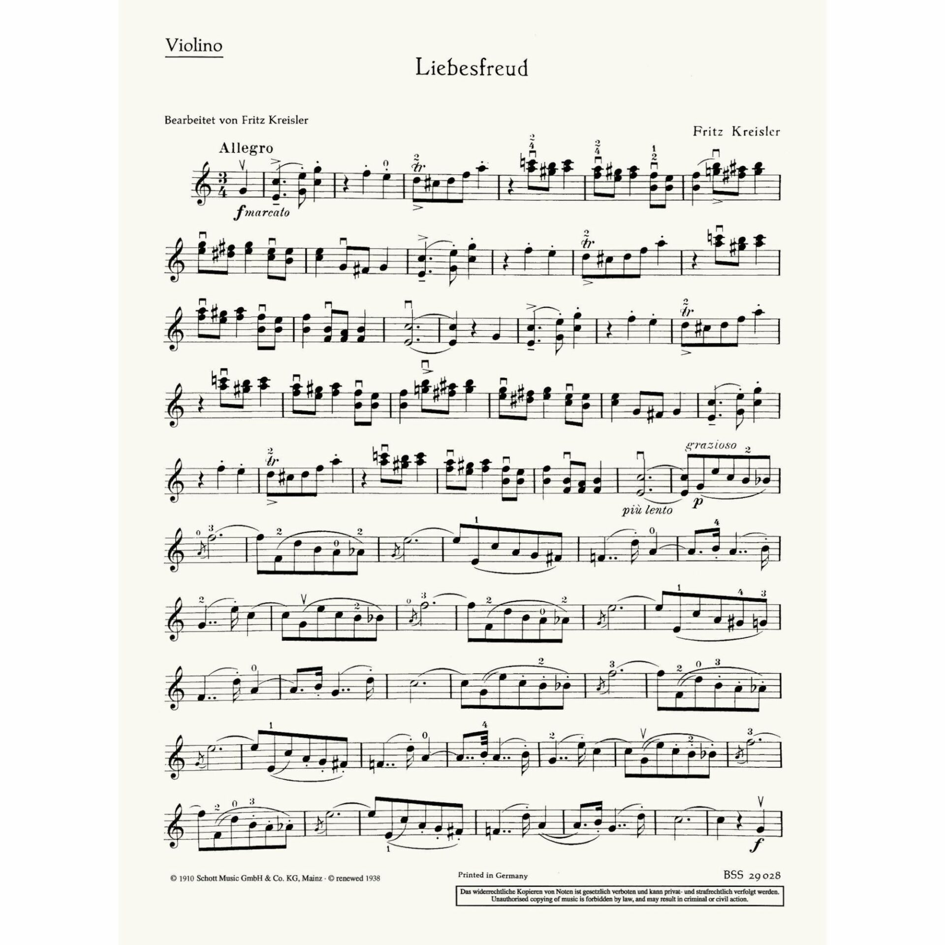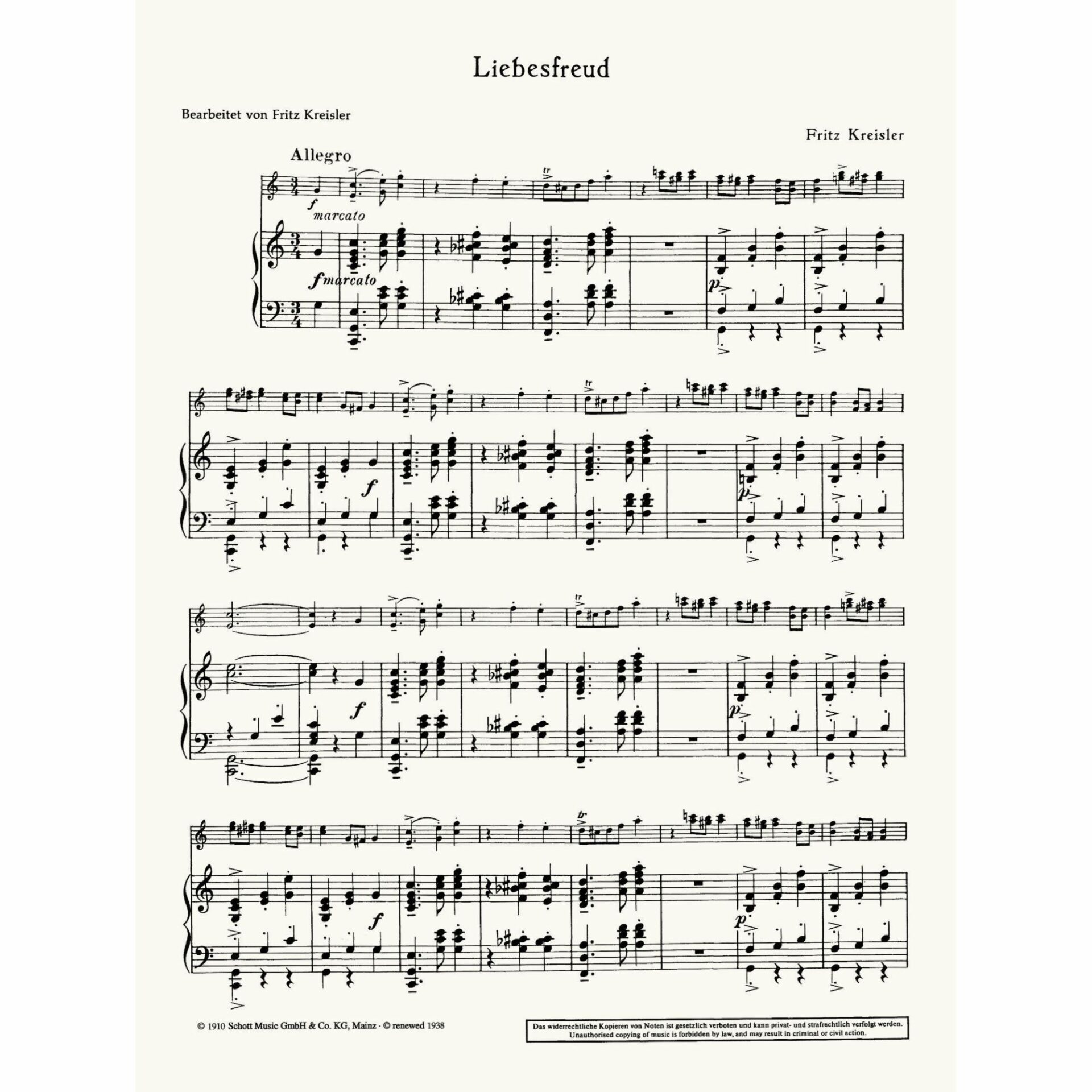 Kreisler — Liebesfreud for Violin and Piano