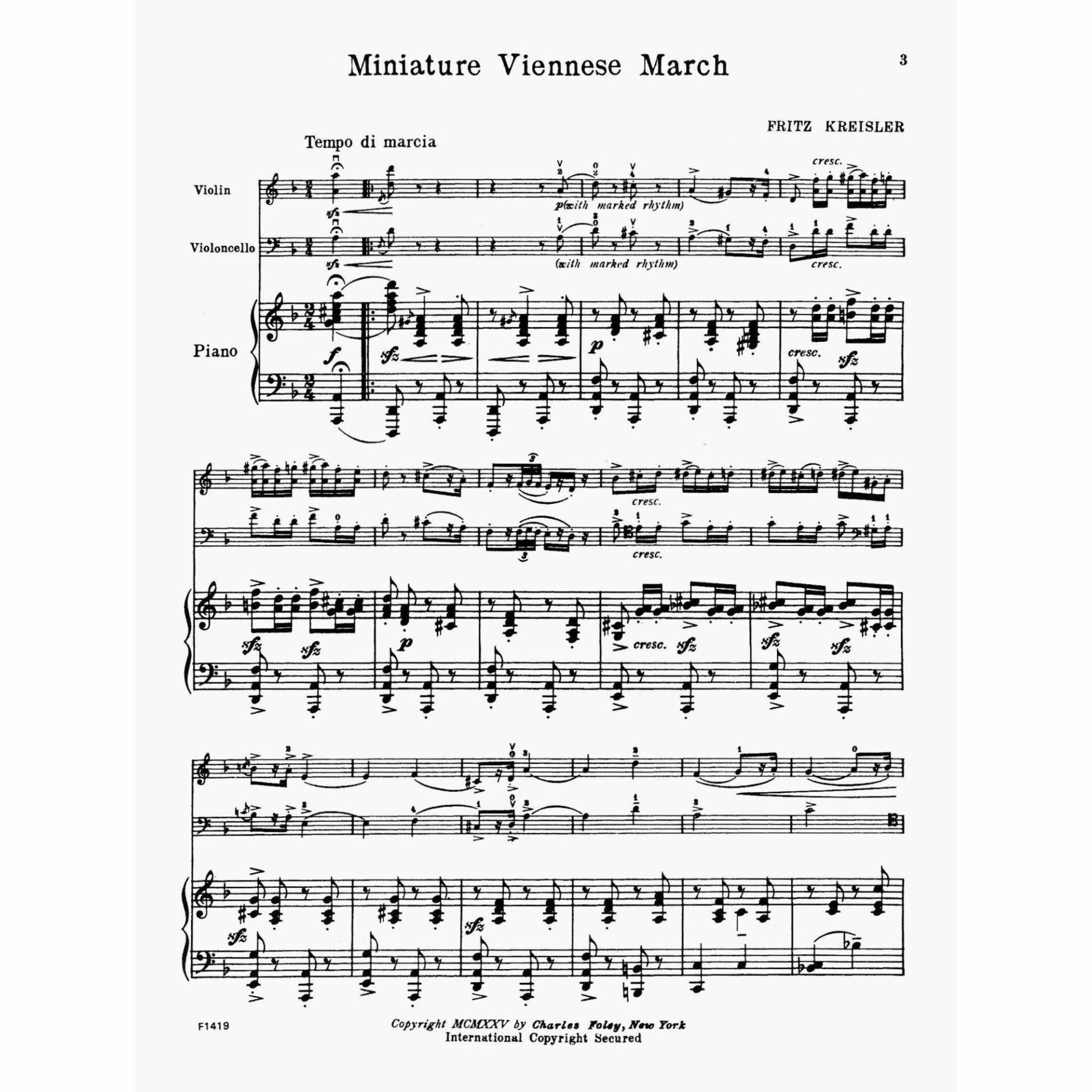 Kreisler — Miniature Viennese March for Piano Trio