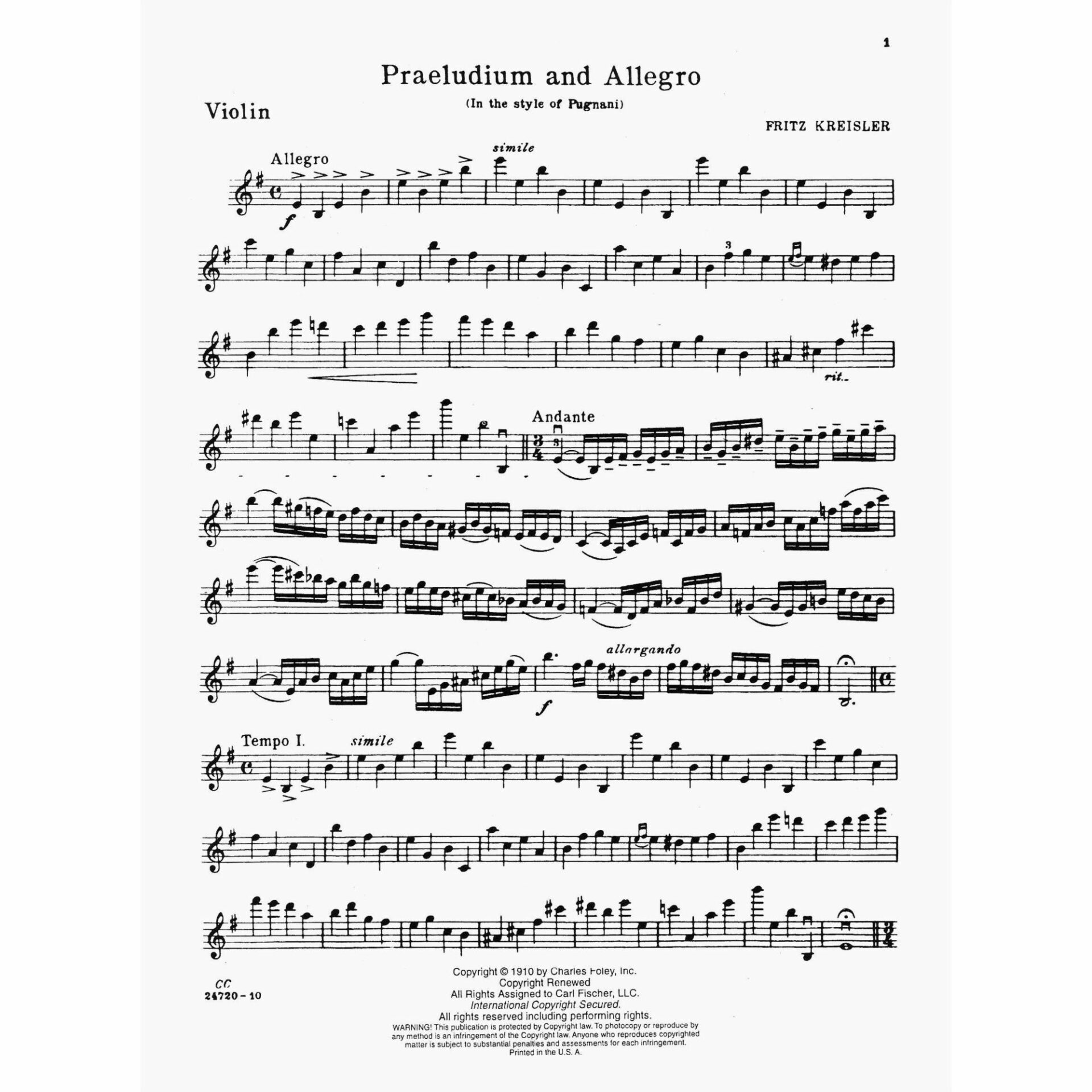 Title: Praeludium and Allegro (in the Style of Pugnani)