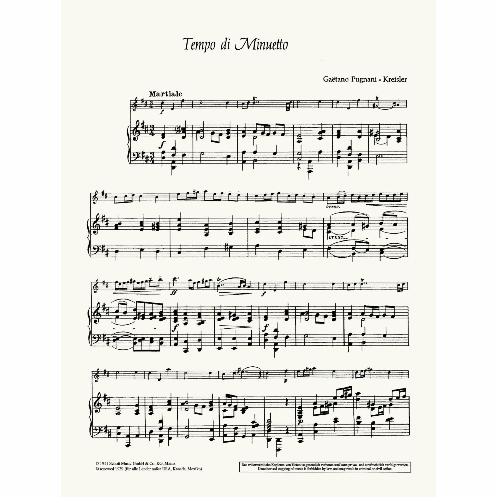 Kreisler — Tempo di Minuetto for Violin and Piano