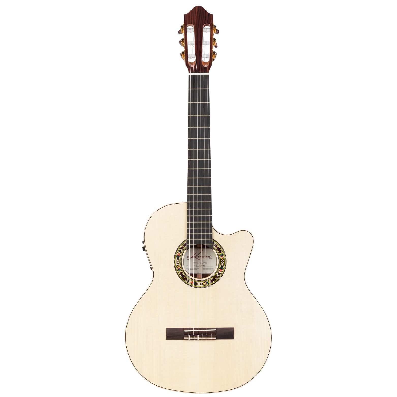 The Kremona Fiesta F65CW-SB Guitar is handcrafted with a solid German spruce top and solid Indian rosewood back. A stage-ready cutaway version of one of Kremona’s all-time favorite models. Equipped with a Fishman preamp and dual-source pickup system, Fiesta F65CW-SB offers a balanced sound with rich lows and focused midrange tones that are great for classical, jazz and pop, with a traditional 52mm neck width for a familiar feel.