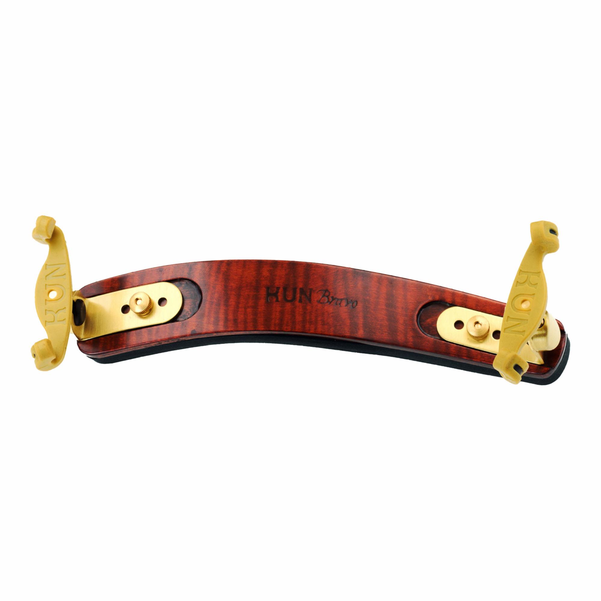 The Kun Bravo Shoulder Rest is a well designed contour bar made of figured laminated maple and covered with a comfortable soft foam sponge. Strong and durable, the Kun Bravo offers height, width and pitch adjustments. The polished solid brass end members insure that the shoulder rest never comes in contact with the back of the instrument. Each end member has four holes for maximum width adjustment.